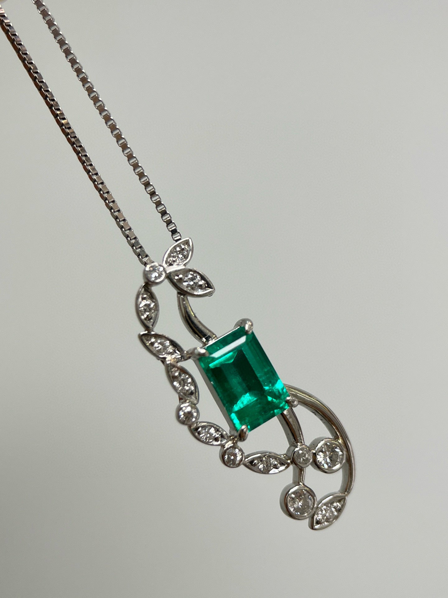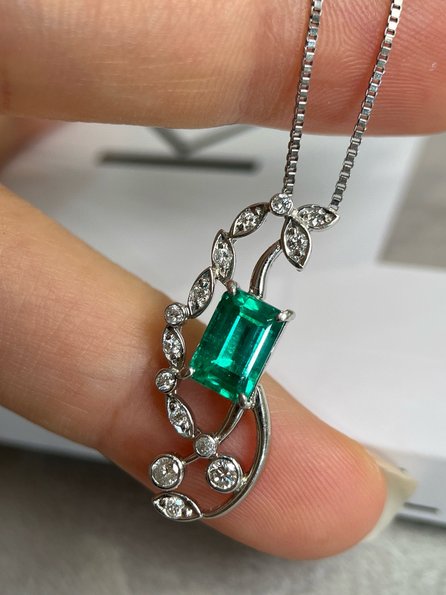 14K GOLD 1.75 CTW NATURAL EMERALD & DIAMOND PENDANT( WITHOUT CHAIN )