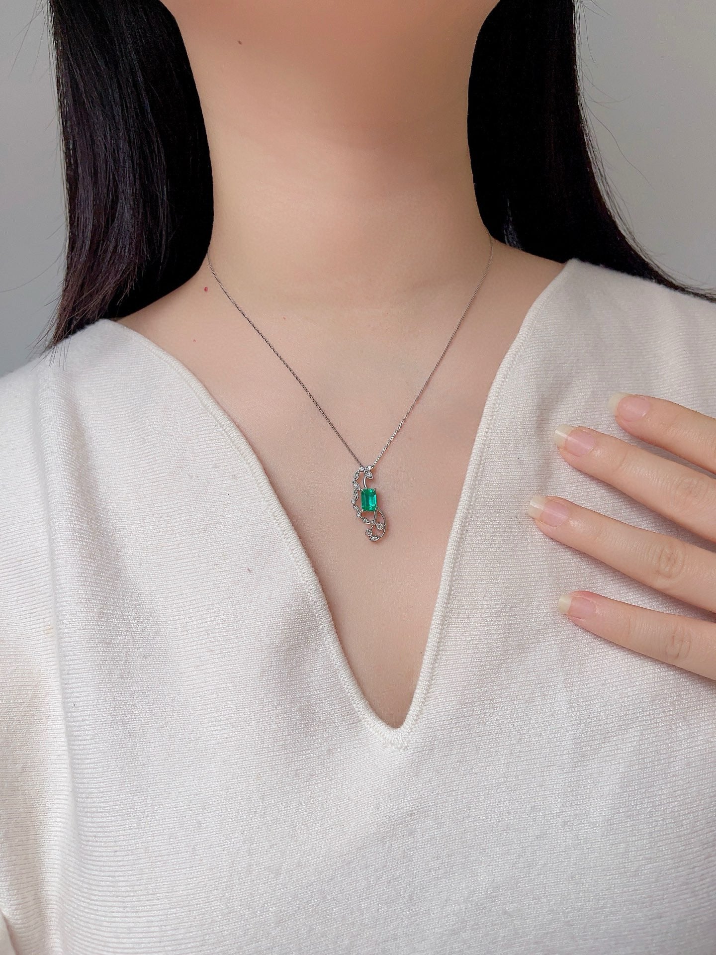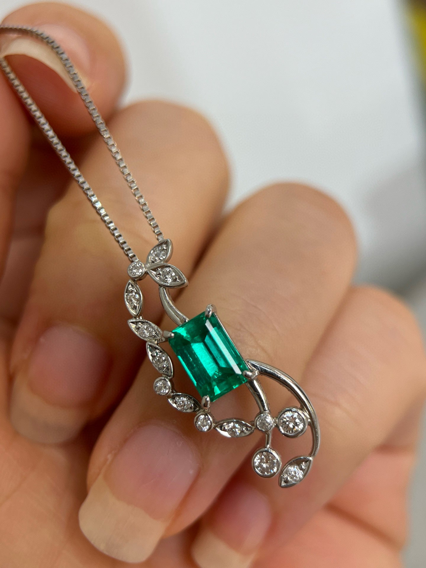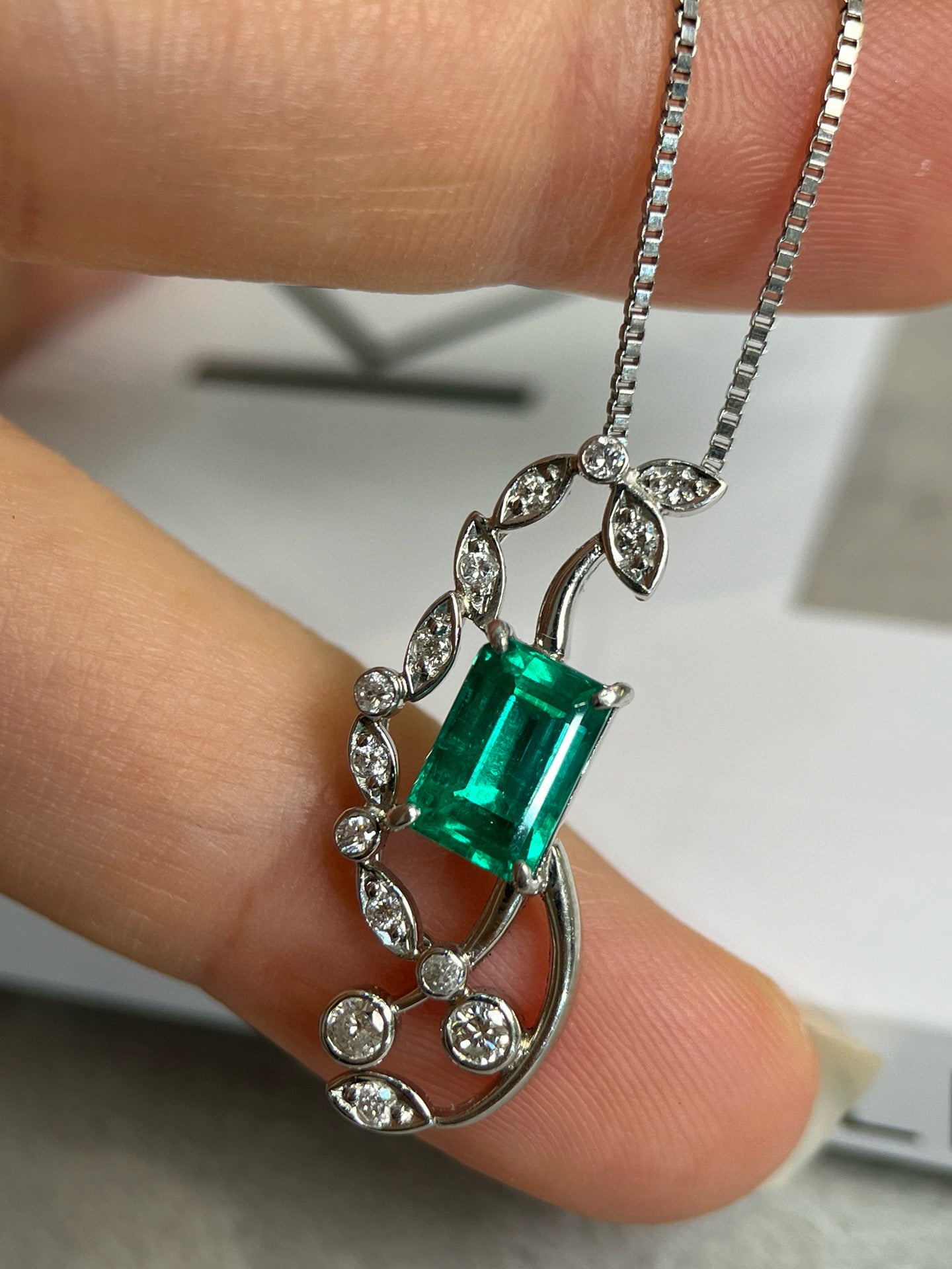 Ref:231019118 // Gold Content:14K Gold // Main Gemstone:Emerald // Shape:Octagonal // Carat Weight:1.48ct // Color:Green // Treatment:Natural // // Adjacent Gemstone 2 : Diamond // Shape:Round // Carat Weight:0.27ct // Clarity Grade:VS-SI // Color:H // Treatment:Natural // Cut Grade:G //