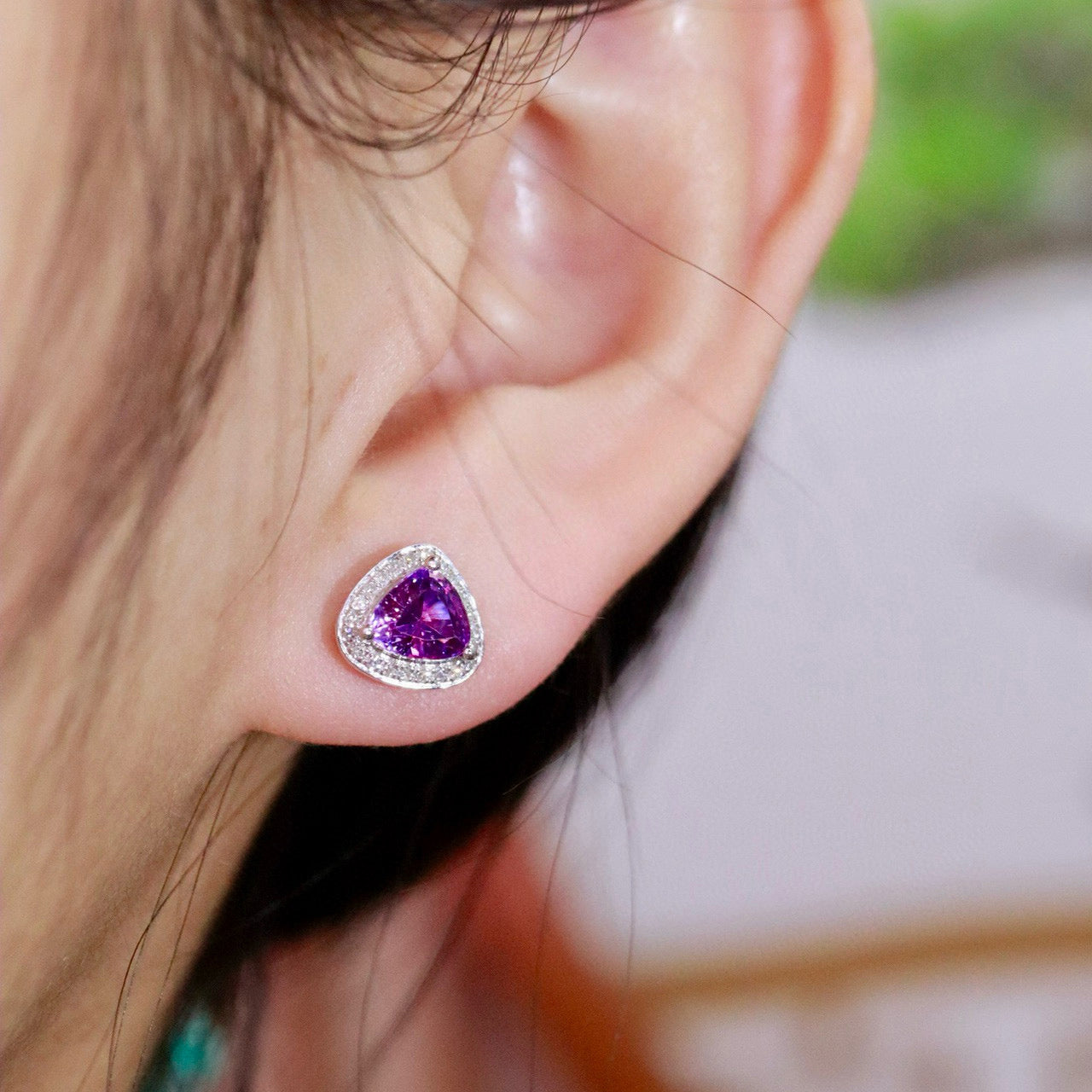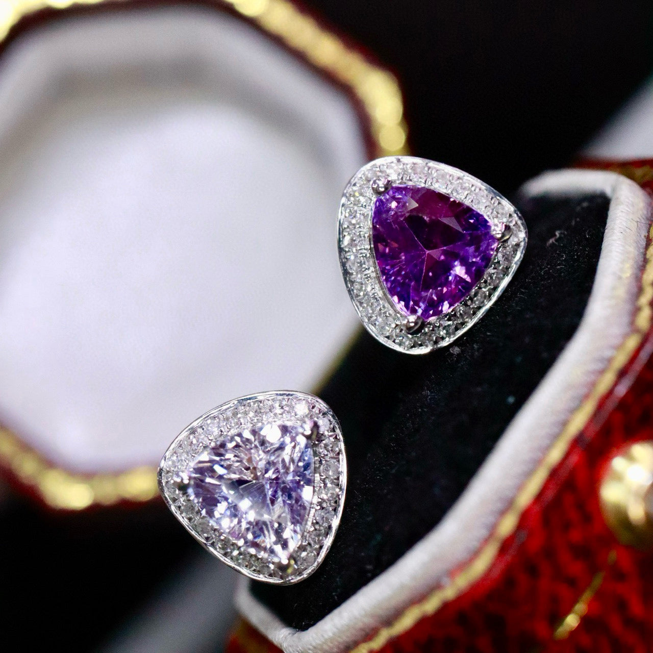 Ref:231019205 // Gold Content:14K Gold // Main Gemstone:Sapphire // Shape:Triangle // Carat Weight:1.66ct // Color:Purple // Treatment:Natural // // Adjacent Gemstone 2 : Diamond // Shape:Round // Carat Weight:0.12ct // Clarity Grade:VS-SI // Color:H // Treatment:Natural // Cut Grade:G //