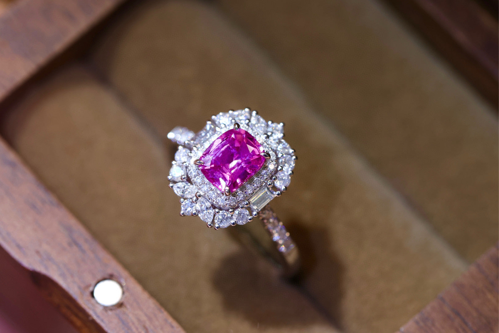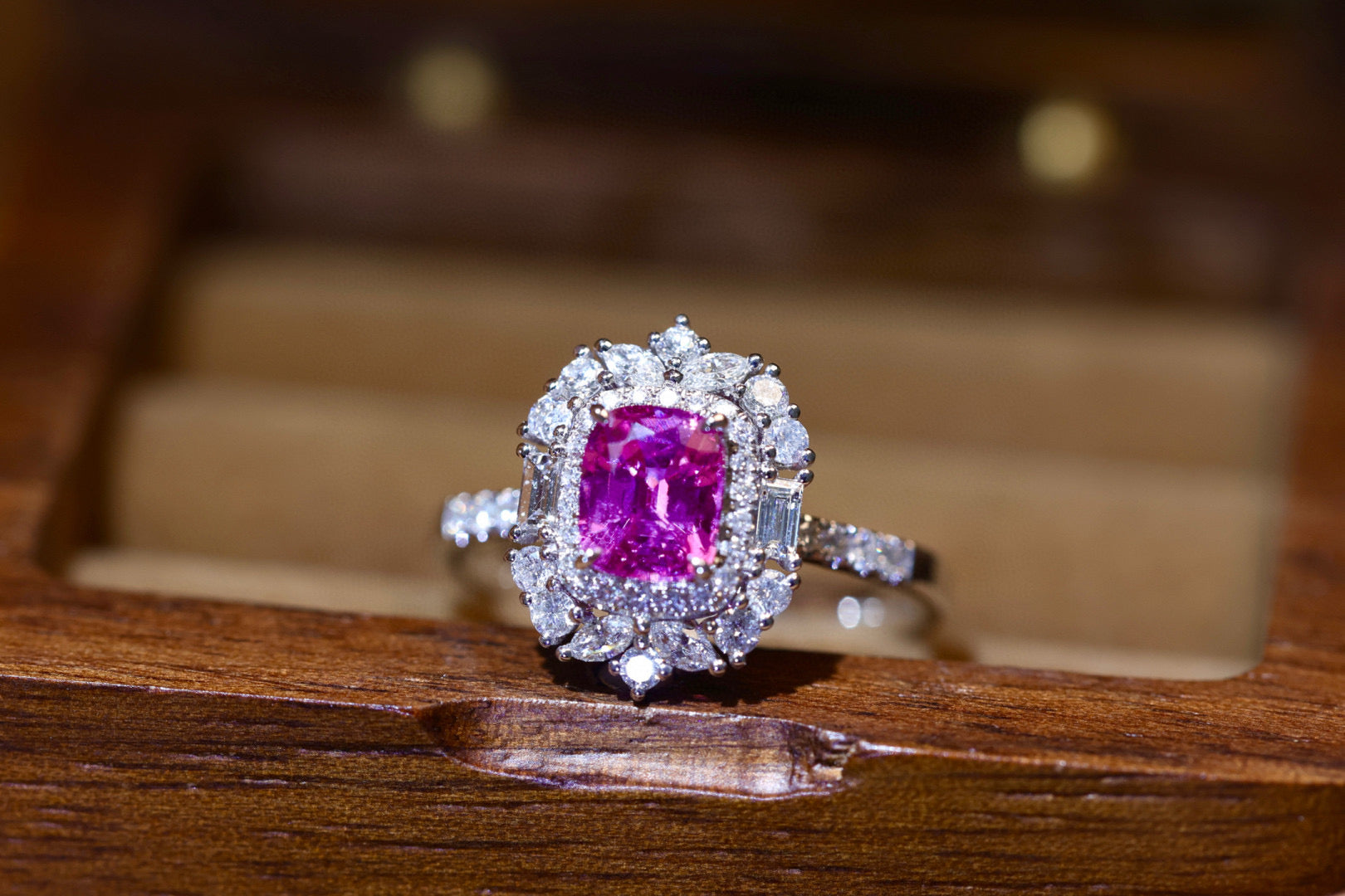 Ref:231019172 // Gold Content:14K Gold // Ring Size:7.25US // // Main Gemstone:Sapphire // Shape:Cushion // Carat Weight:1.21ct // Color:Pinkish purple // Treatment:Natural // // Adjacent Gemstone 2 : Diamond // Shape:Multiply // Carat Weight:0.58ct // Clarity Grade:VS-SI // Color:H // Treatment:Natural //