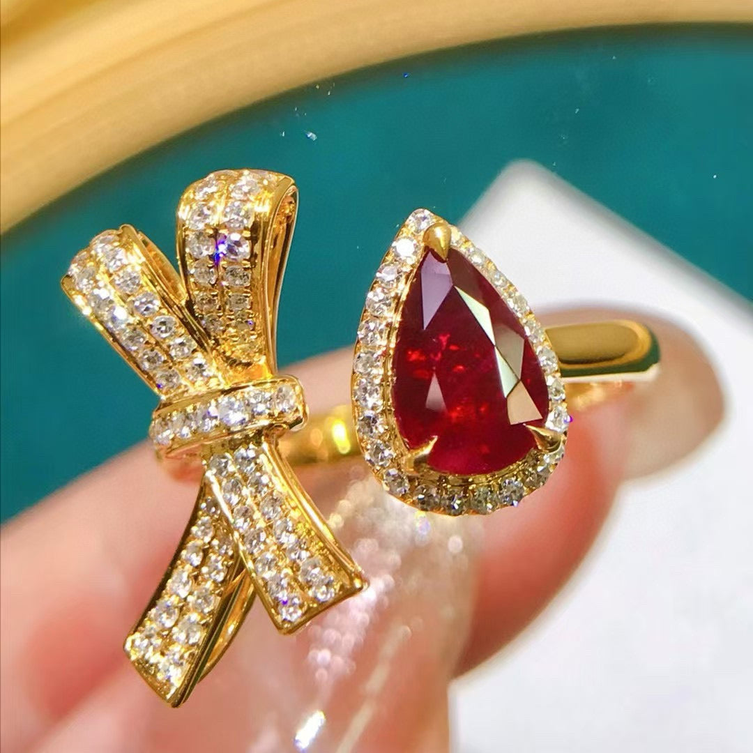 Ref:231019188 // Gold Content:14K Gold // Ring Size:7.25US // // Main Gemstone:Ruby // Shape:Pear // Carat Weight:1.4ct // Color:Red // Treatment:Natural // // Adjacent Gemstone 2 : Diamond // Shape:Round // Carat Weight:0.4ct // Clarity Grade:VS-SI // Color:H // Treatment:Natural // Cut Grade:G //