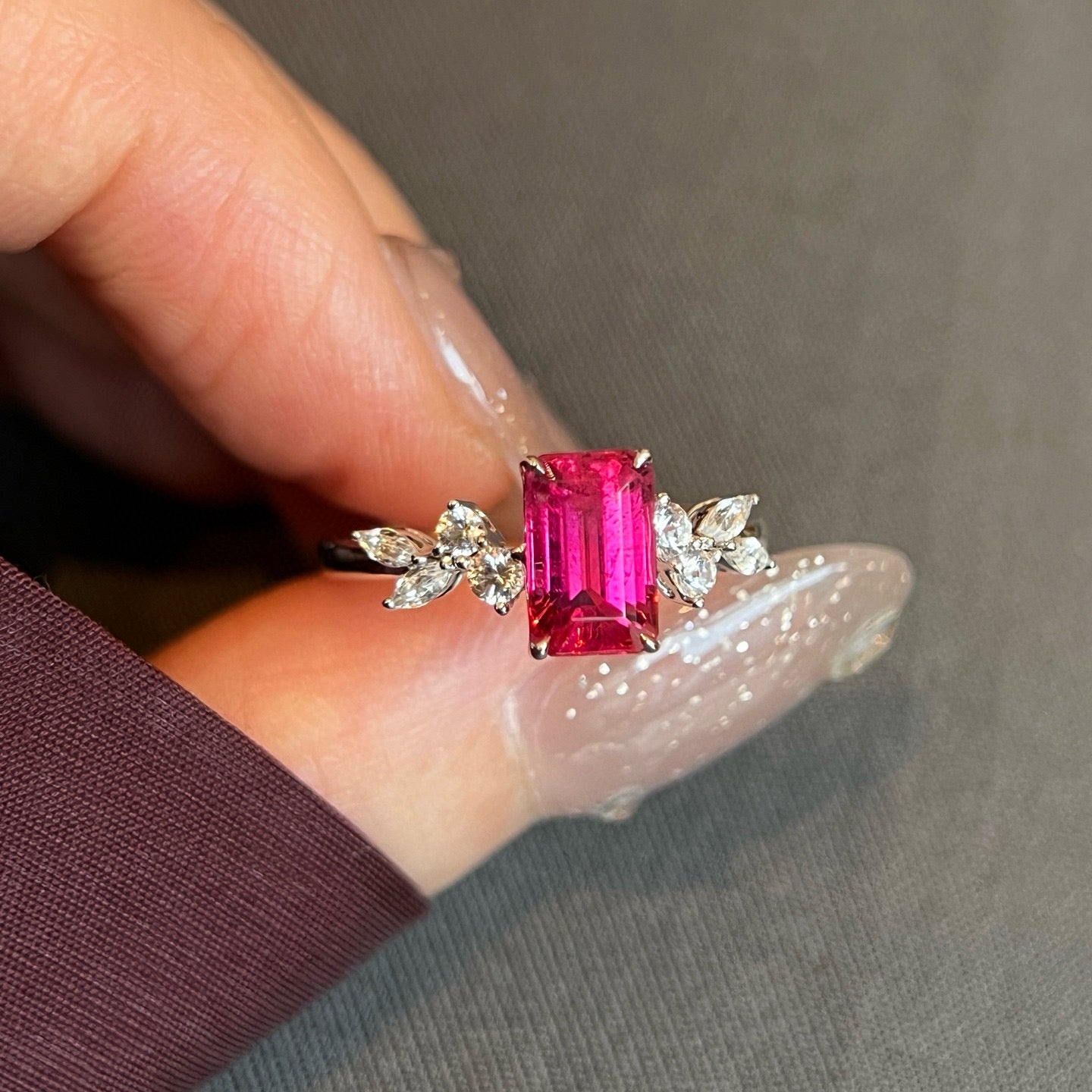 Ref:231027208 // Gold Content:14K Gold // Ring Size:7.25US // // Main Gemstone:Tourmaline // Shape:Octagonal // Carat Weight:1.47ct // Color:Red // Treatment:Natural // // Adjacent Gemstone 2 : Spinel // Shape:Multiply // Carat Weight:0.34ct // Color:White // Treatment:Natural //