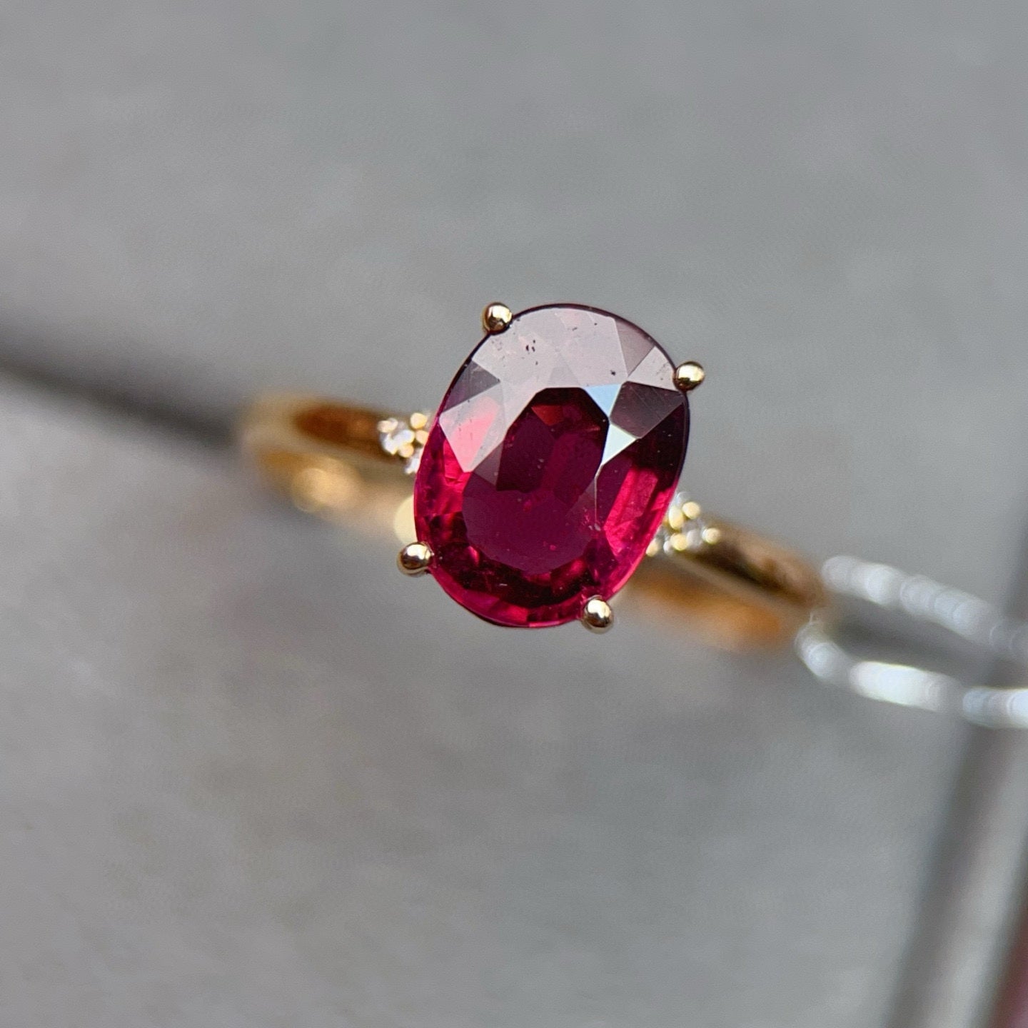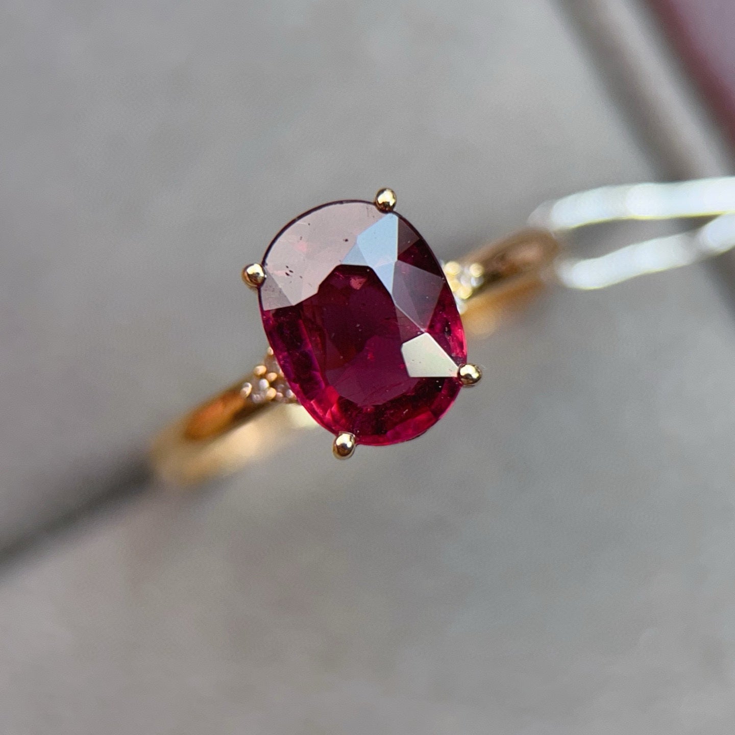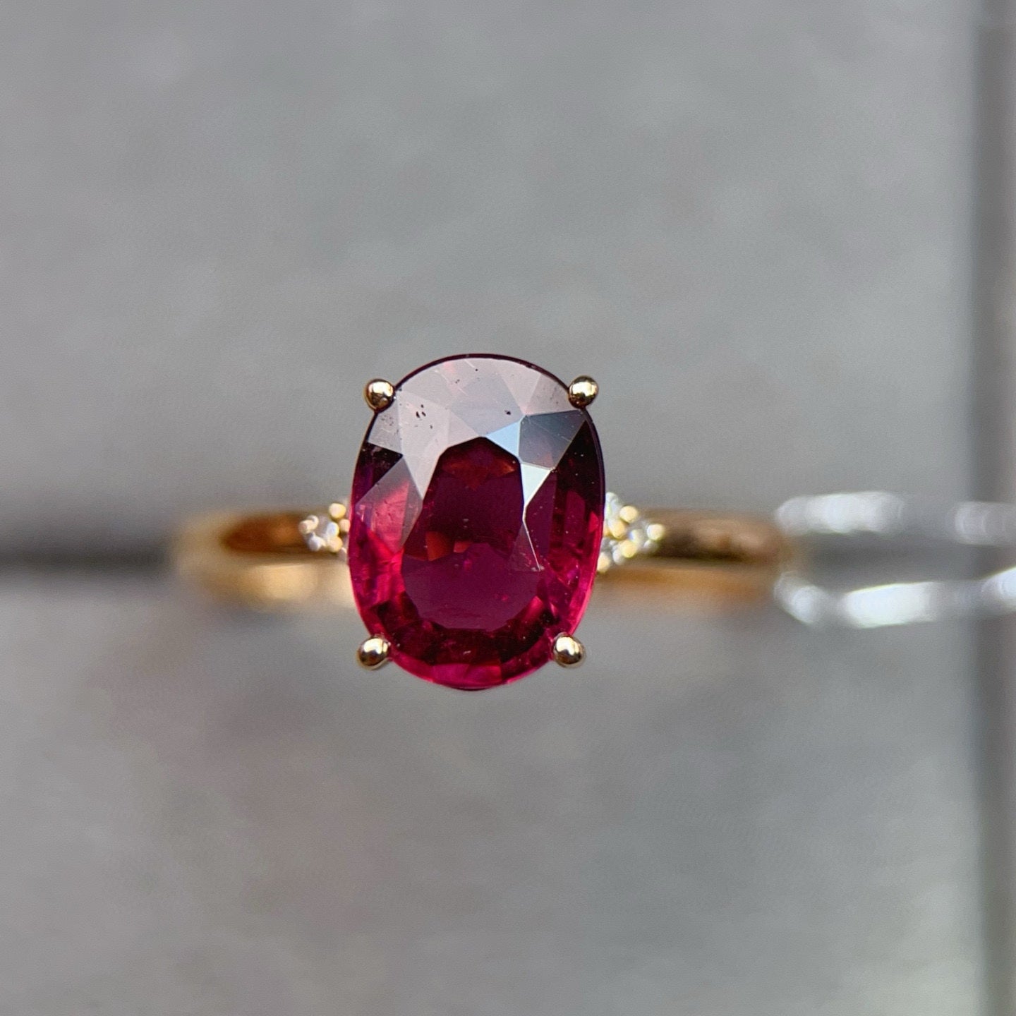Ref:231023128 // Gold Content:14K Gold // Ring Size:7.25US // // Main Gemstone:Tourmaline // Shape:Oval // Carat Weight:1.8ct // Color:Red // Treatment:Natural // // Adjacent Gemstone 2 : Diamond // Number of stones:6 // Shape:Round // Carat Weight:0.03ct // Clarity Grade:VS-SI // Color:H // Treatment:Natural // Cut Grade:G //