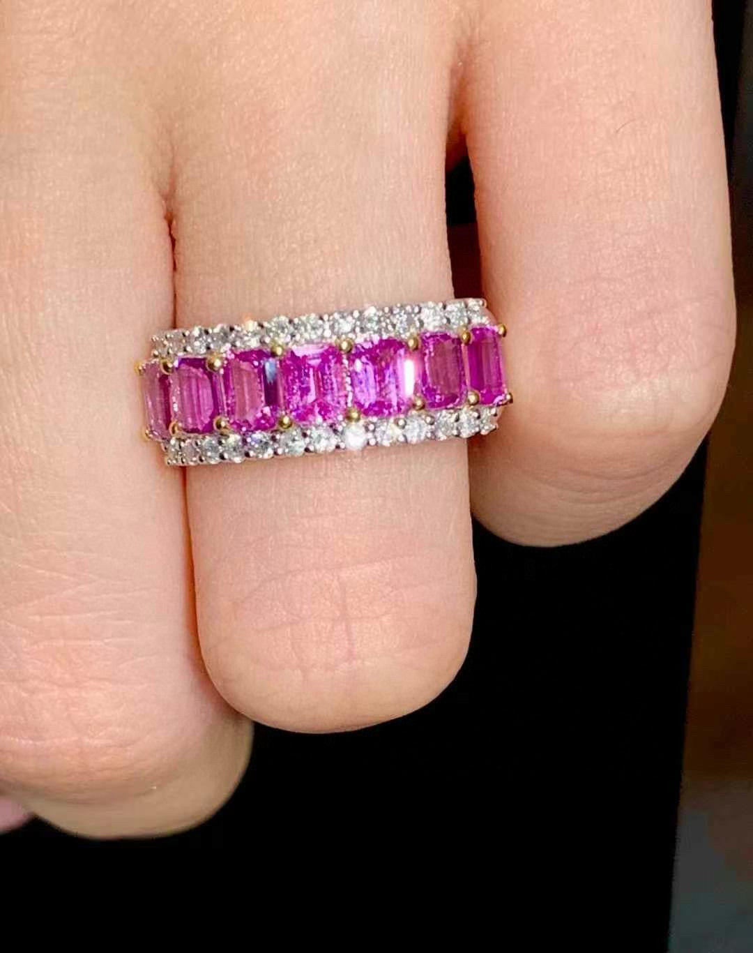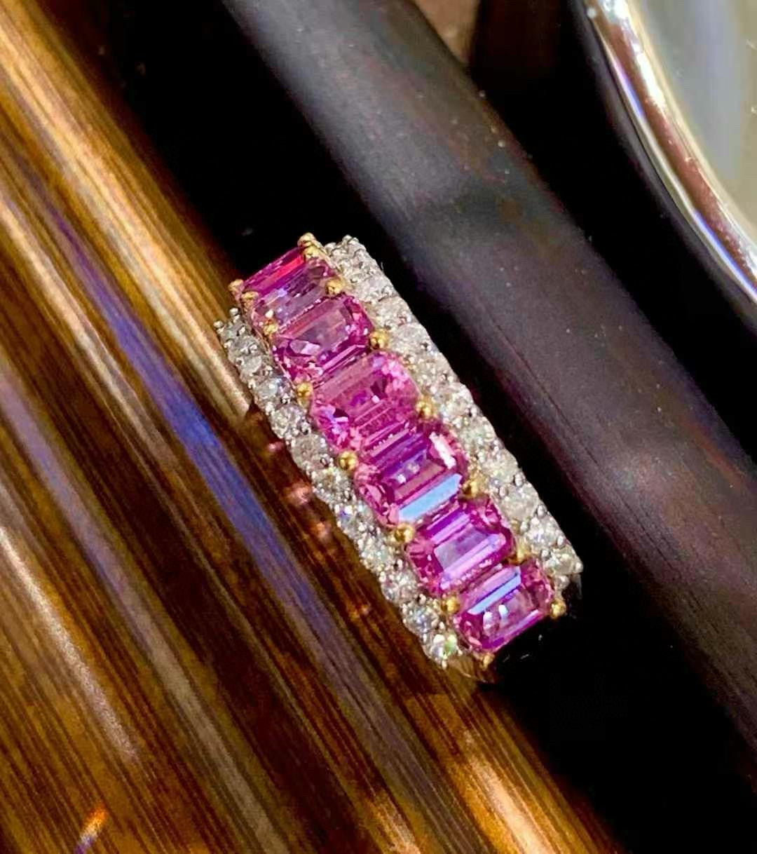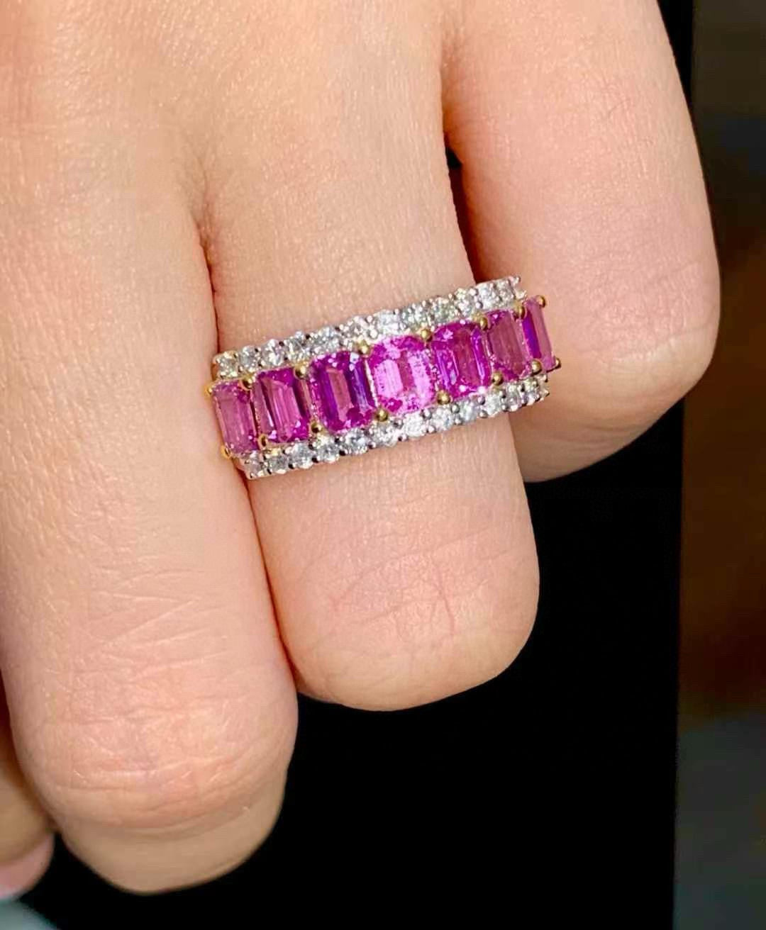 Ref:231027226 // Gold Content:14K Gold // Ring Size:7.25US // // Main Gemstone:Sapphire // Shape:Octagonal // Carat Weight:1.85ct // Color:Pink // Treatment:Natural // // Adjacent Gemstone 2 : Diamond // Shape:Round // Clarity Grade:VS-SI // Color:H // Treatment:Natural // Cut Grade:G //