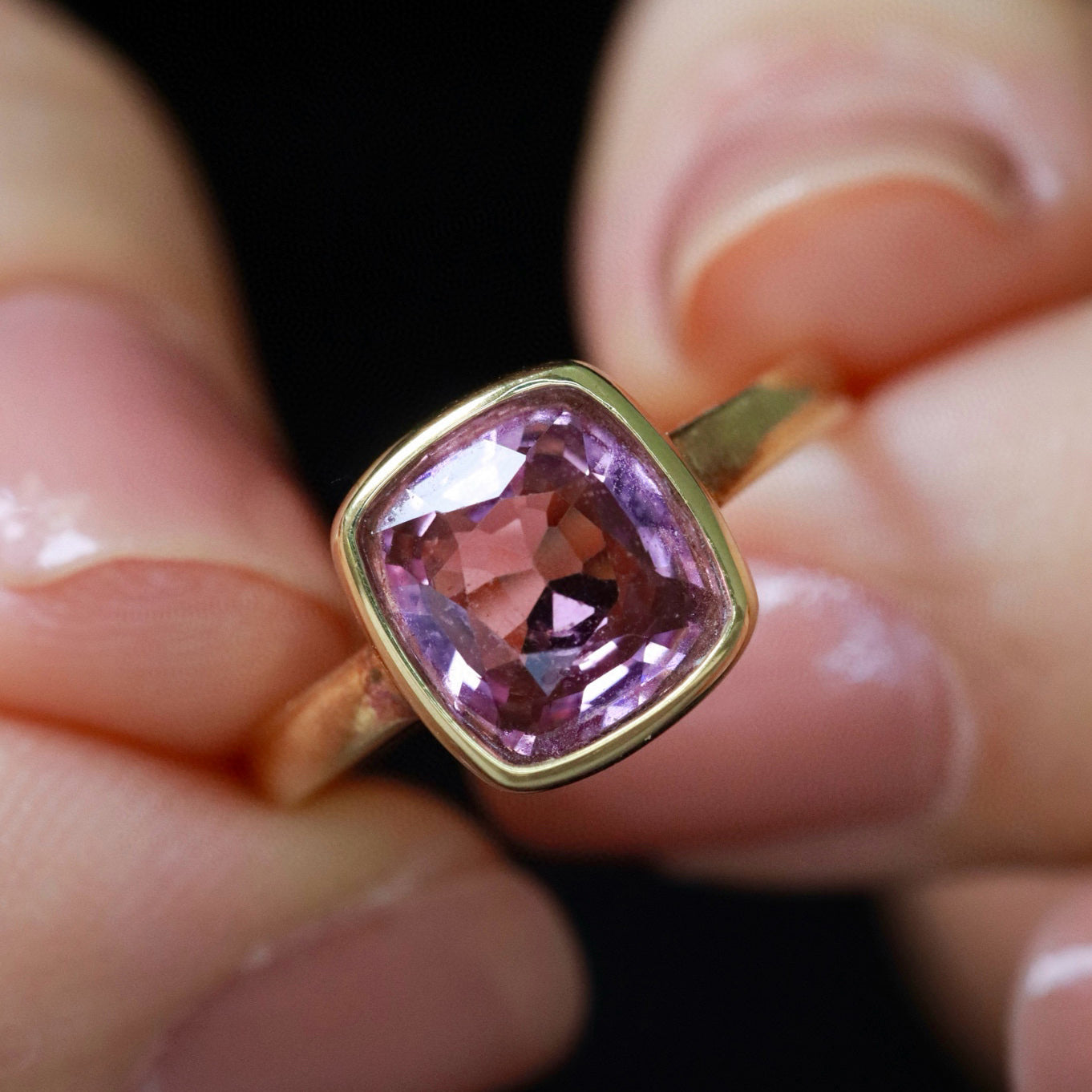 Ref:231019119 // Gold Content:14K Gold // Ring Size:7.25US // // Main Gemstone:Spinel // Shape:Cushion // Carat Weight:1.85ct // Color:Purple // Treatment:Natural //