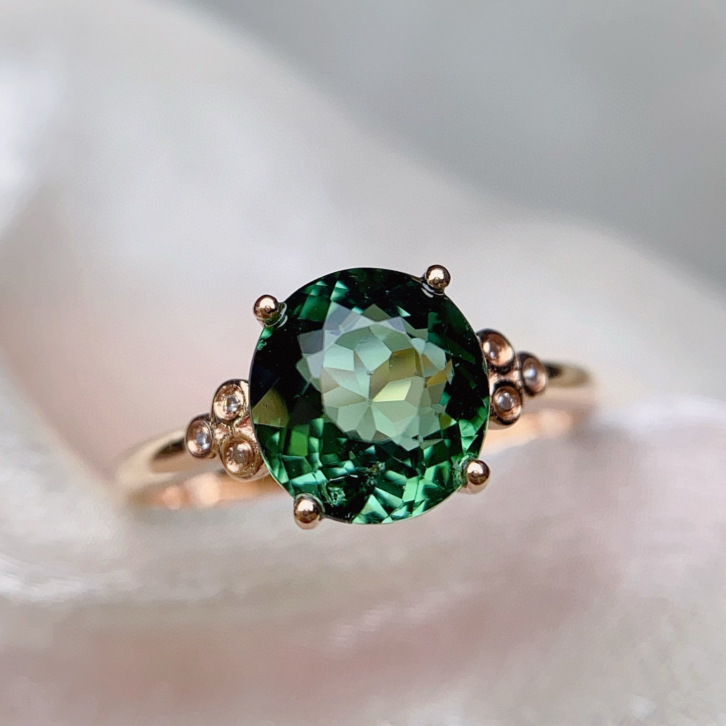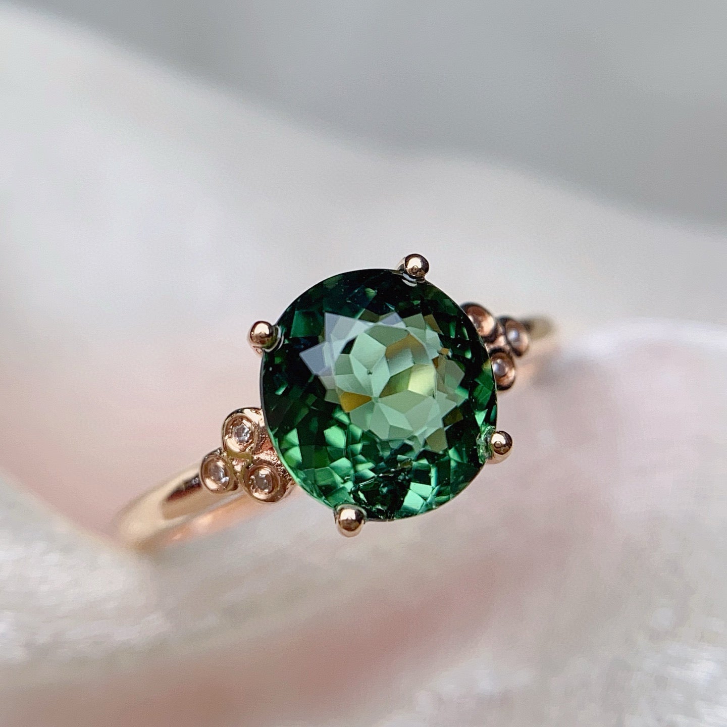 Ref:231027082 // Gold Content:14K Gold // Ring Size:7.25US // // Main Gemstone:Tourmaline // Shape:Oval // Carat Weight:1.85ct // Color:Green // Treatment:Natural // // Adjacent Gemstone 2 : Diamond // Number of stones:6 // Shape:Round // Clarity Grade:VS-SI // Color:H // Treatment:Natural // Cut Grade:G //