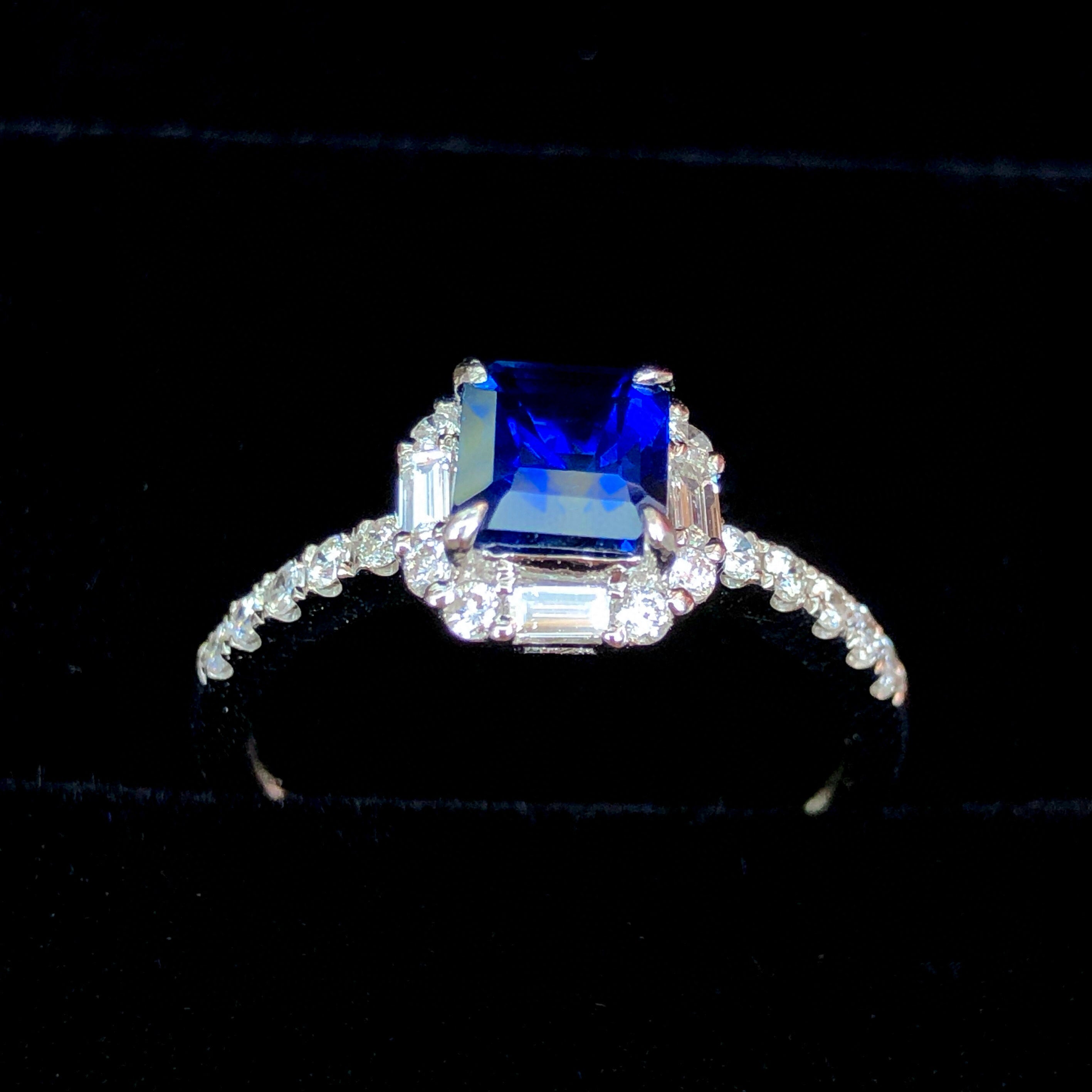 Ref:231025025 // Gold Content:14K Gold // Ring Size:7.25US // // Main Gemstone:Sapphire // Shape:Octagonal // Carat Weight:1.42ct // Color:Blue // Treatment:Natural // // Adjacent Gemstone 2 : Diamond // Shape:Multiply // Carat Weight:0.43ct // Clarity Grade:VS-SI // Color:H // Treatment:Natural //