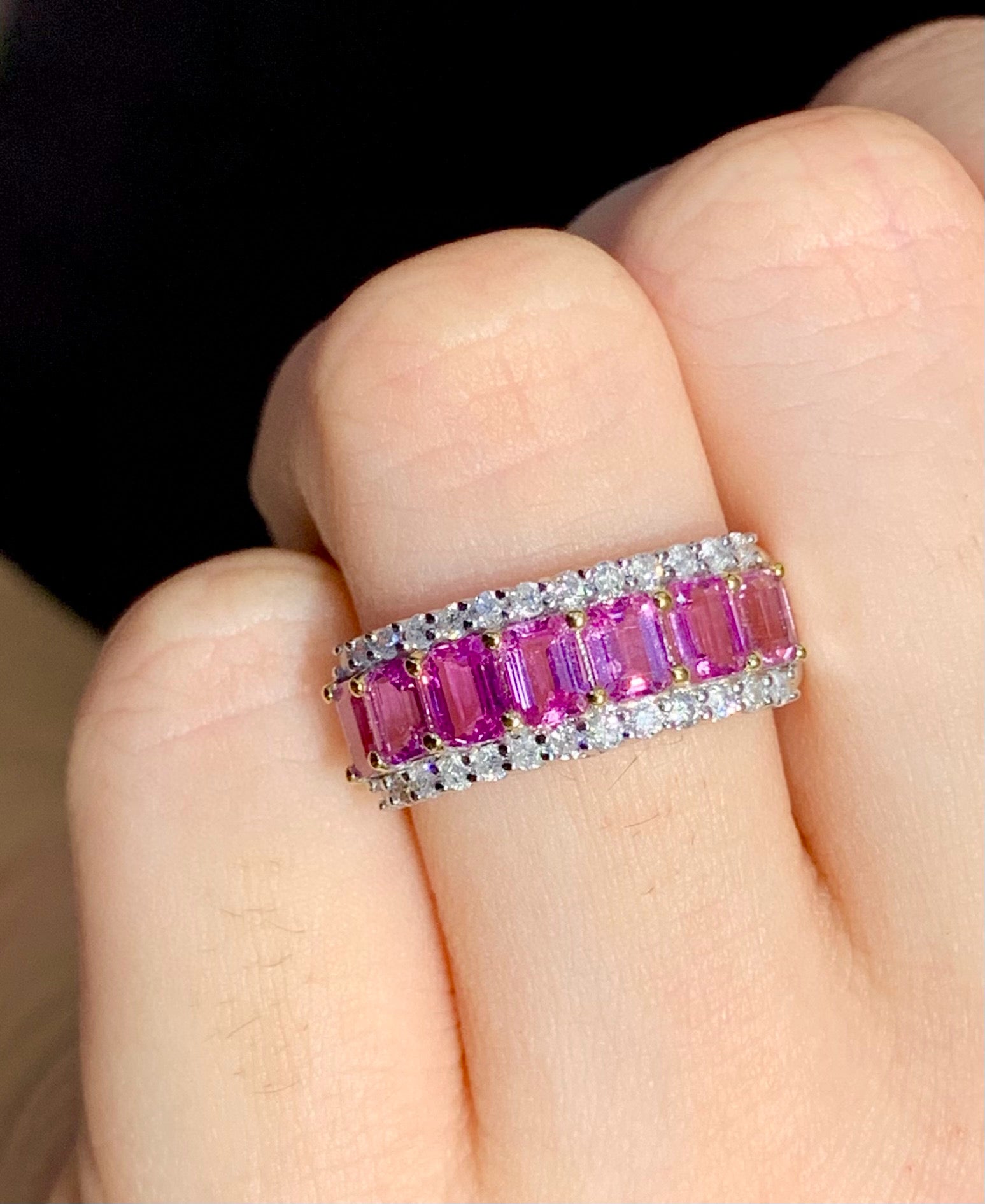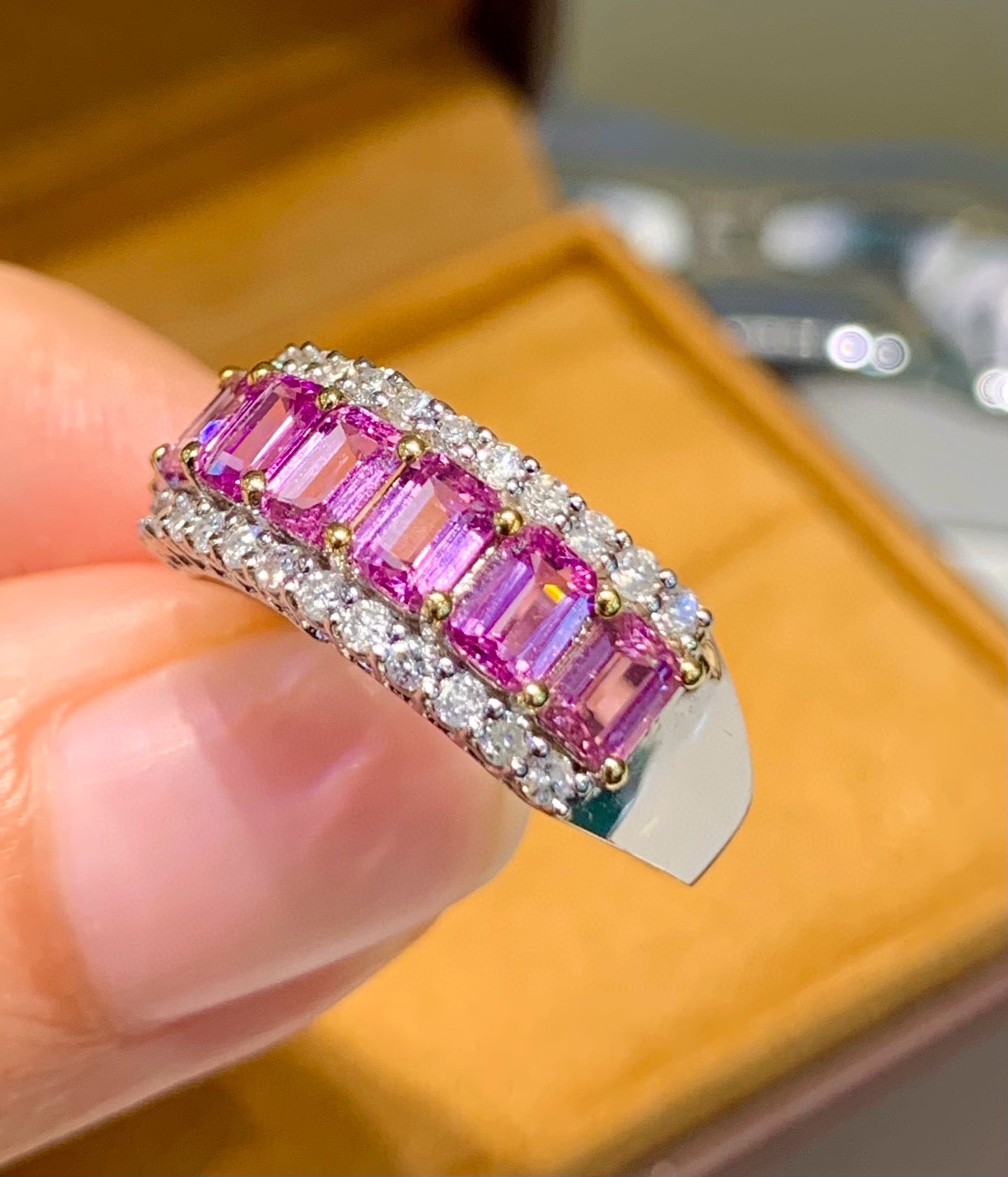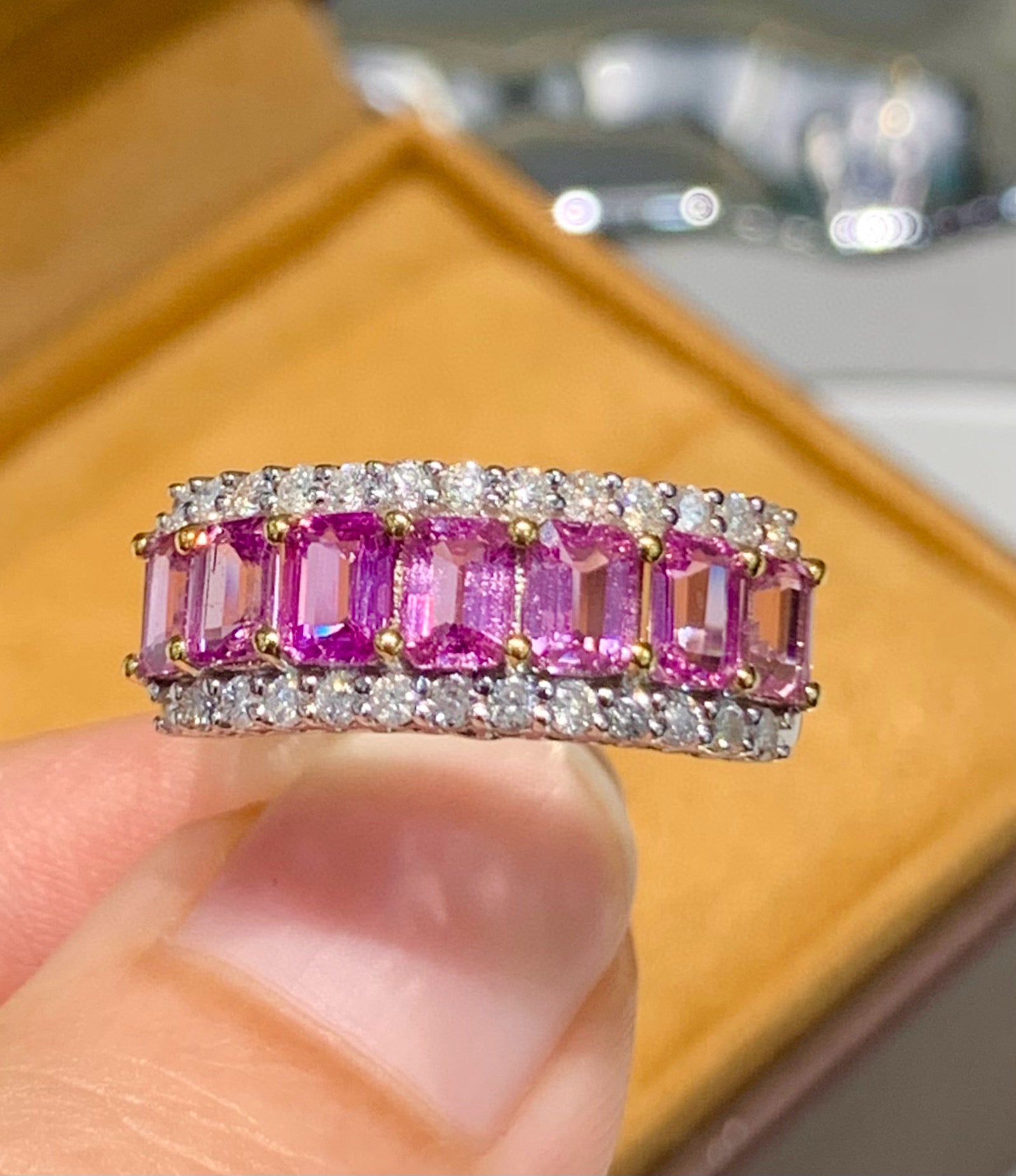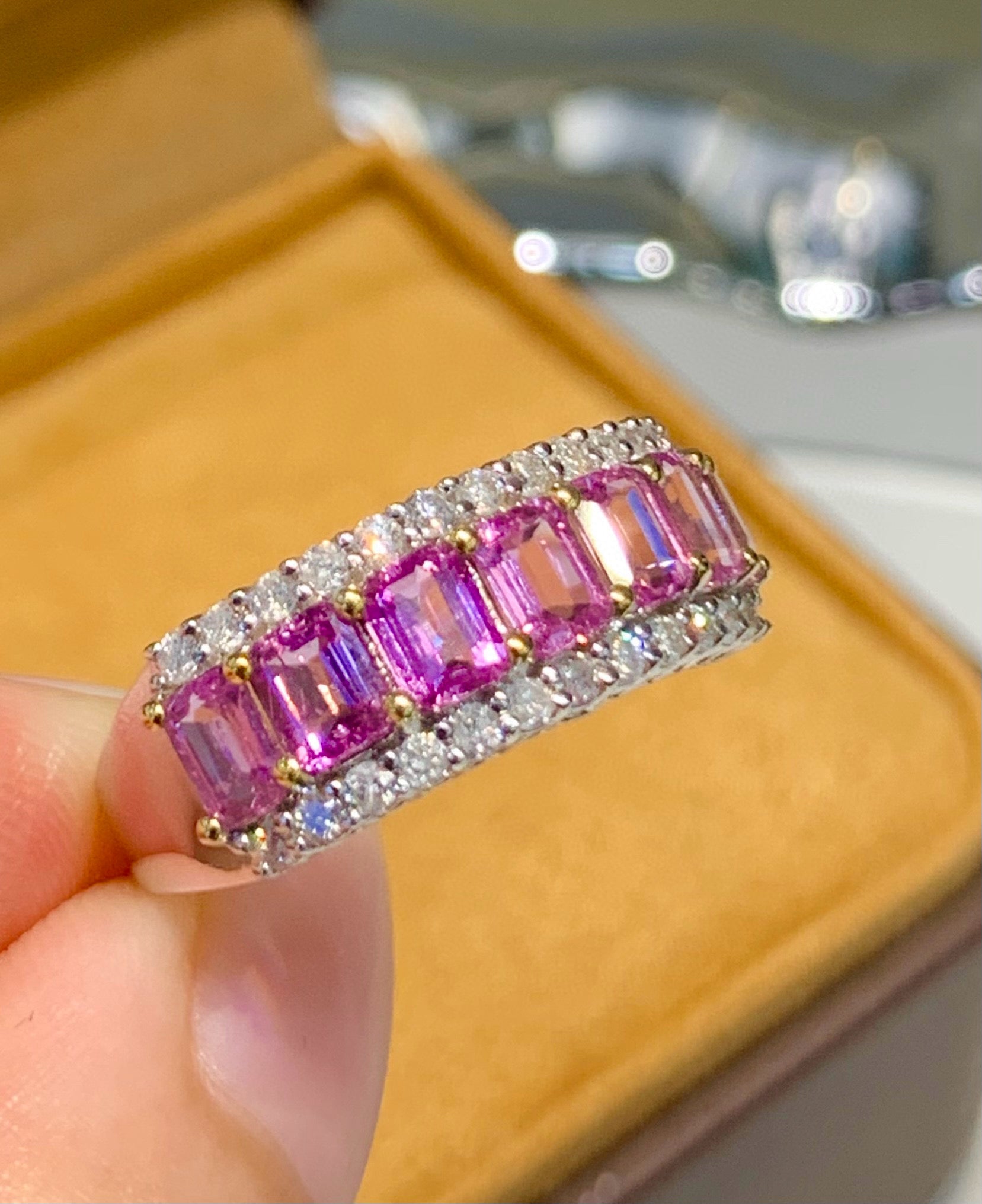 Ref:231027151 // Gold Content:14K Gold // Ring Size:7.25US // // Main Gemstone:Padparadscha Sapphire // Shape:Octagonal // Carat Weight:1.9ct // Color:Orangish Pink // Treatment:Natural // // Adjacent Gemstone 2 : Diamond // Shape:Round // Clarity Grade:VS-SI // Color:H // Treatment:Natural // Cut Grade:G //