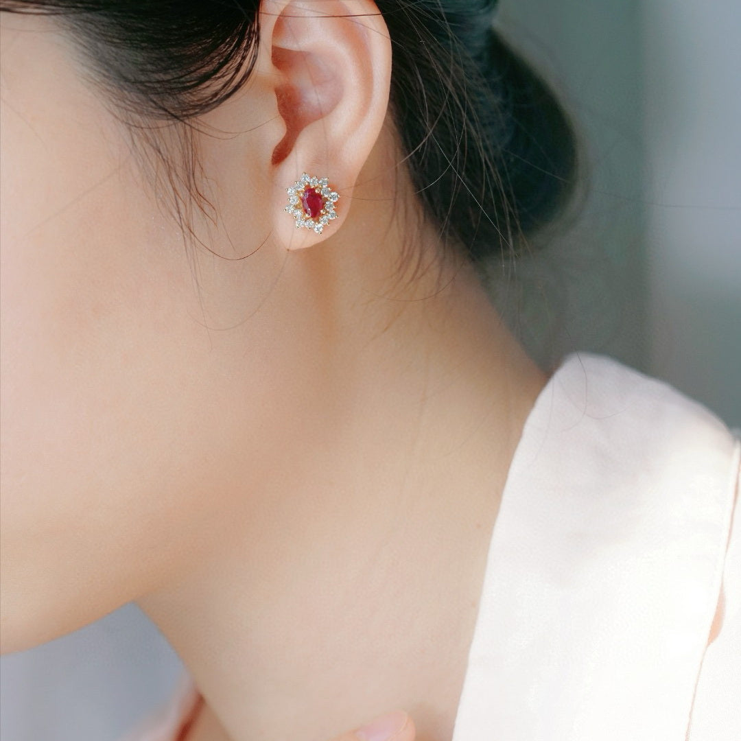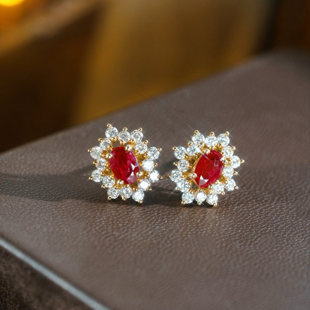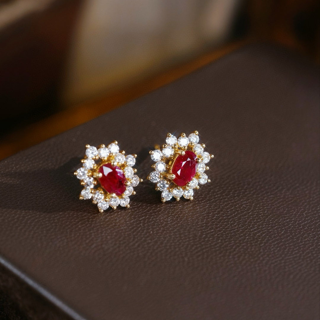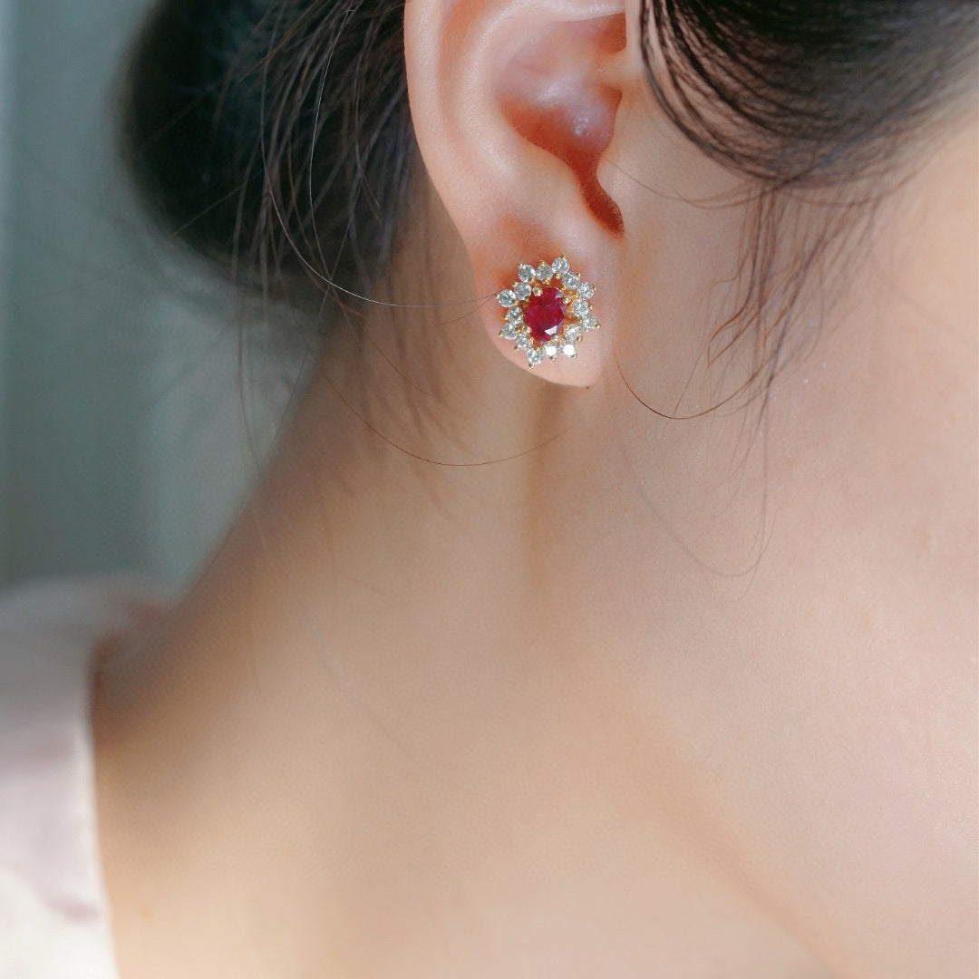 Ref:231019249 // Gold Content:14K Gold // Main Gemstone:Ruby // Shape:Oval // Carat Weight:1.1ct // Color:Red // Treatment:Natural // // Adjacent Gemstone 2 : Diamond // Shape:Round // Carat Weight:0.8ct // Clarity Grade:VS-SI // Color:H // Treatment:Natural // Cut Grade:G //