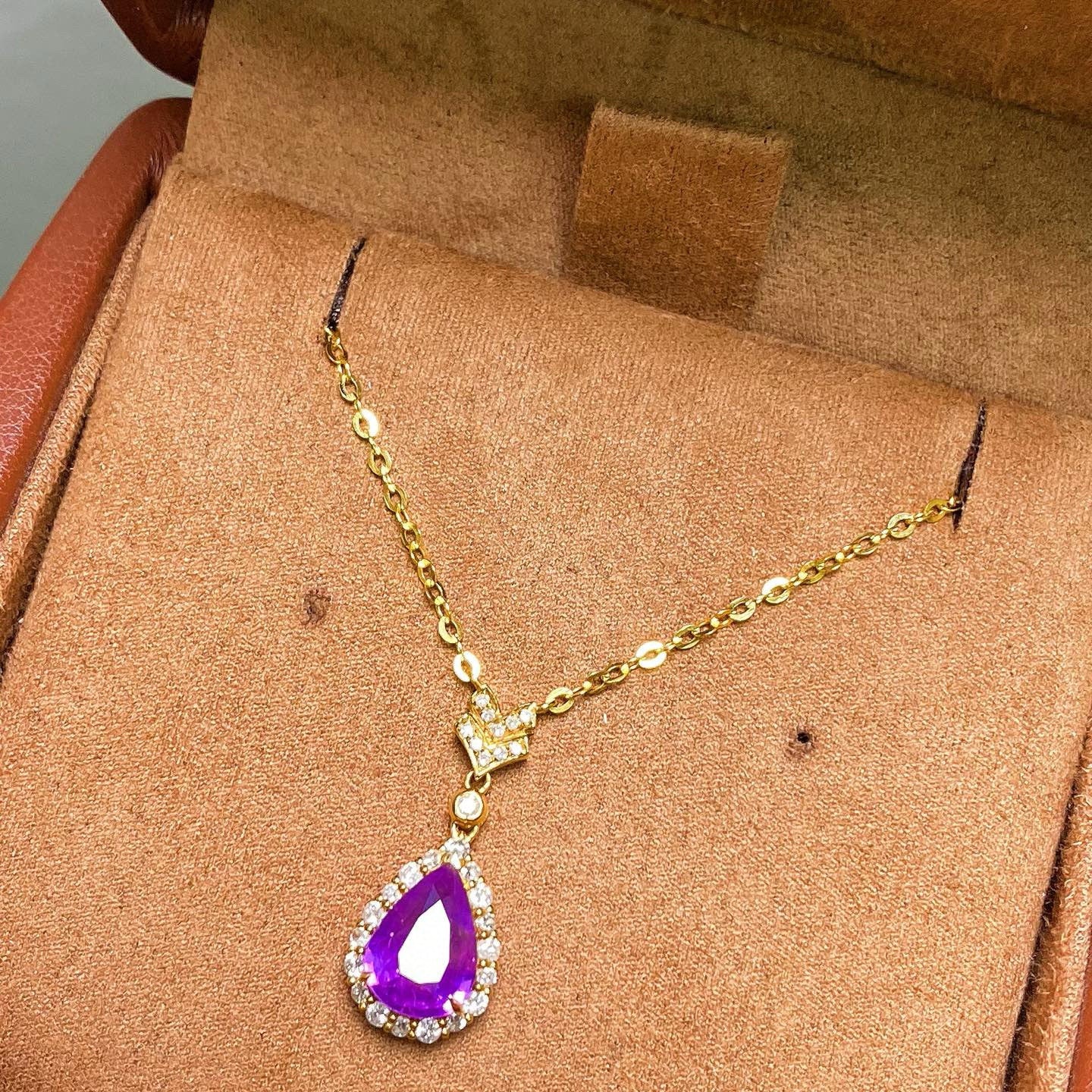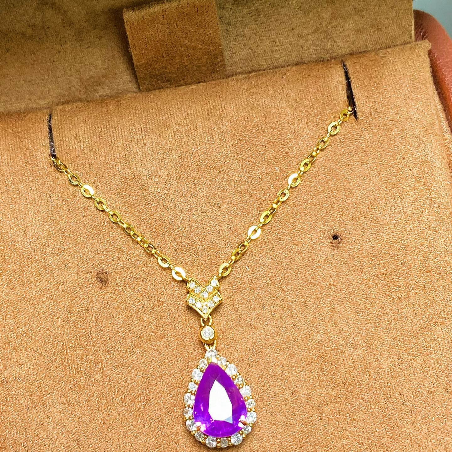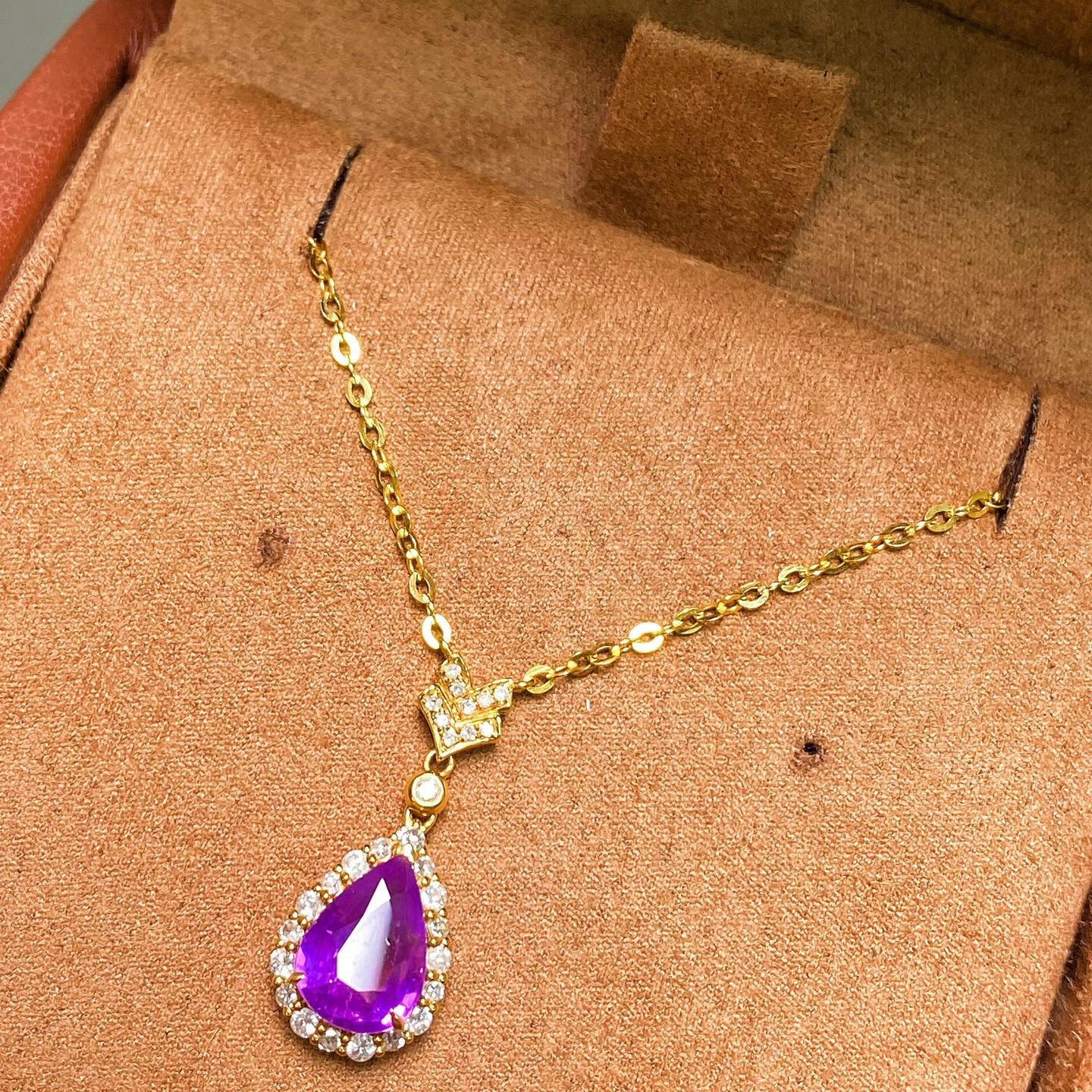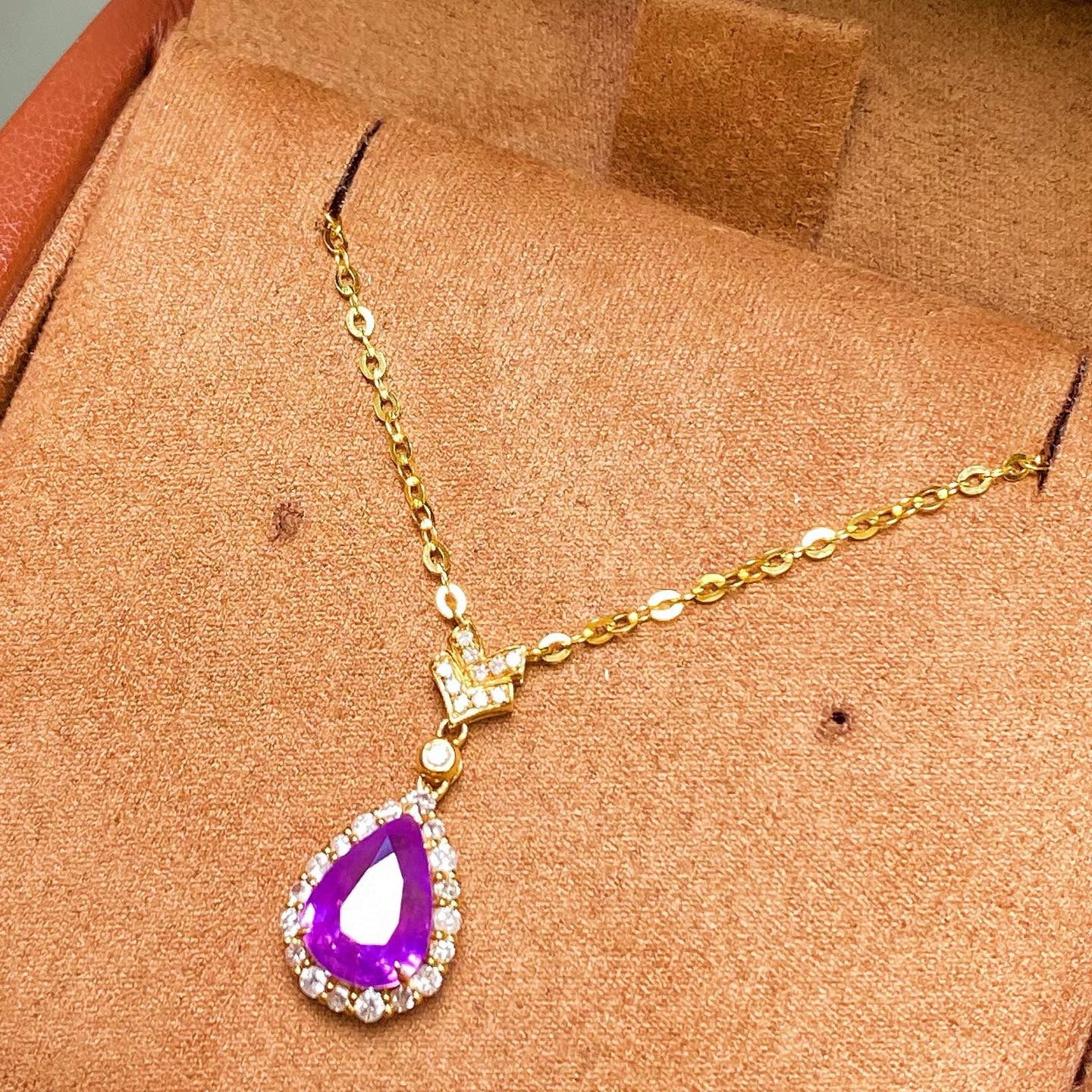 Ref:231021252 // Gold Content:14K Gold // Main Gemstone:Sapphire // Shape:Pear // Carat Weight:1.66ct // Color:Purple // Treatment:Natural // // Adjacent Gemstone 2 : Diamond // Shape:Round // Carat Weight:0.24ct // Clarity Grade:VS-SI // Color:H // Treatment:Natural // Cut Grade:G //