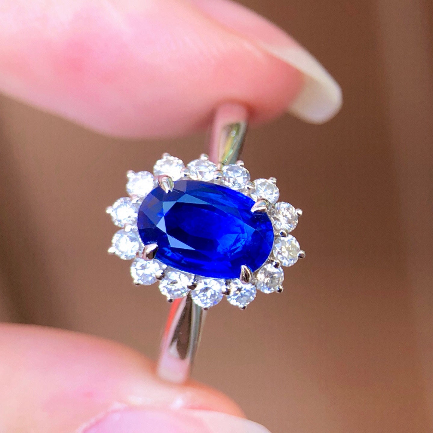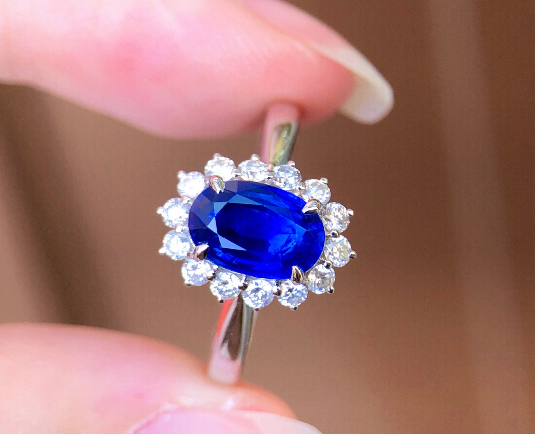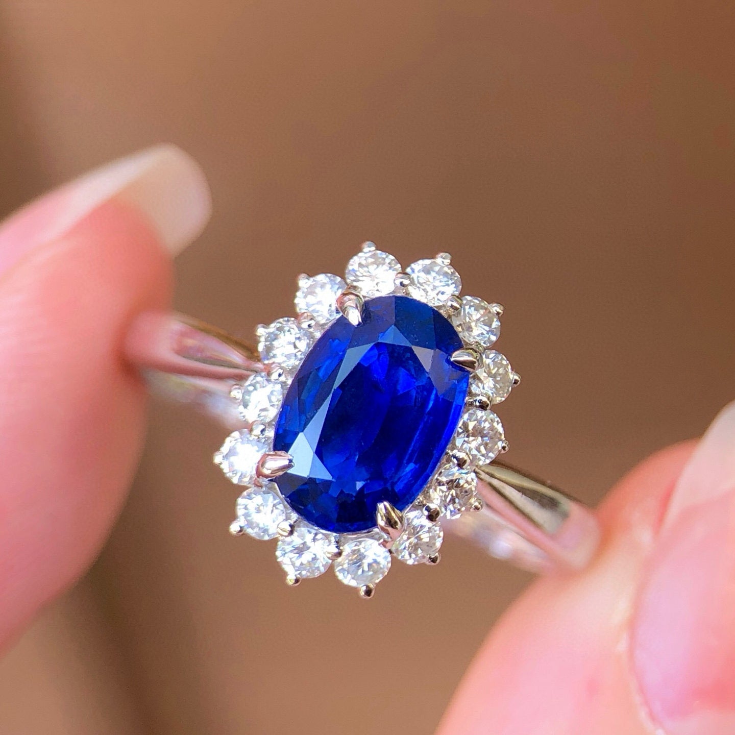 Ref:231019060 // Gold Content:14K Gold // Ring Size:7.25US // // Main Gemstone:Sapphire // Shape:Oval // Carat Weight:1.51ct // Color:Blue // Treatment:Natural // // Adjacent Gemstone 2 : Diamond // Shape:Round // Carat Weight:0.39ct // Clarity Grade:VS-SI // Color:H // Treatment:Natural // Cut Grade:G //