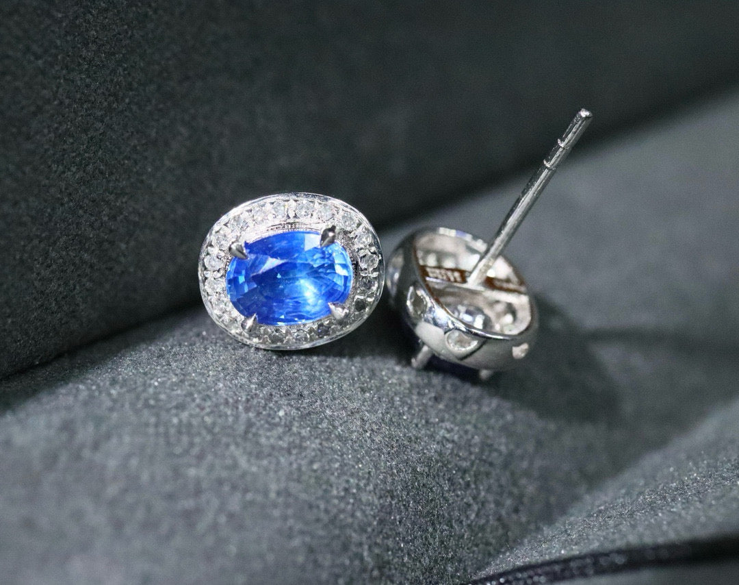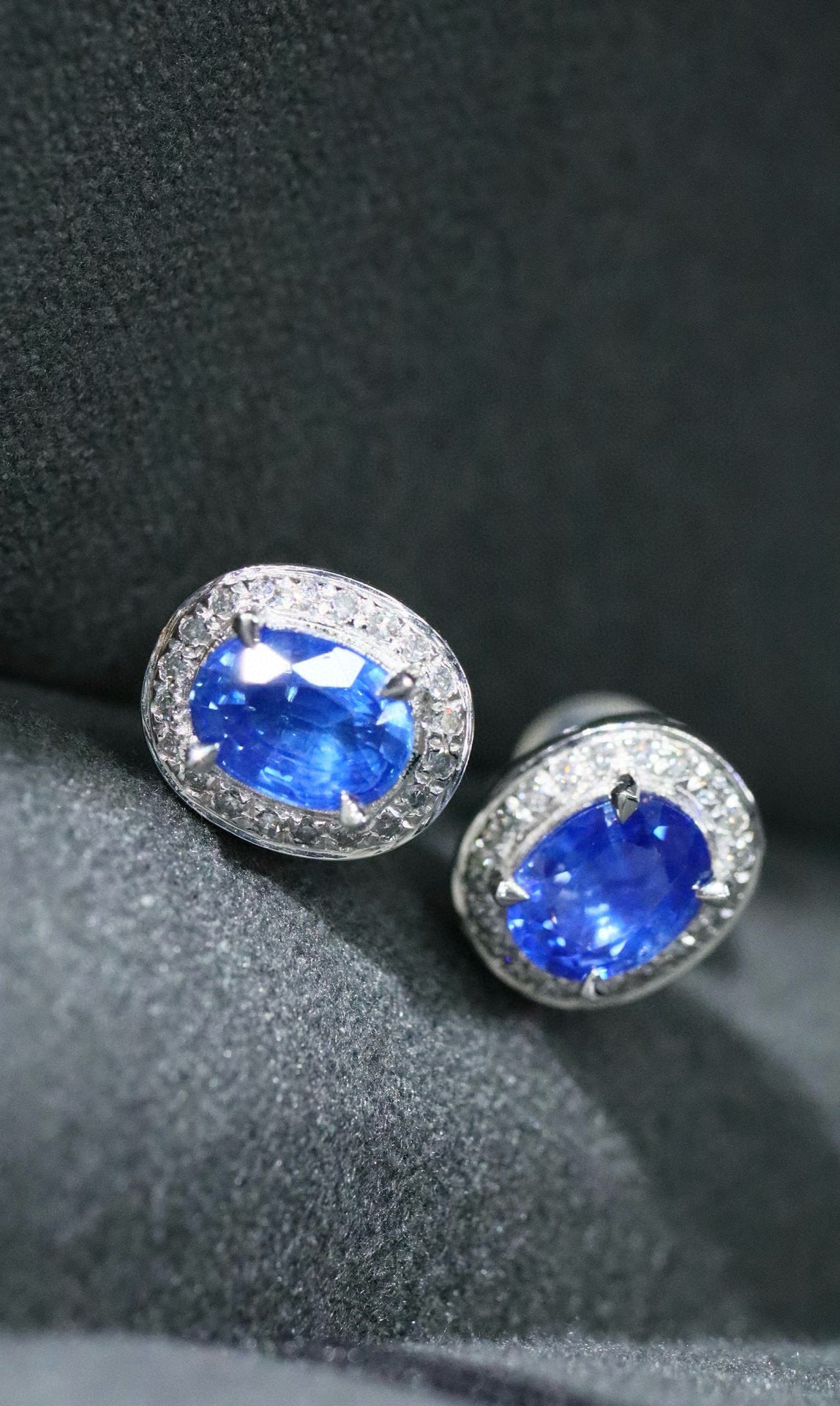 14K GOLD 1.91 CTW NATURAL SAPPHIRE & DIAMOND EARRINGS