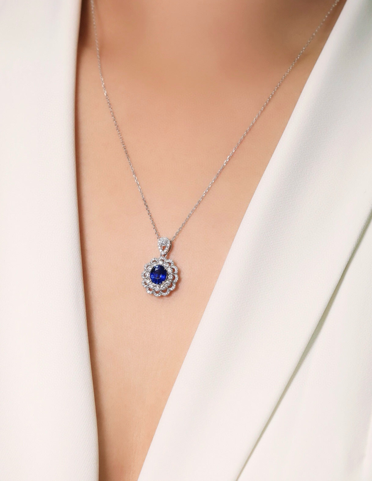 14K GOLD 1.92 CTW NATURAL SAPPHIRE & DIAMOND NECKLACE