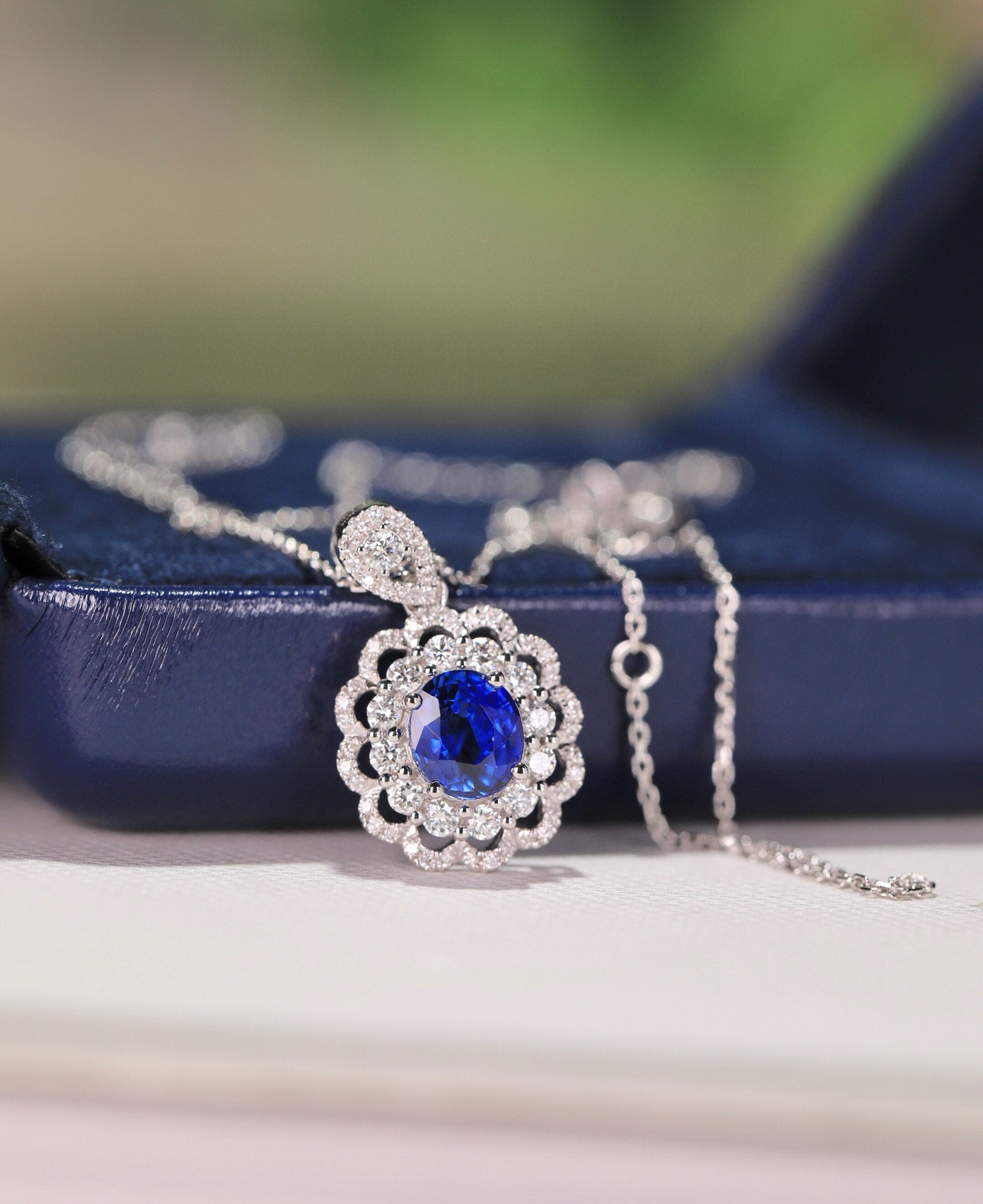 Ref:231025069 // Gold Content:14K Gold // Main Gemstone:Sapphire // Shape:Oval // Carat Weight:1.48ct // Color:Royal blue // Treatment:Natural // // Adjacent Gemstone 2 : Diamond // Shape:Round // Carat Weight:0.44ct // Clarity Grade:VS-SI // Color:H // Treatment:Natural // Cut Grade:G //