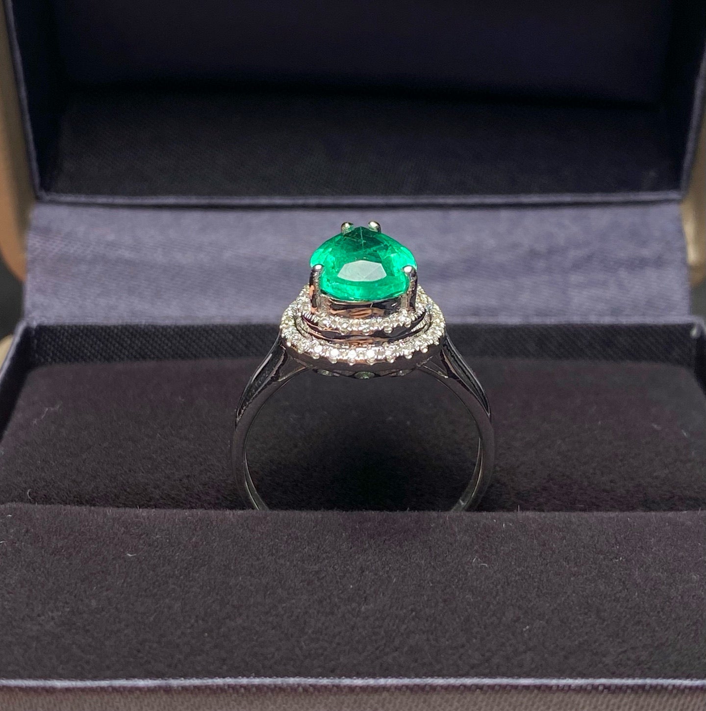 Ref:231025108 // Gold Content:14K Gold // Ring Size:7.25US // // Main Gemstone:Emerald // Shape:Pear // Carat Weight:1.93ct // Color:Green // Treatment:Natural // // Adjacent Gemstone 2 : Diamond // Number of stones:49 // Shape:Round // Clarity Grade:VS-SI // Color:H // Treatment:Natural // Cut Grade:G //