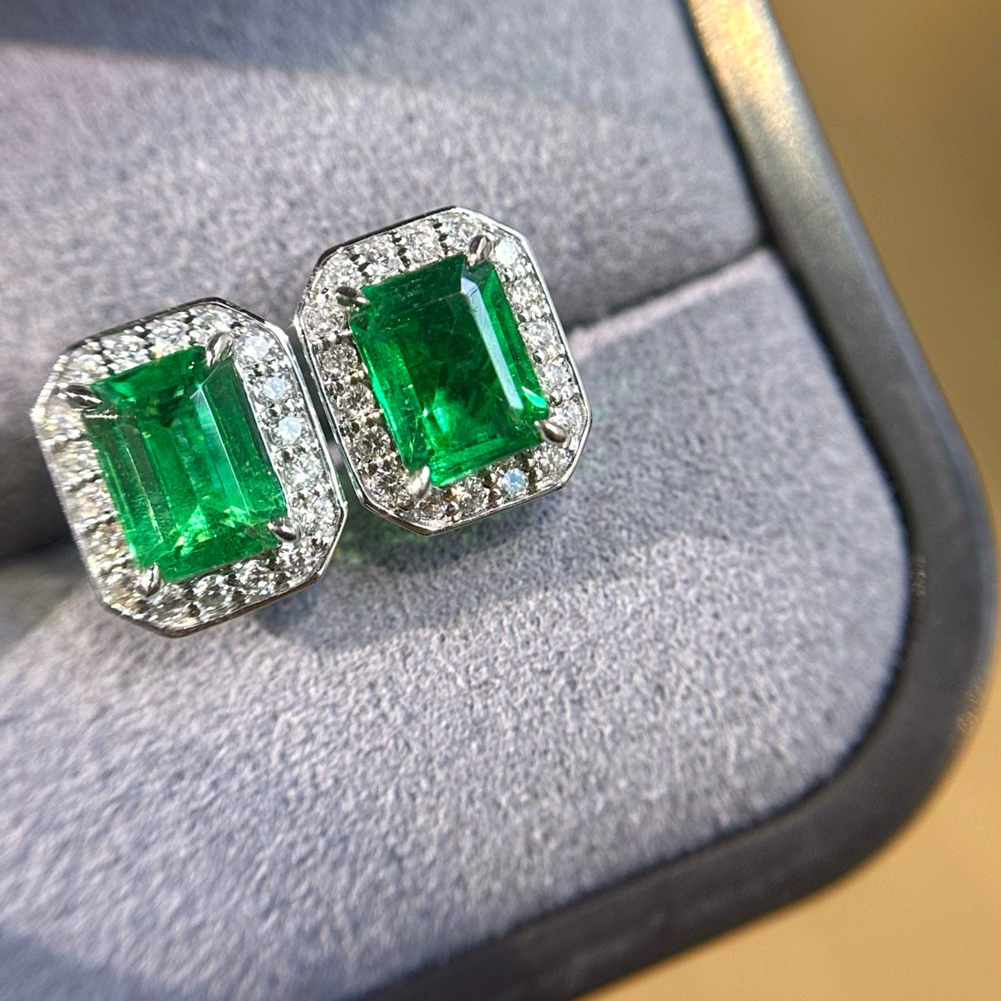 14K GOLD 1.94 CTW NATURAL EMERALD & DIAMOND EARRINGS