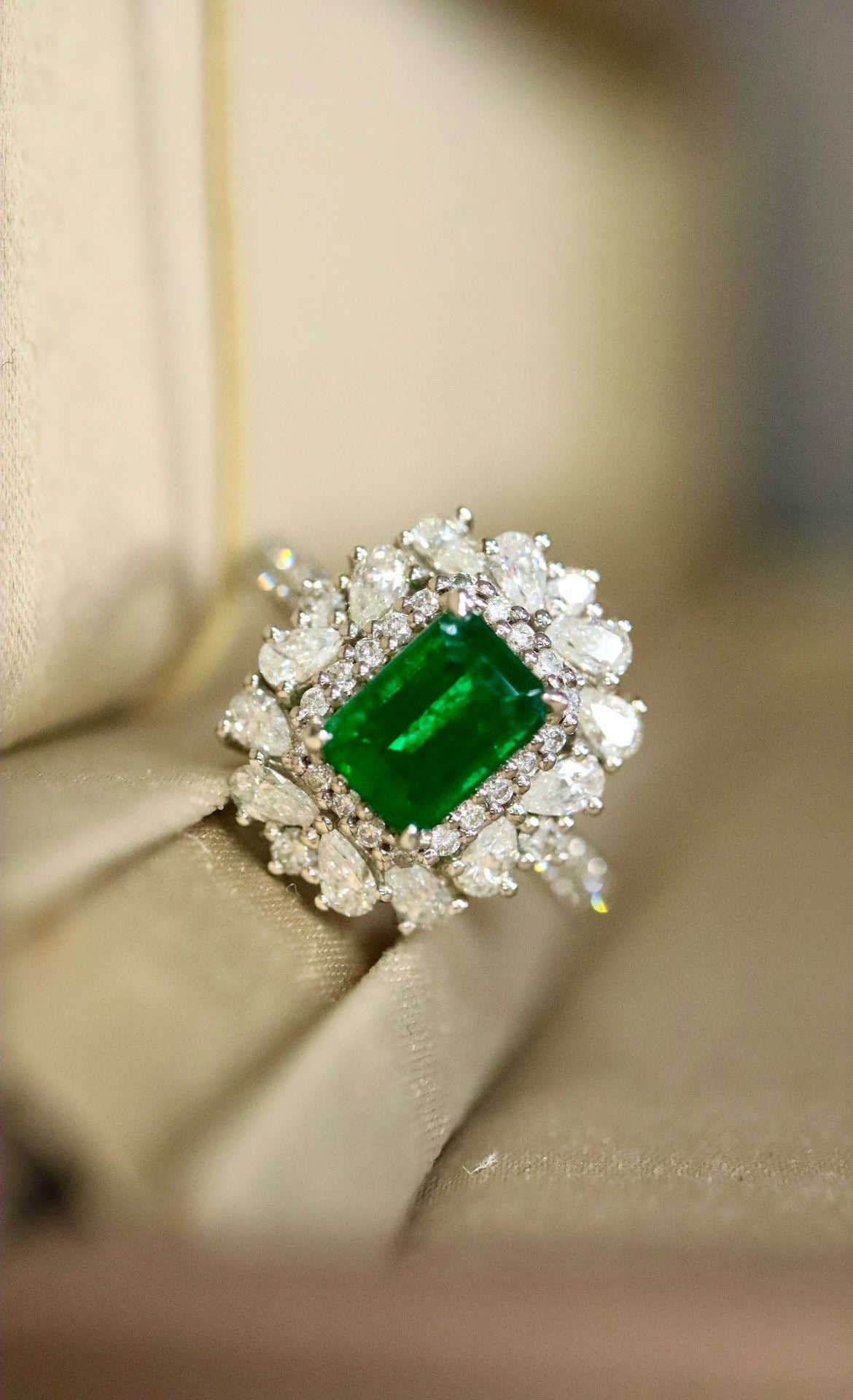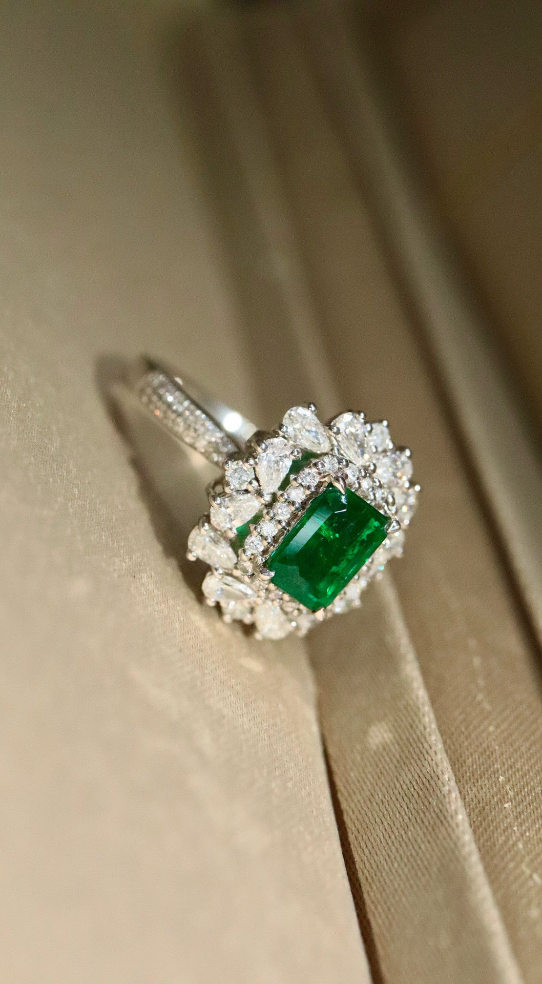 Ref:231019204 // Gold Content:14K Gold // Ring Size:7.25US // // Main Gemstone:Emerald // Shape:Octagonal // Carat Weight:1.01ct // Color:Green // Treatment:Natural // // Adjacent Gemstone 2 : Diamond // Shape:Multiply // Carat Weight:0.93ct // Clarity Grade:VS-SI // Color:H // Treatment:Natural //