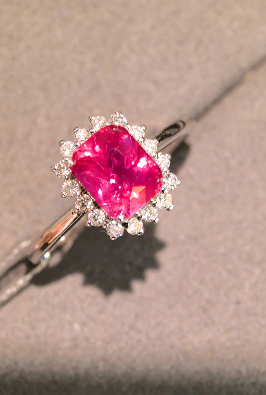 Ref:231027103 // Gold Content:14K Gold // Ring Size:7.25US // // Main Gemstone:Padparadscha Sapphire // Shape:Octagonal // Carat Weight:1.75ct // Color:Pink // Treatment:Natural // // Adjacent Gemstone 2 : Diamond // Shape:Round // Carat Weight:0.24ct // Clarity Grade:VS-SI // Color:H // Treatment:Natural // Cut Grade:G //