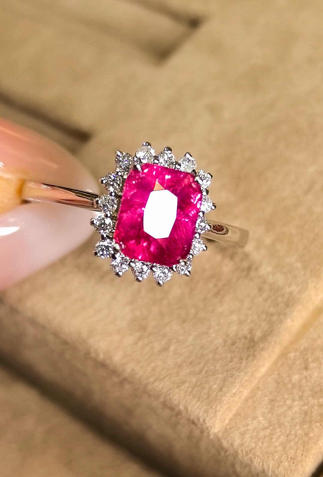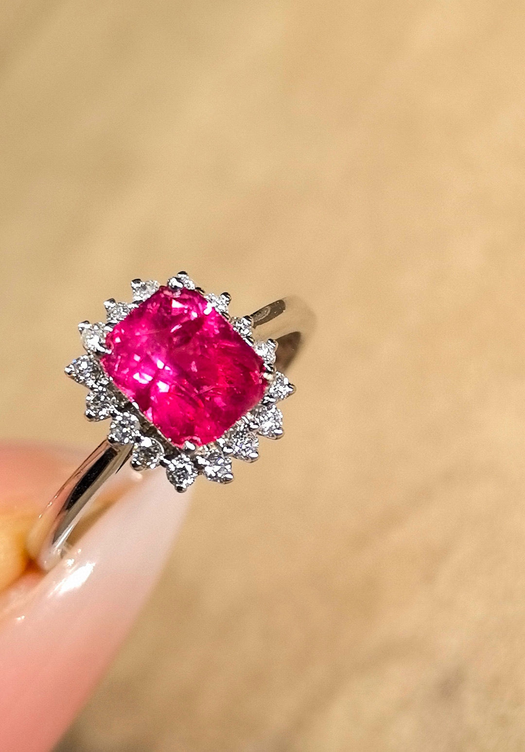 Ref:231025128 // Gold Content:14K Gold // Ring Size:7.25US // // Main Gemstone:Sapphire // Shape:Octagonal // Carat Weight:1.75ct // Color:Pink // Treatment:Natural // // Adjacent Gemstone 2 : Diamond // Shape:Round // Carat Weight:0.24ct // Clarity Grade:VS-SI // Color:H // Treatment:Natural // Cut Grade:G //