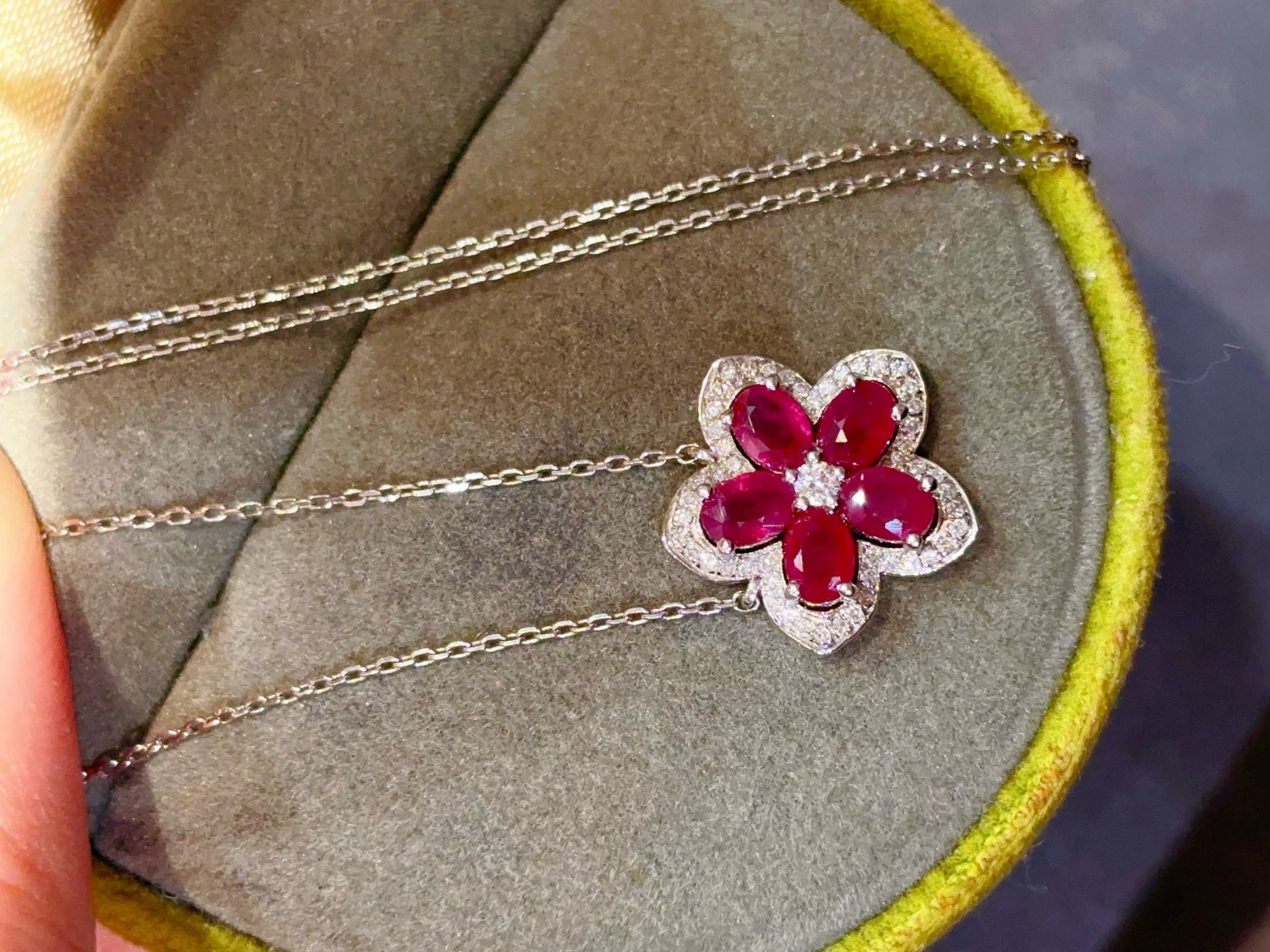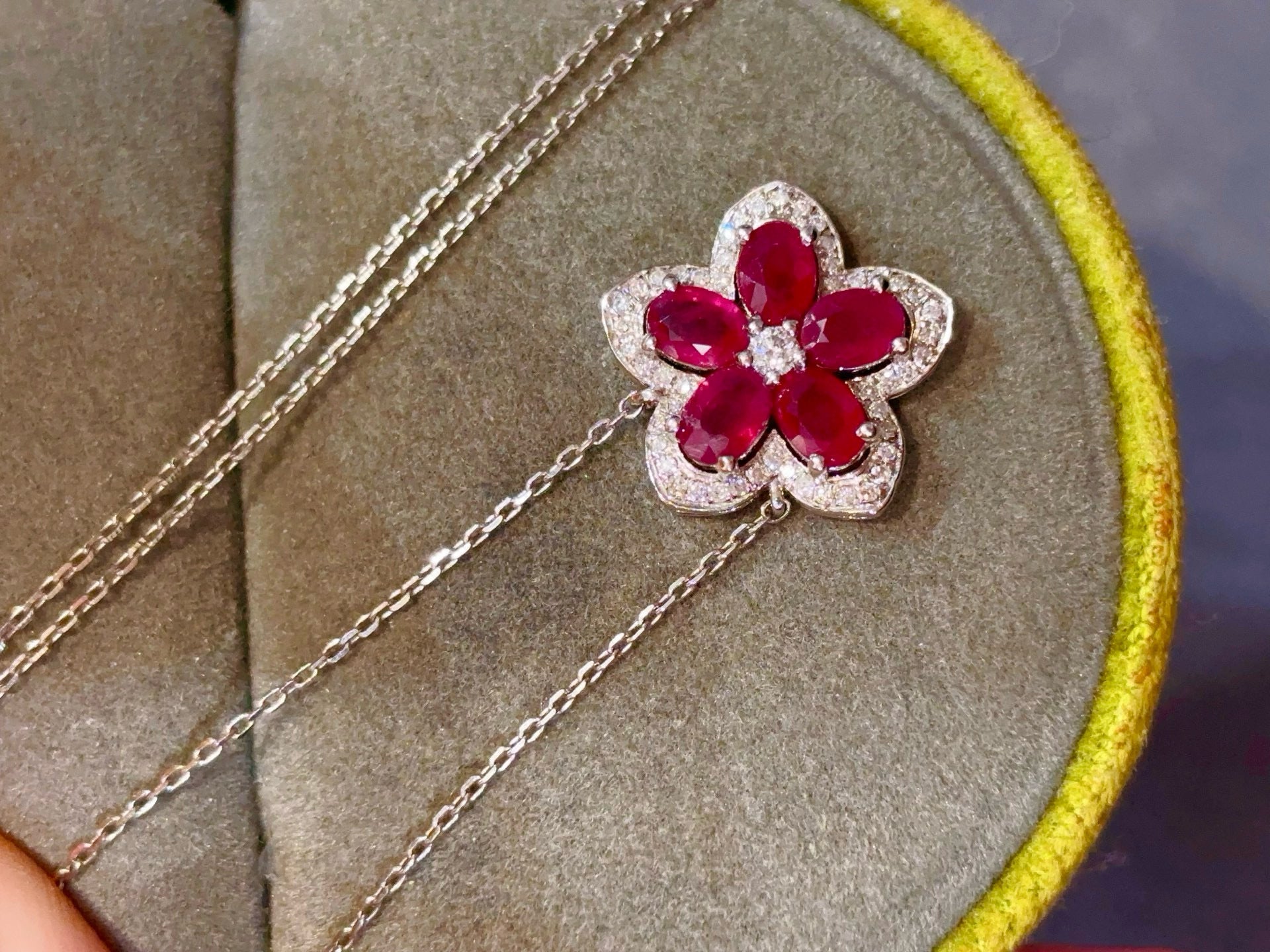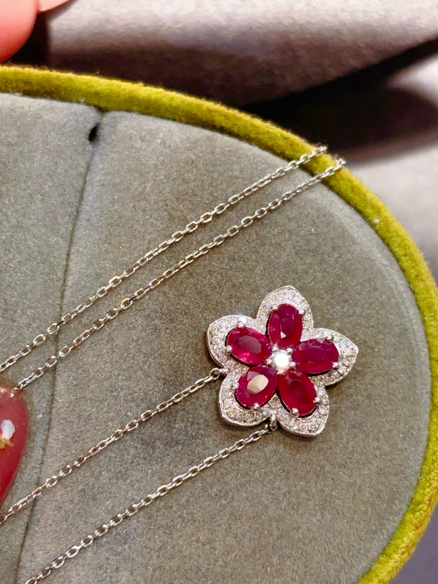 14K GOLD 1 CT NATURAL RUBY & DIAMOND NECKLACE