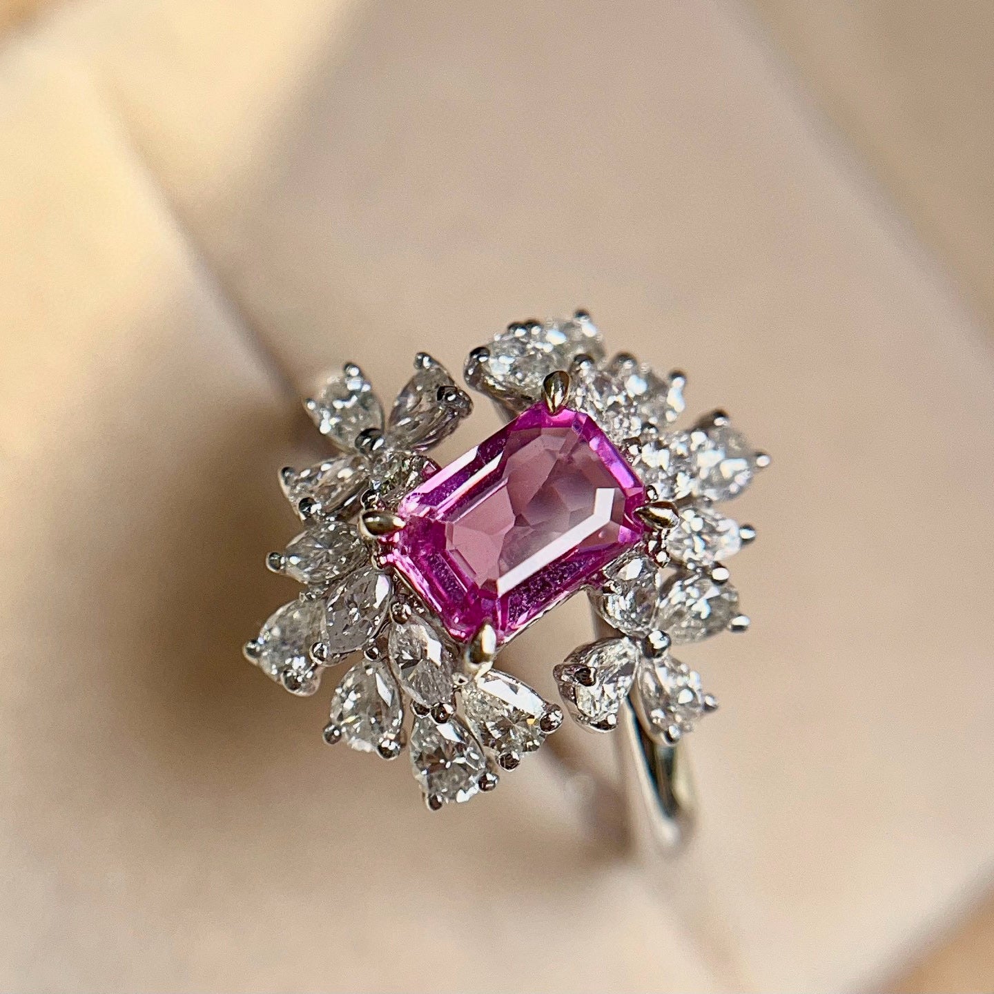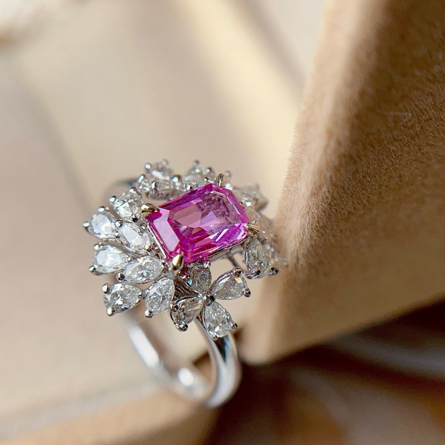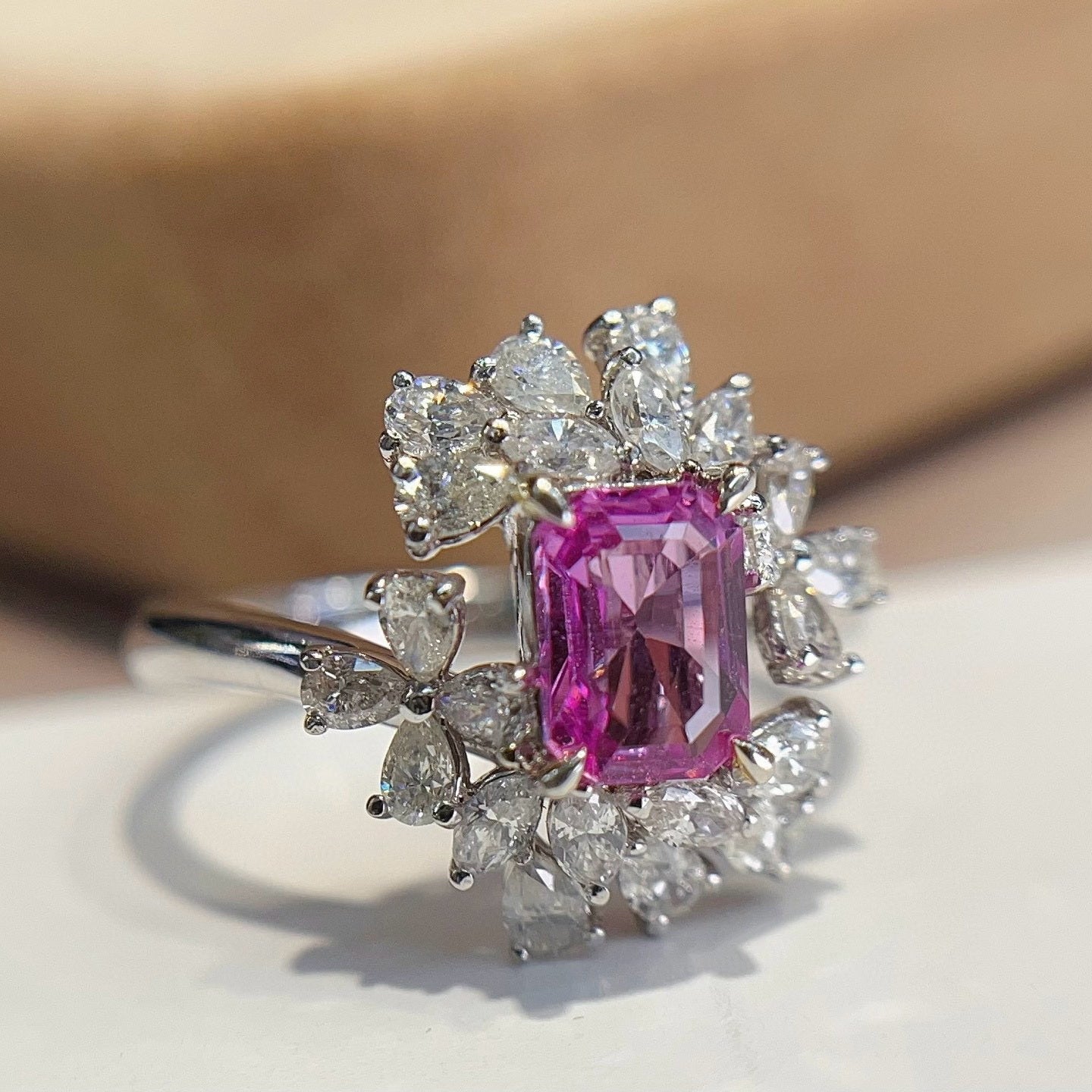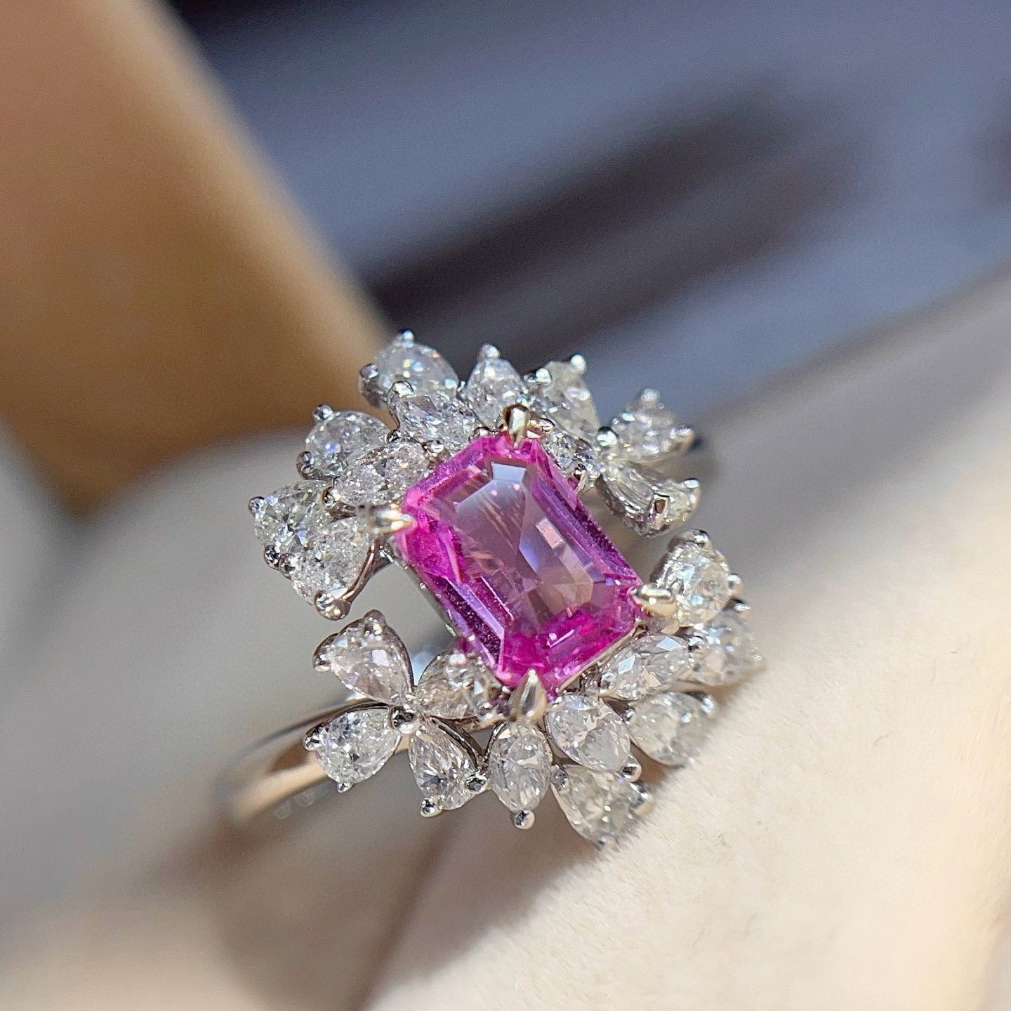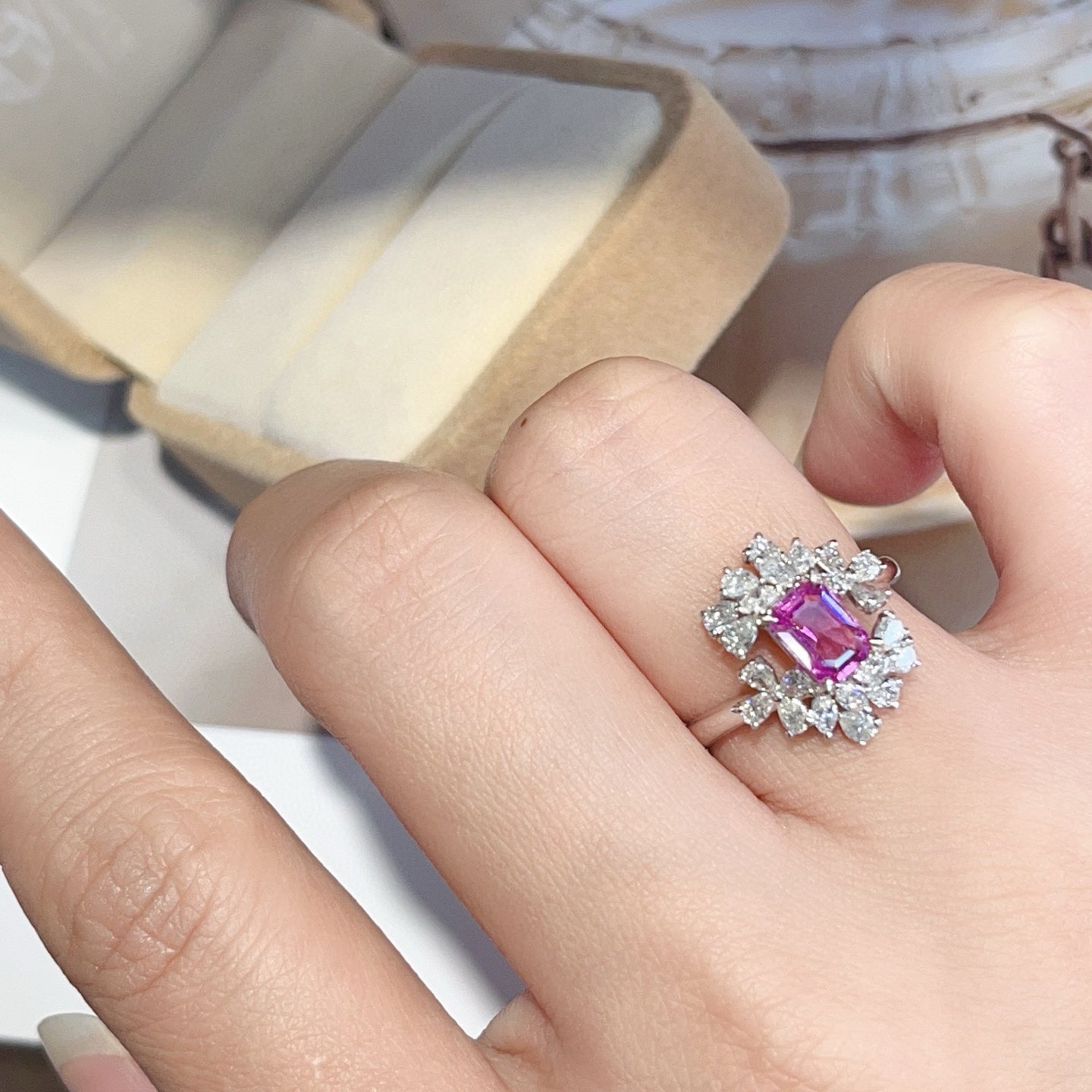 Ref:231019178 // Gold Content:14K Gold // Ring Size:7.25US // // Main Gemstone:Sapphire // Shape:Octagonal // Carat Weight:1ct // Color:Pinkish purple // Treatment:Natural // // Adjacent Gemstone 2 : Diamond // Number of stones:22 // Shape:Multiply // Clarity Grade:VS-SI // Color:H // Treatment:Natural //