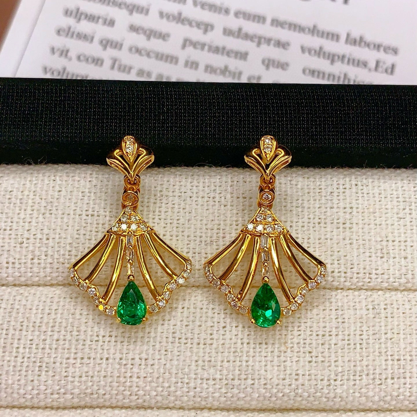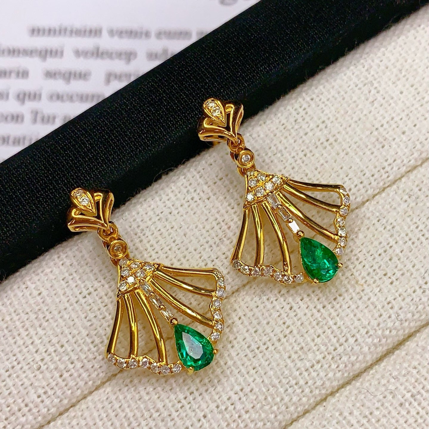 Ref:231021100 // Gold Content:14K Gold // Main Gemstone:Emerald // Shape:Pear // Carat Weight:1ct // Color:Vivid Green // Treatment:Natural // // Adjacent Gemstone 2 : Diamond // Number of stones:54 // Shape:Multiply // Clarity Grade:VS-SI // Color:H // Treatment:Natural //
