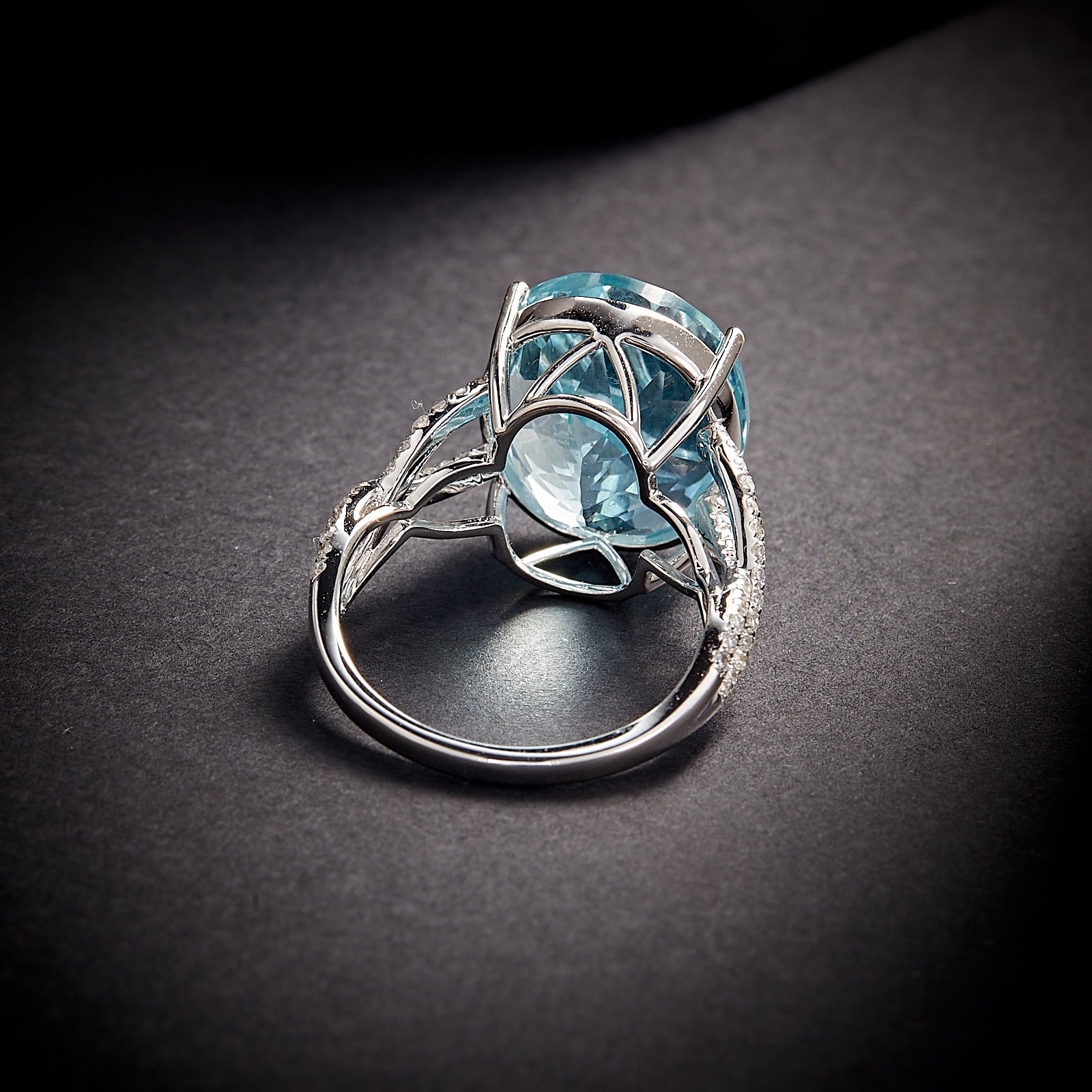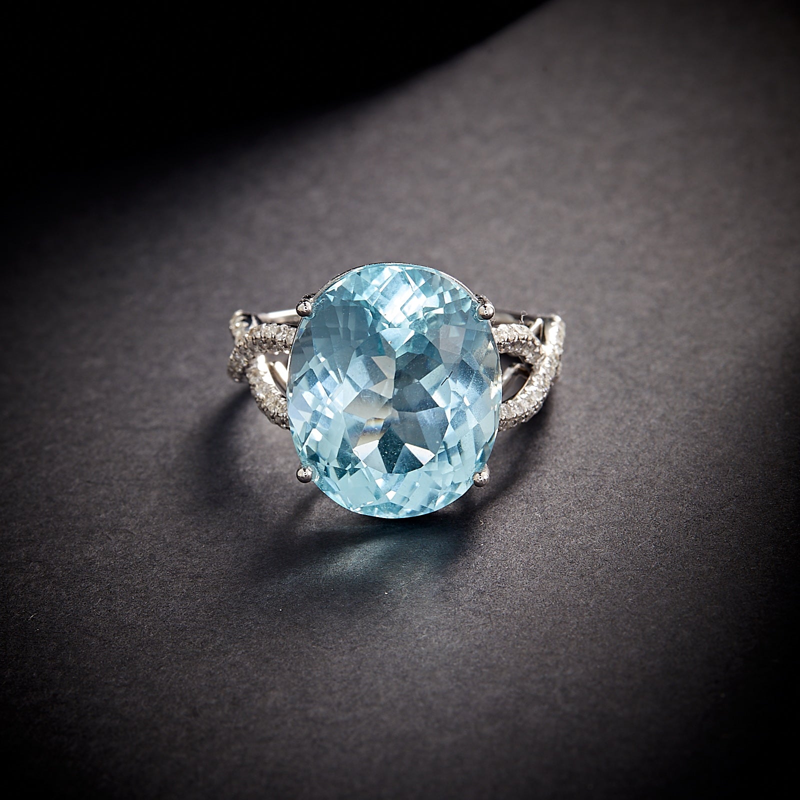 Ref:231027039 // Gold Content:14K Gold // Ring Size:7.25US // // Main Gemstone:Aquamarine // Shape:Oval // Carat Weight:9.5ct // Color:Blue // Treatment:Natural // // Adjacent Gemstone 2 : Diamond // Shape:Round // Carat Weight:0.50ct // Clarity Grade:VS-SI // Color:H // Treatment:Natural // Cut Grade:G //