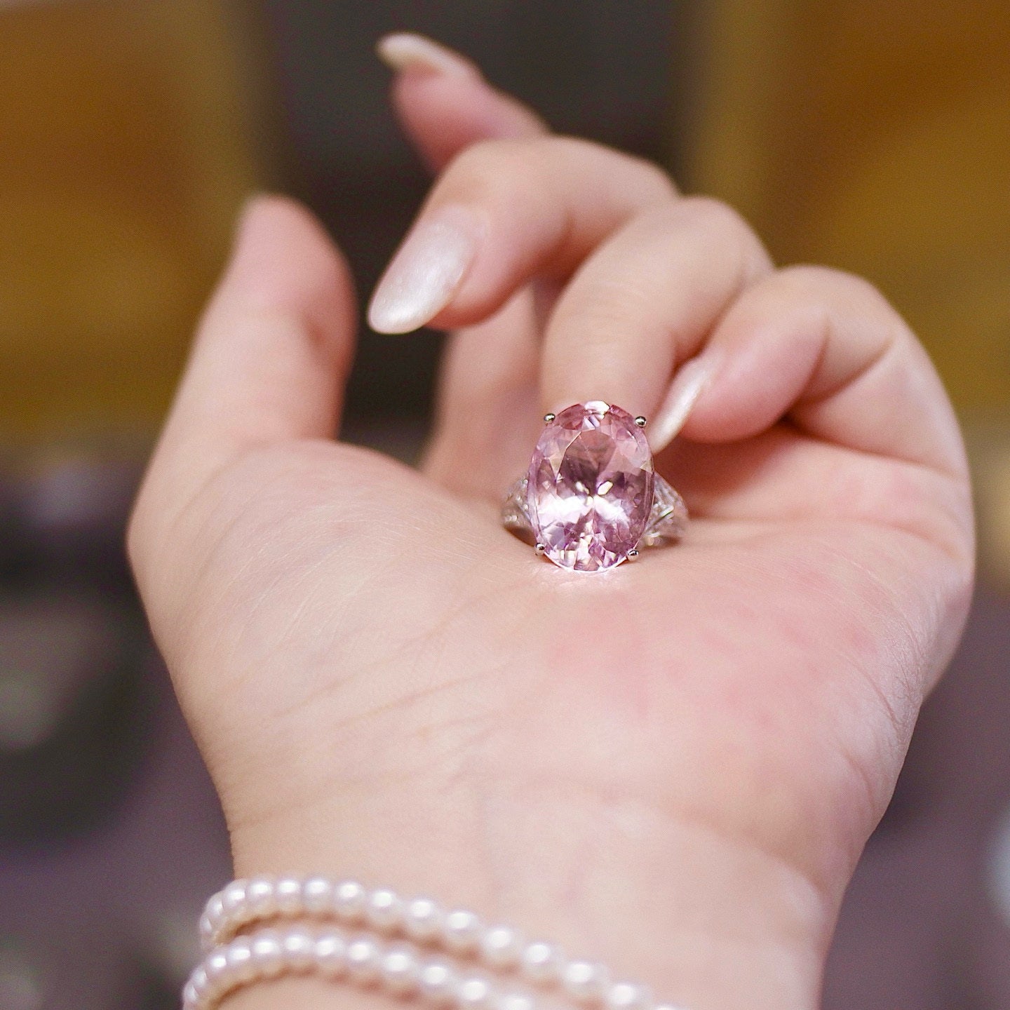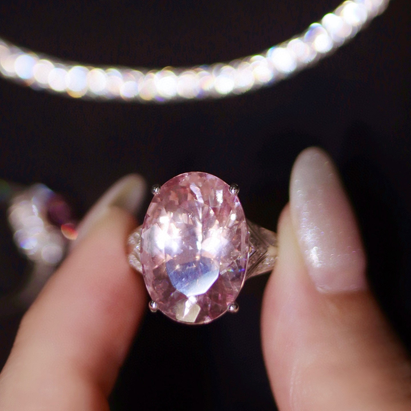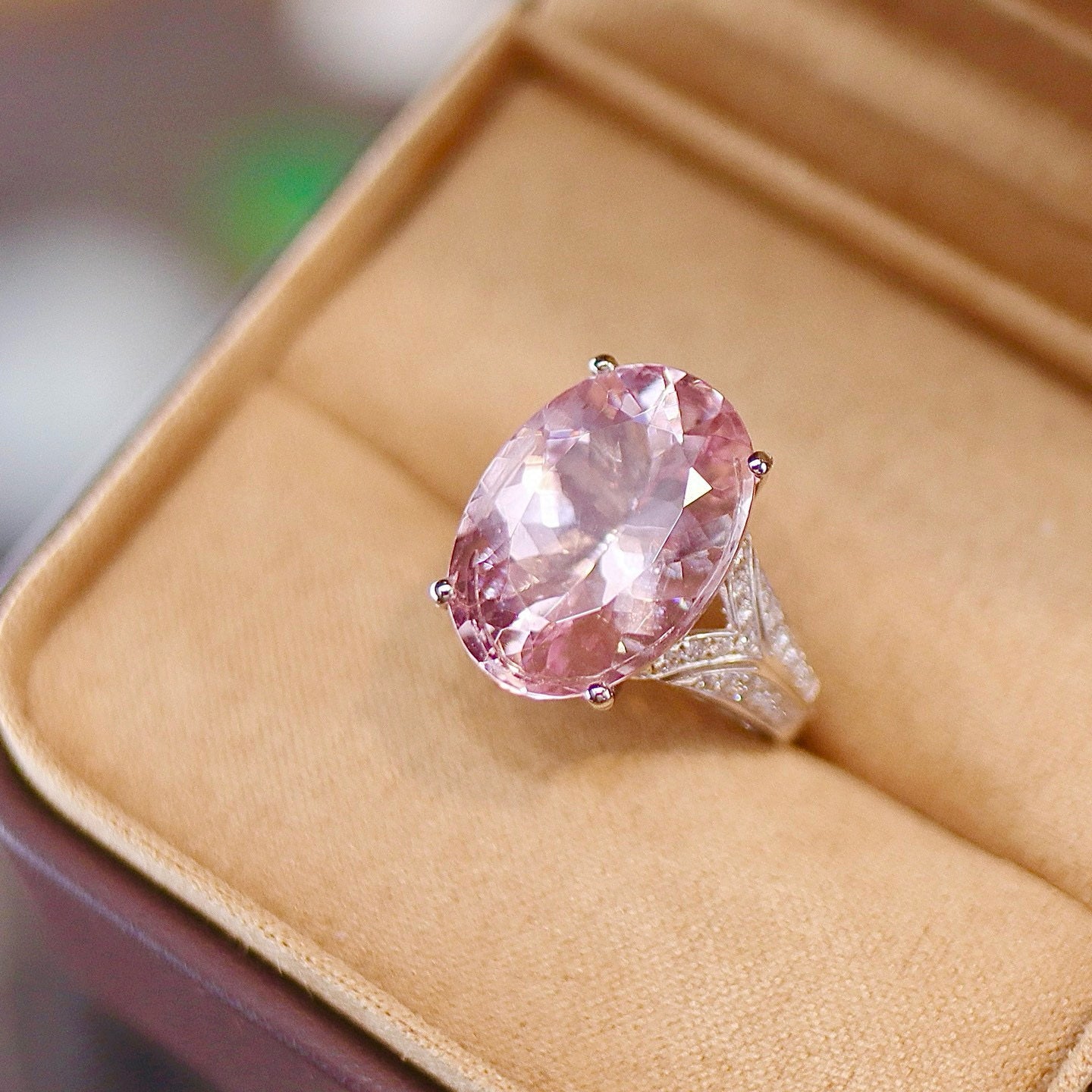 Ref:231023094 // Gold Content:14K Gold // Ring Size:7.25US // // Main Gemstone:Morganite // Shape:Oval // Carat Weight:10.69ct // Color:Pink // Treatment:Natural // // Adjacent Gemstone 2 : Lab Grown diamond // Shape:Round // Carat Weight:0.43ct // Clarity Grade:VS-SI // Color:H // Cut Grade:G //