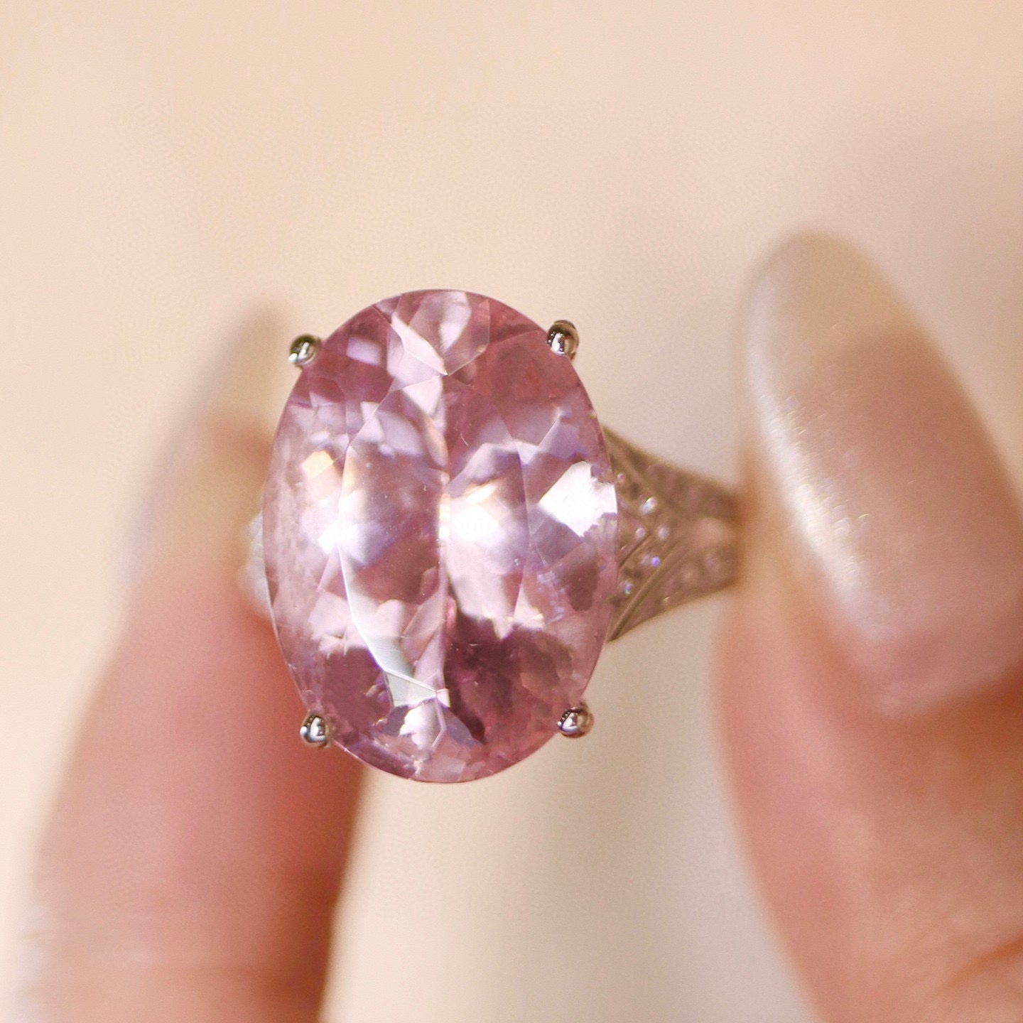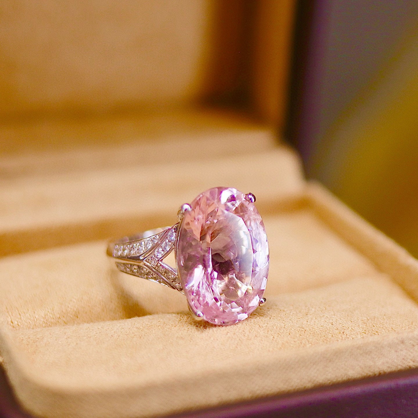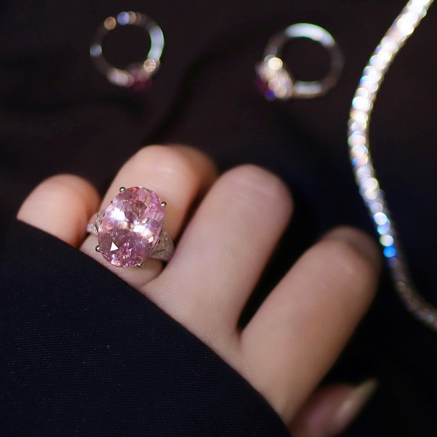 Ref:231023094 // Gold Content:14K Gold // Ring Size:7.25US // // Main Gemstone:Morganite // Shape:Oval // Carat Weight:10.69ct // Color:Pink // Treatment:Natural // // Adjacent Gemstone 2 : Lab Grown diamond // Shape:Round // Carat Weight:0.43ct // Clarity Grade:VS-SI // Color:H // Cut Grade:G //