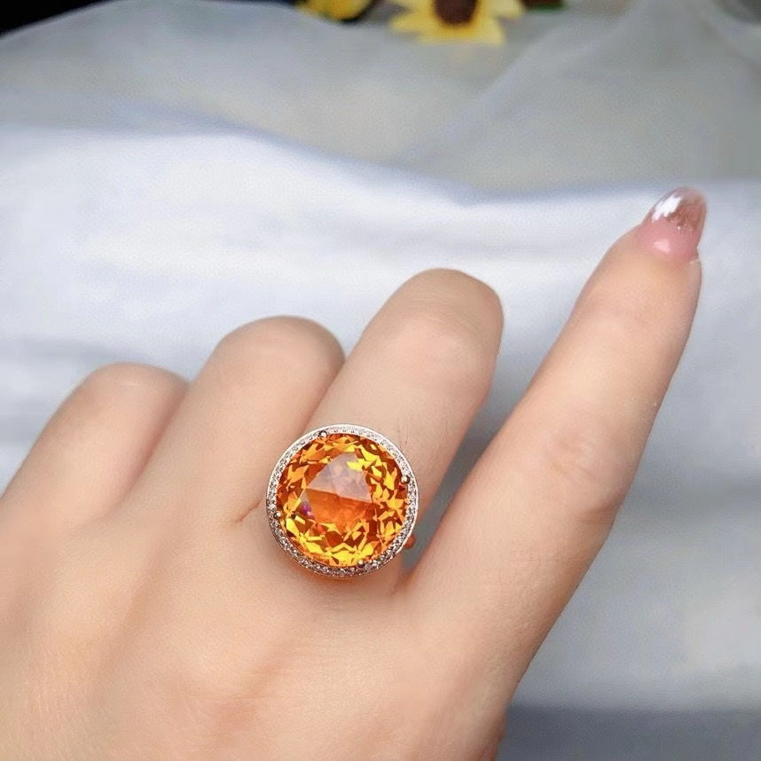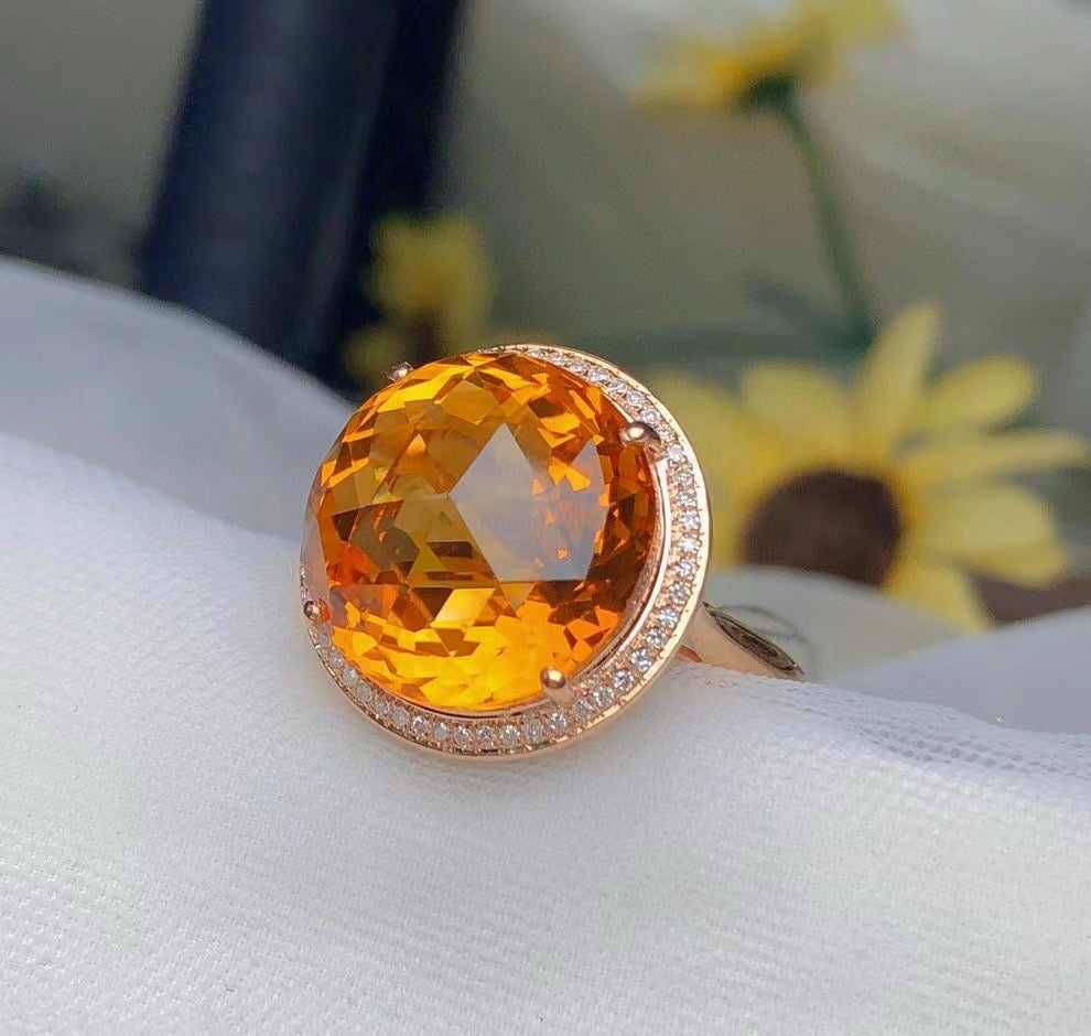 Ref:231019041 // Gold Content:14K Gold // Ring Size:7.25US // // Main Gemstone:Citrine // Shape:Round // Carat Weight:11ct // Color:Yellow // Treatment:Natural // Cut Grade:G // // Adjacent Gemstone 2 : Diamond // Number of stones:51 // Shape:Round // Clarity Grade:VS-SI // Color:H // Treatment:Natural // Cut Grade:G //