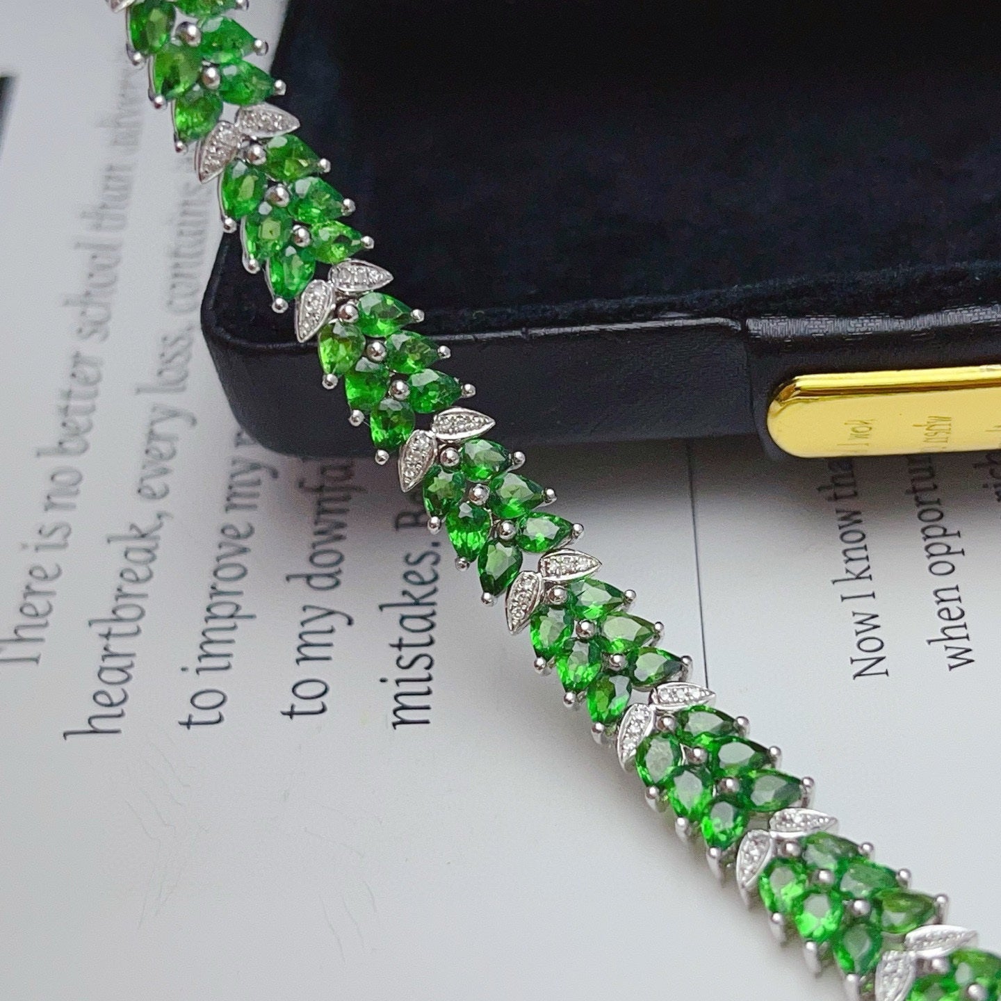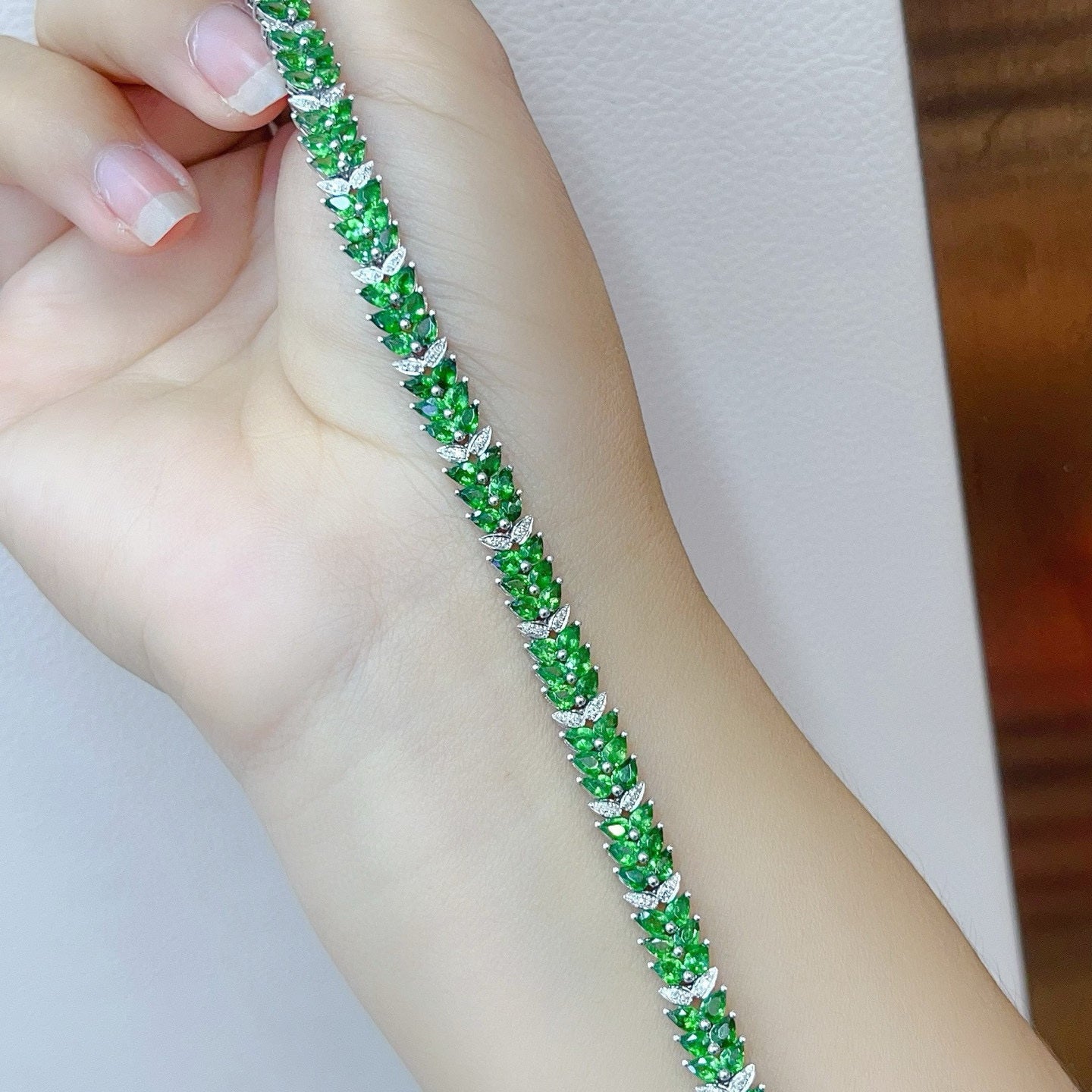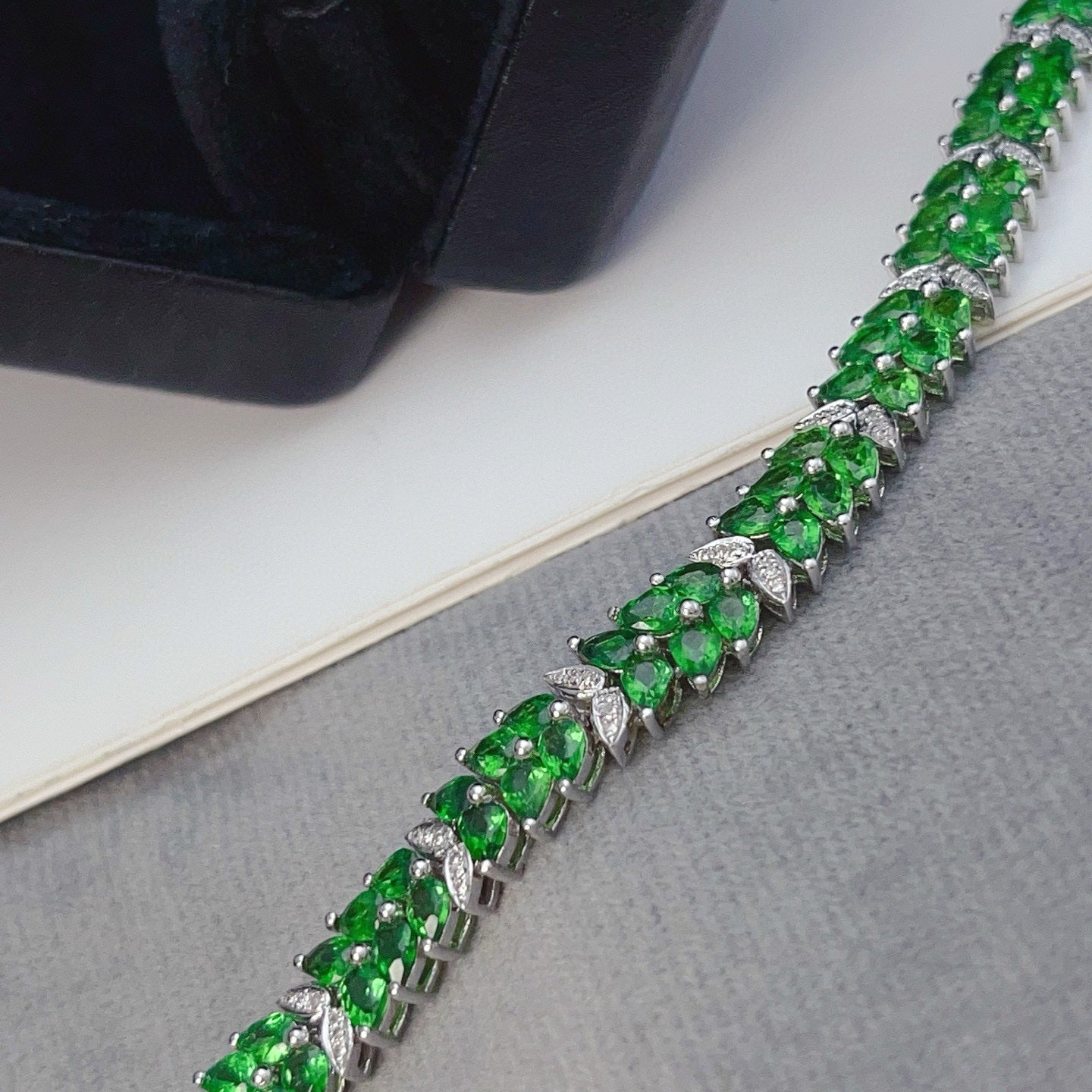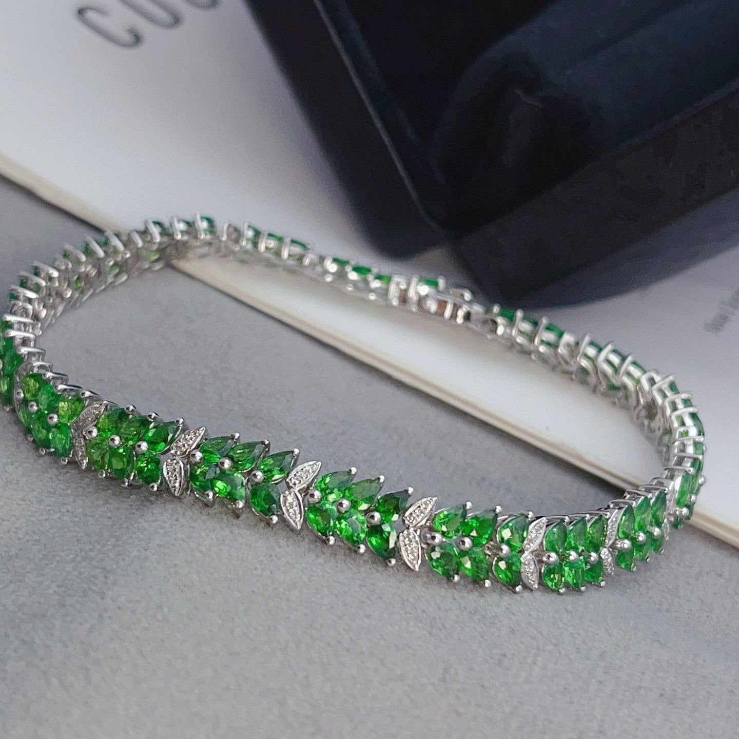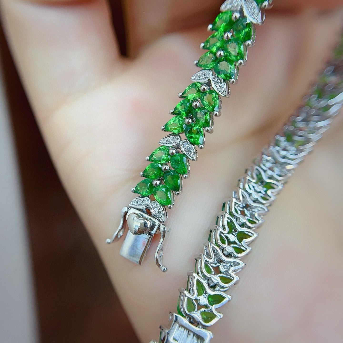 14K GOLD 12.35 CT VIVID GREEN NATURAL TSAVORITE & DIAMOND BRACELET