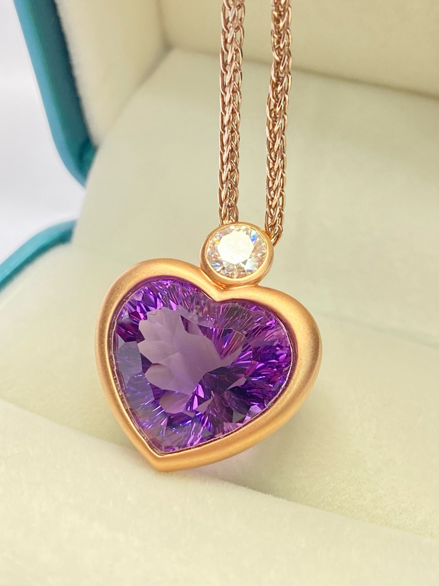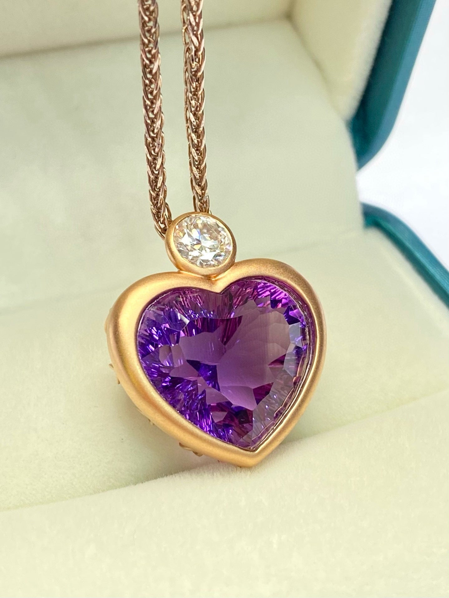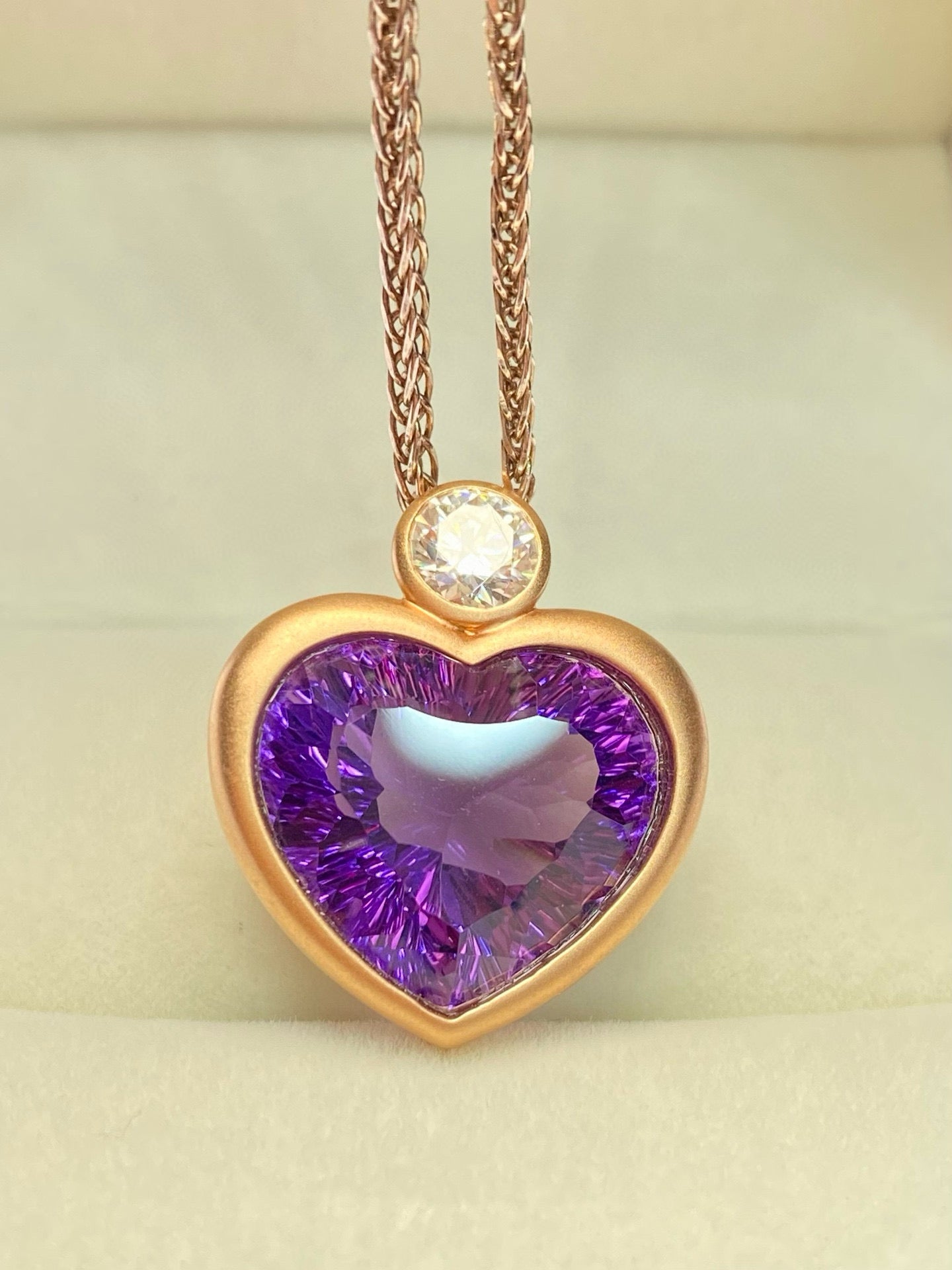 Ref:231025047 // Gold Content:14K Gold // Main Gemstone:Amethyst // Shape:Heart // Carat Weight:13.65ct // Color:Purple // Treatment:Natural // // Adjacent Gemstone 2 : Diamond // Number of stones:1 // Shape:Round // Clarity Grade:VS-SI // Color:H // Treatment:Natural // Cut Grade:G //