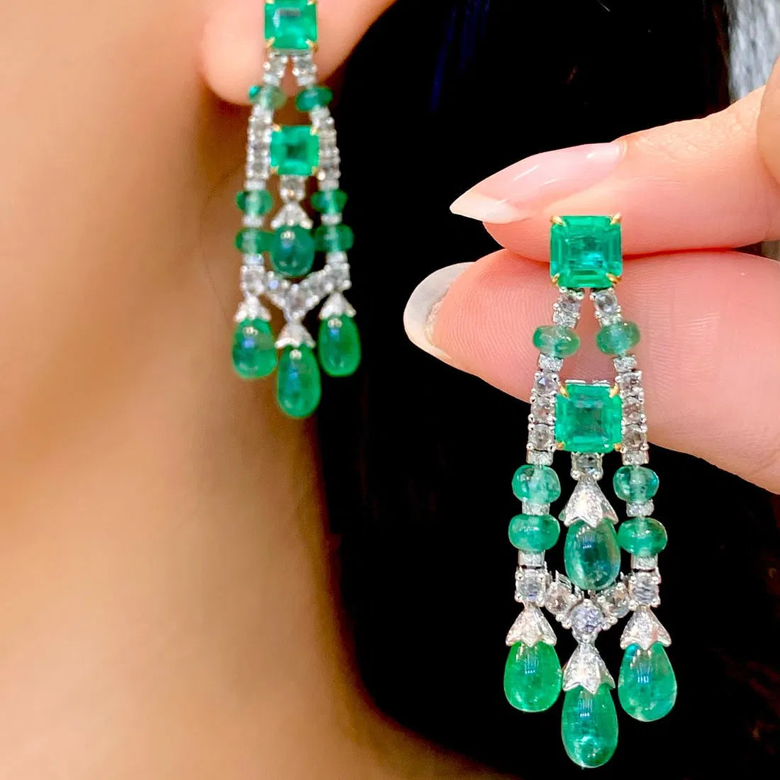14K GOLD 13.80 CT NATURAL EMERALD & DIAMOND EARRINGS