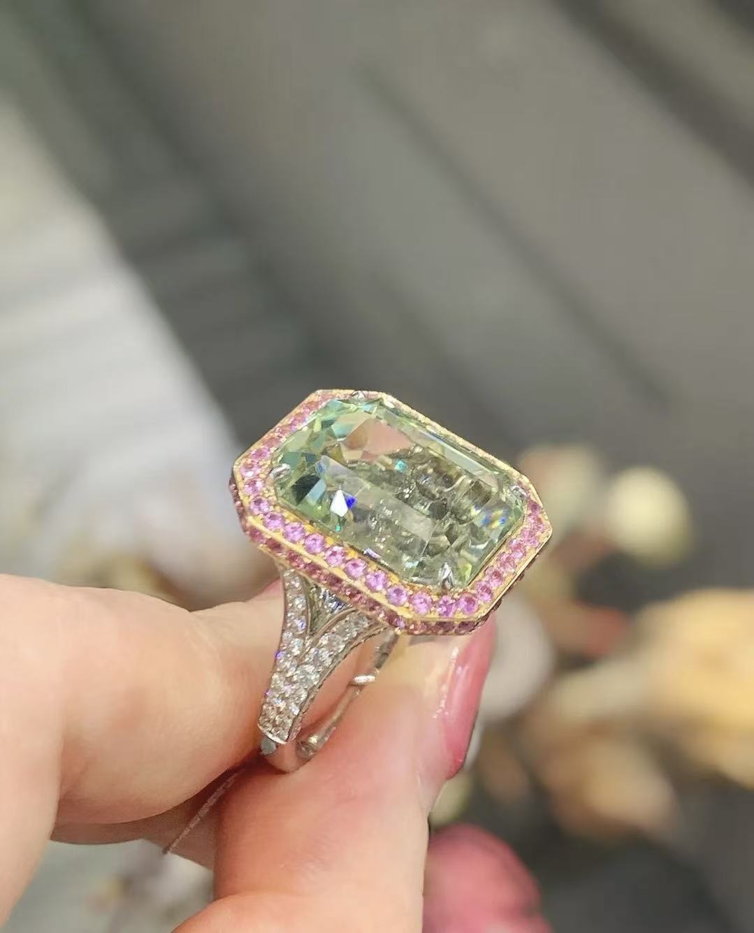 14K Gold 15.7 CT Natural Afghan Green Tourmaline & Pink Sapphire & Diamond Ring (HALF PAYMENT)