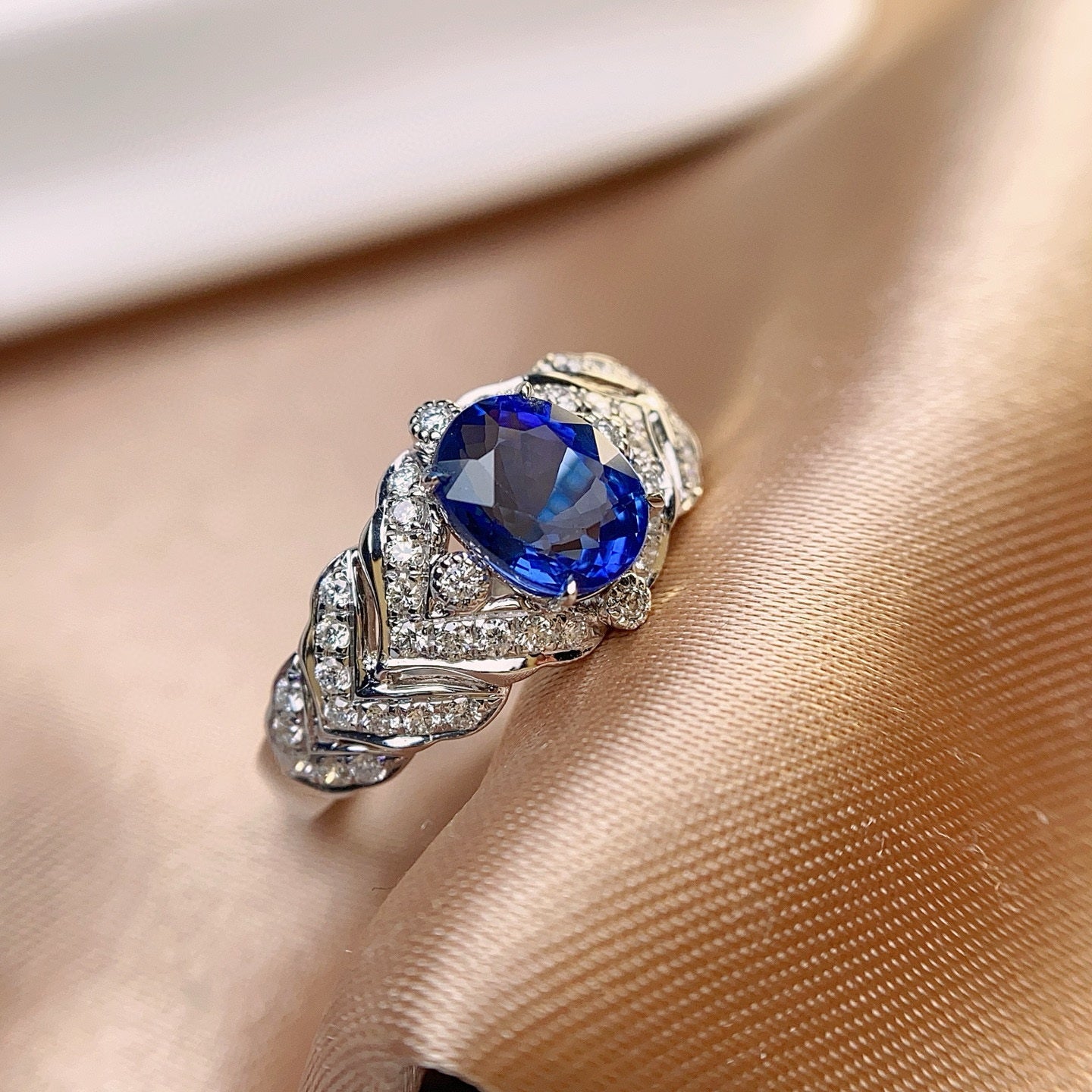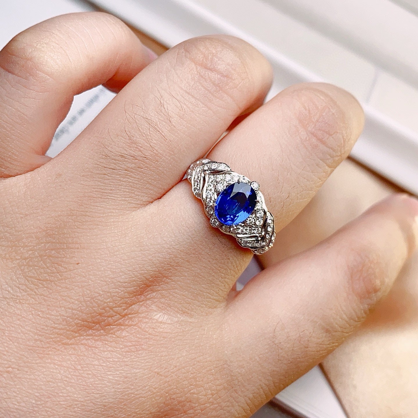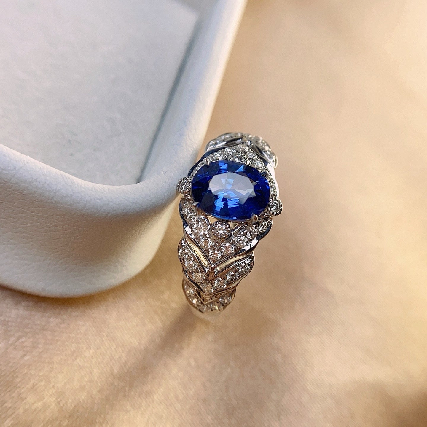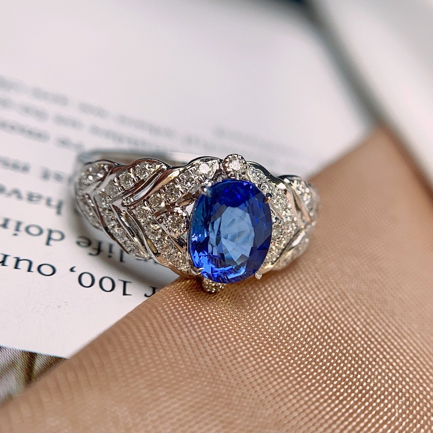 Ref:231023210 // Gold Content:14K Gold // Ring Size:7.25US // // Main Gemstone:Sapphire // Shape:Oval // Carat Weight:1.65ct // Color:Blue // Treatment:Natural // // Adjacent Gemstone 2 : Diamond // Shape:Round // Carat Weight:0.39ct // Clarity Grade:VS-SI // Color:H // Treatment:Natural // Cut Grade:G //