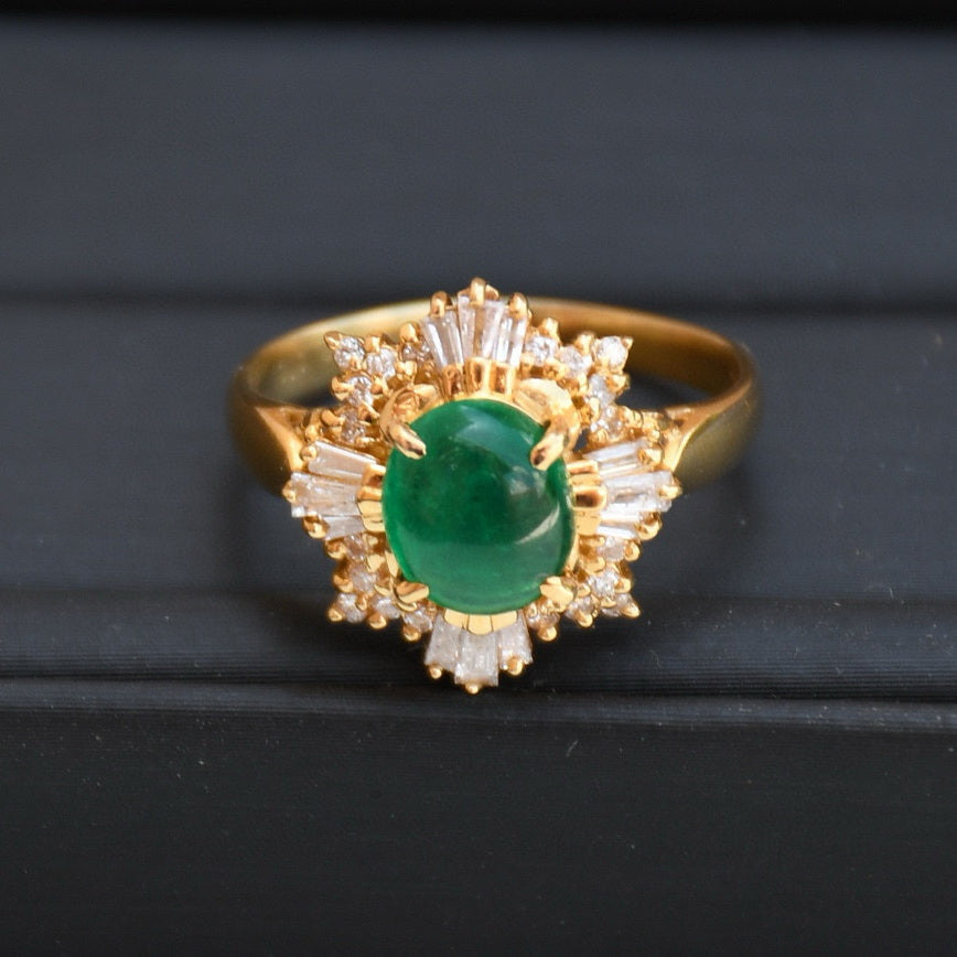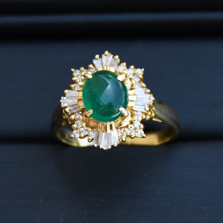 Ref:231023135 // Gold Content:14K Gold // Ring Size:7.25US // // Main Gemstone:Emerald // Shape:Oval // Carat Weight:1.7ct // Color:Green // Treatment:Natural // // Adjacent Gemstone 2 : Diamond // Shape:Multiply // Carat Weight:0.35ct // Clarity Grade:VS-SI // Color:H // Treatment:Natural //