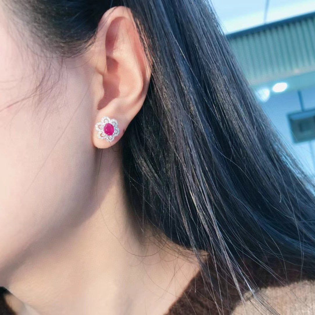 14K GOLD 2.09 CTW NATURAL RUBY & DIAMOND EARRINGS