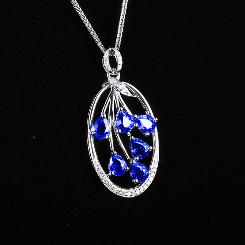 Ref:231021045 // Gold Content:14K Gold // Main Gemstone:Sapphire // Shape:Pear // Carat Weight:2ct // Color:Cornflower Blue // Treatment:Natural // // Adjacent Gemstone 2 : Diamond // Number of stones:32 // Shape:Round // Carat Weight:0.09ct // Clarity Grade:VS-SI // Color:H // Treatment:Natural // Cut Grade:G //