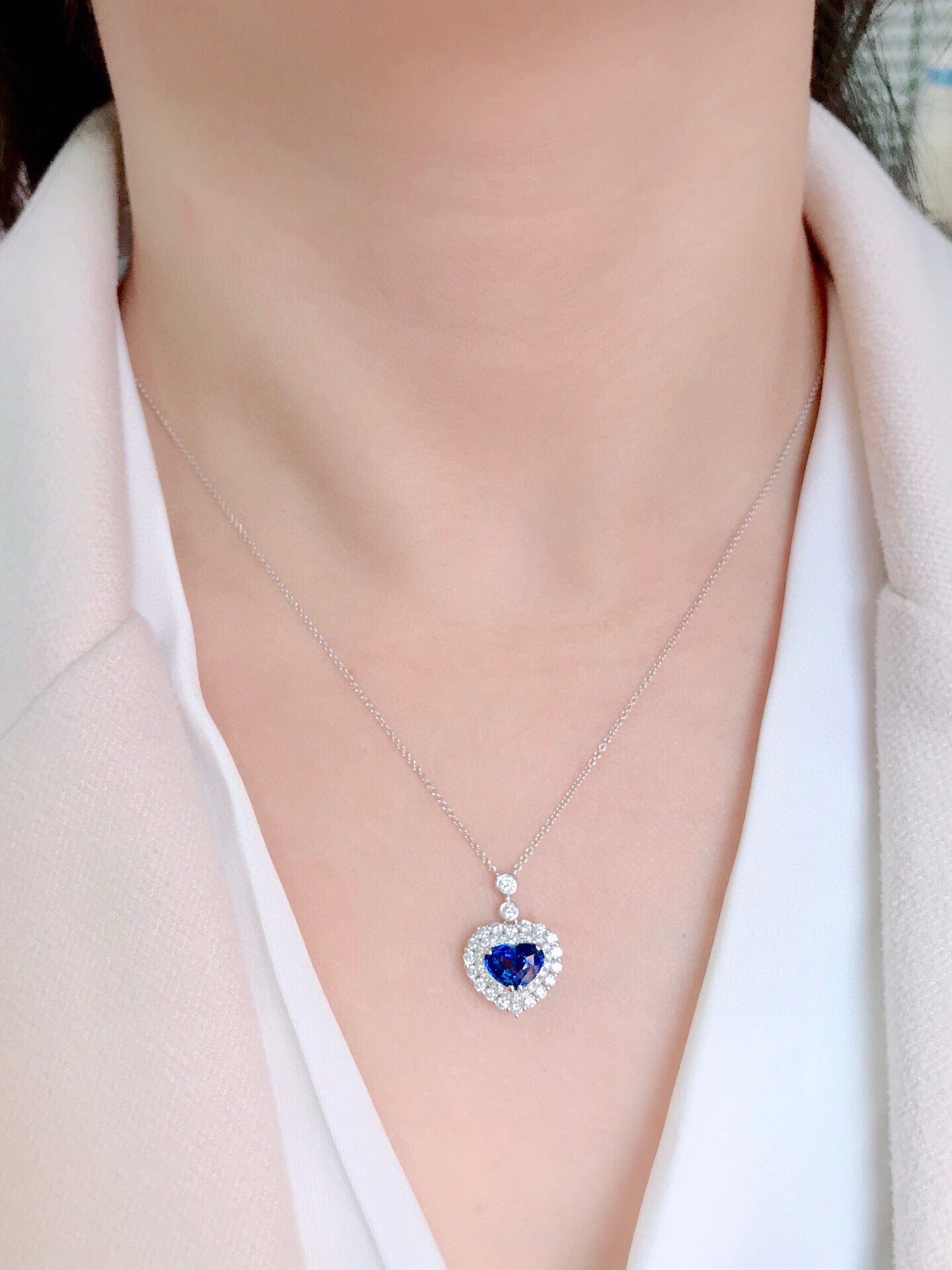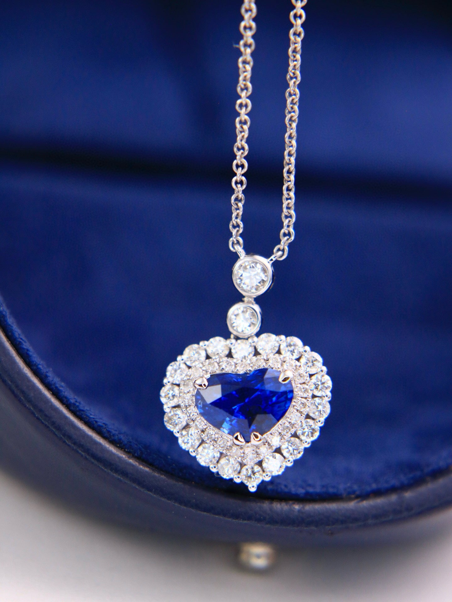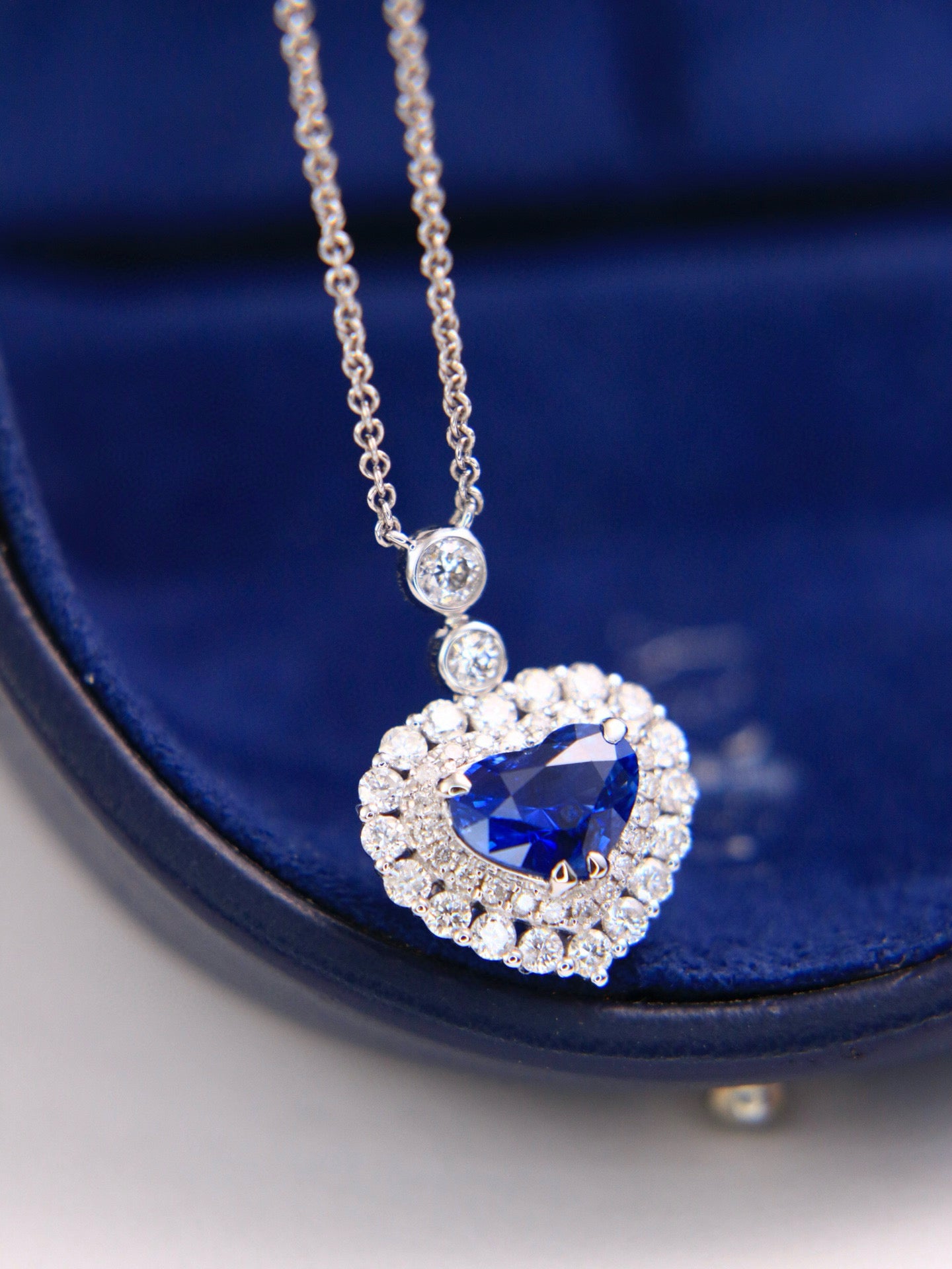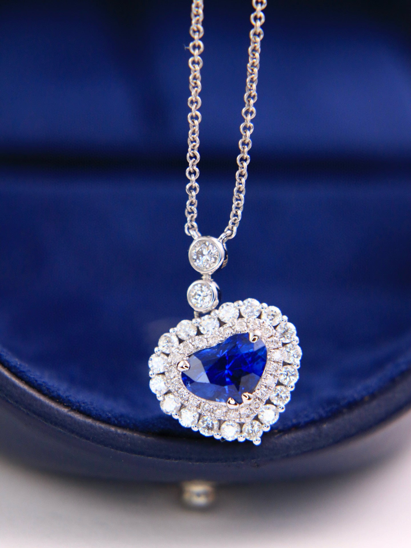 Ref:231019167 // Gold Content:14K Gold // Main Gemstone:Sapphire // Shape:Heart // Carat Weight:1.46ct // Color:Blue // Treatment:Natural // // Adjacent Gemstone 2 : Diamond // Shape:Round // Carat Weight:0.68ct // Clarity Grade:VS-SI // Color:H // Treatment:Natural // Cut Grade:G //