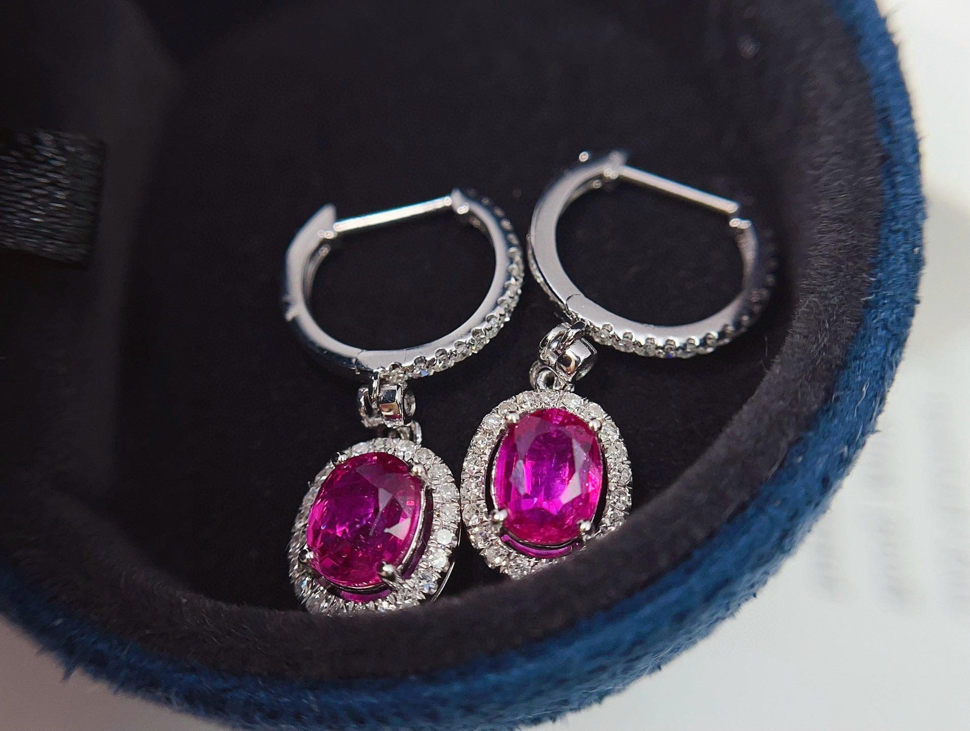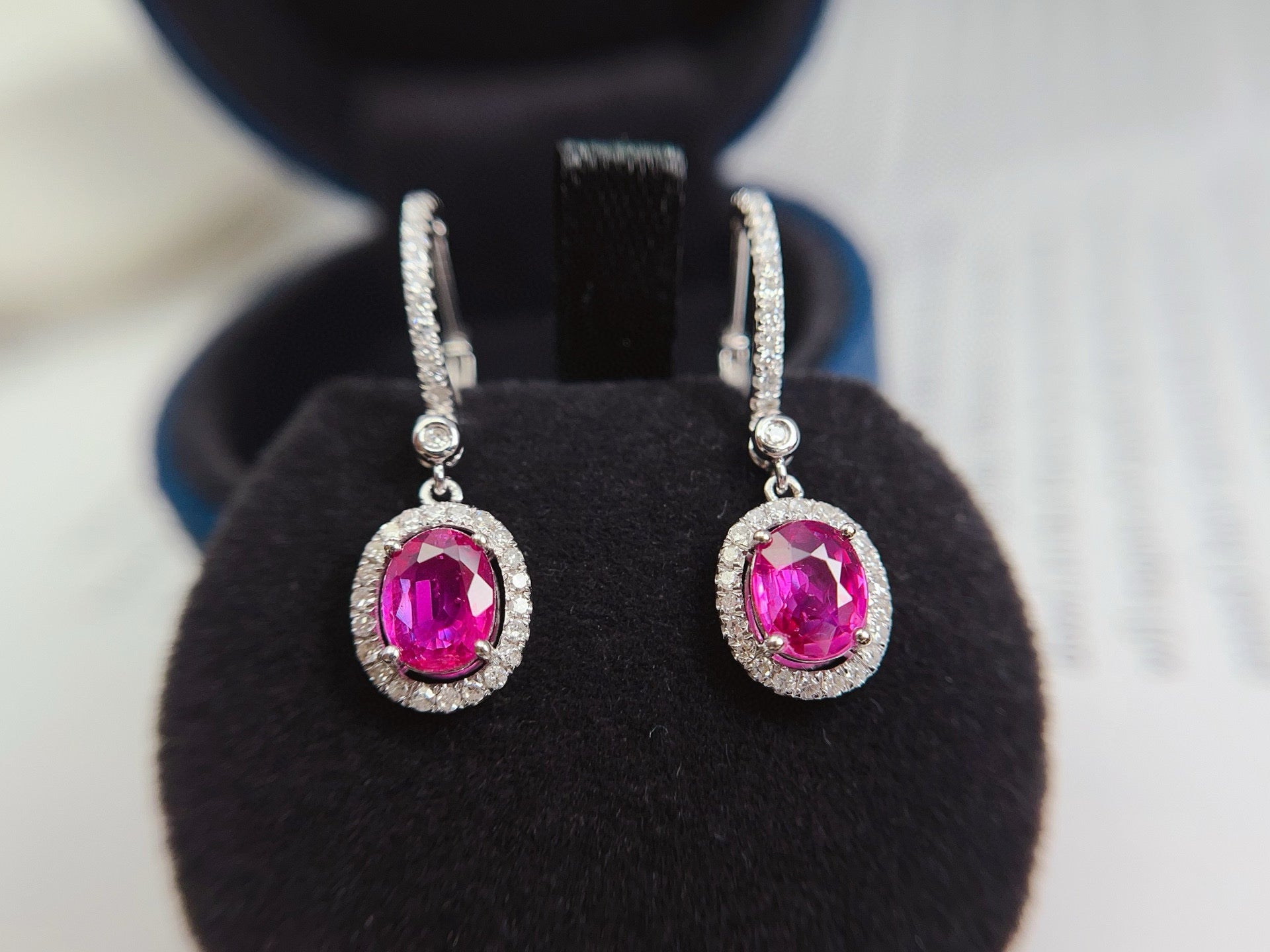 14K GOLD 2.15 CT NATURAL RUBY & DIAMOND EARRINGS