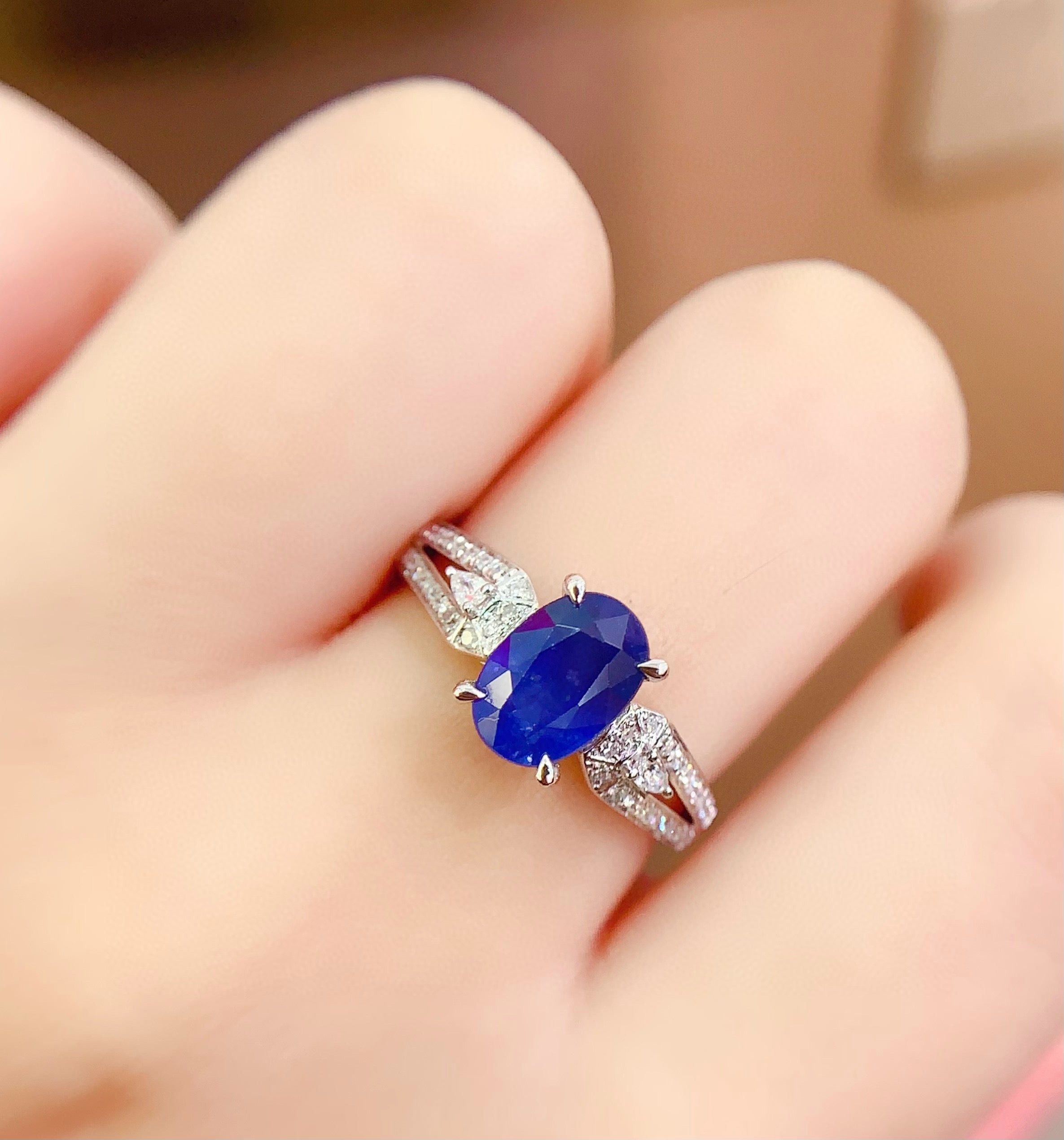 Ref:231025211 // Gold Content:14K Gold // Ring Size:7.25US // // Main Gemstone:Sapphire // Shape:Oval // Carat Weight:2.15ct // Color:Blue // Treatment:Natural // // Adjacent Gemstone 2 : Diamond // Number of stones:42 // Shape:Multiply // Clarity Grade:VS-SI // Color:H // Treatment:Natural //