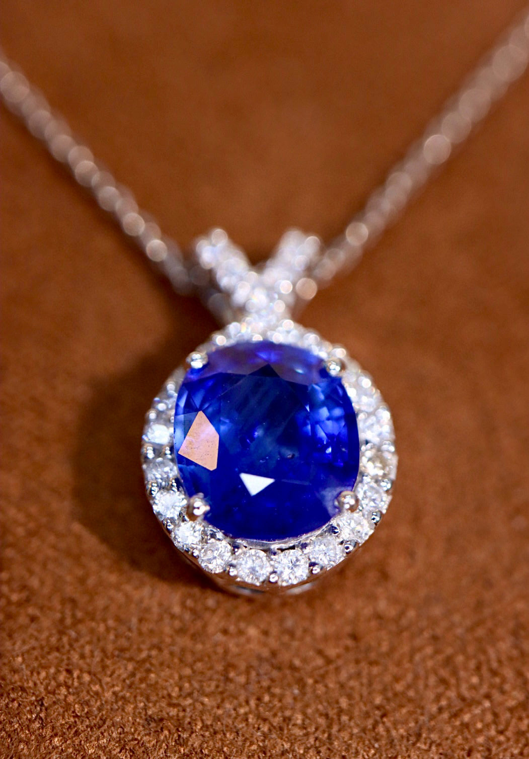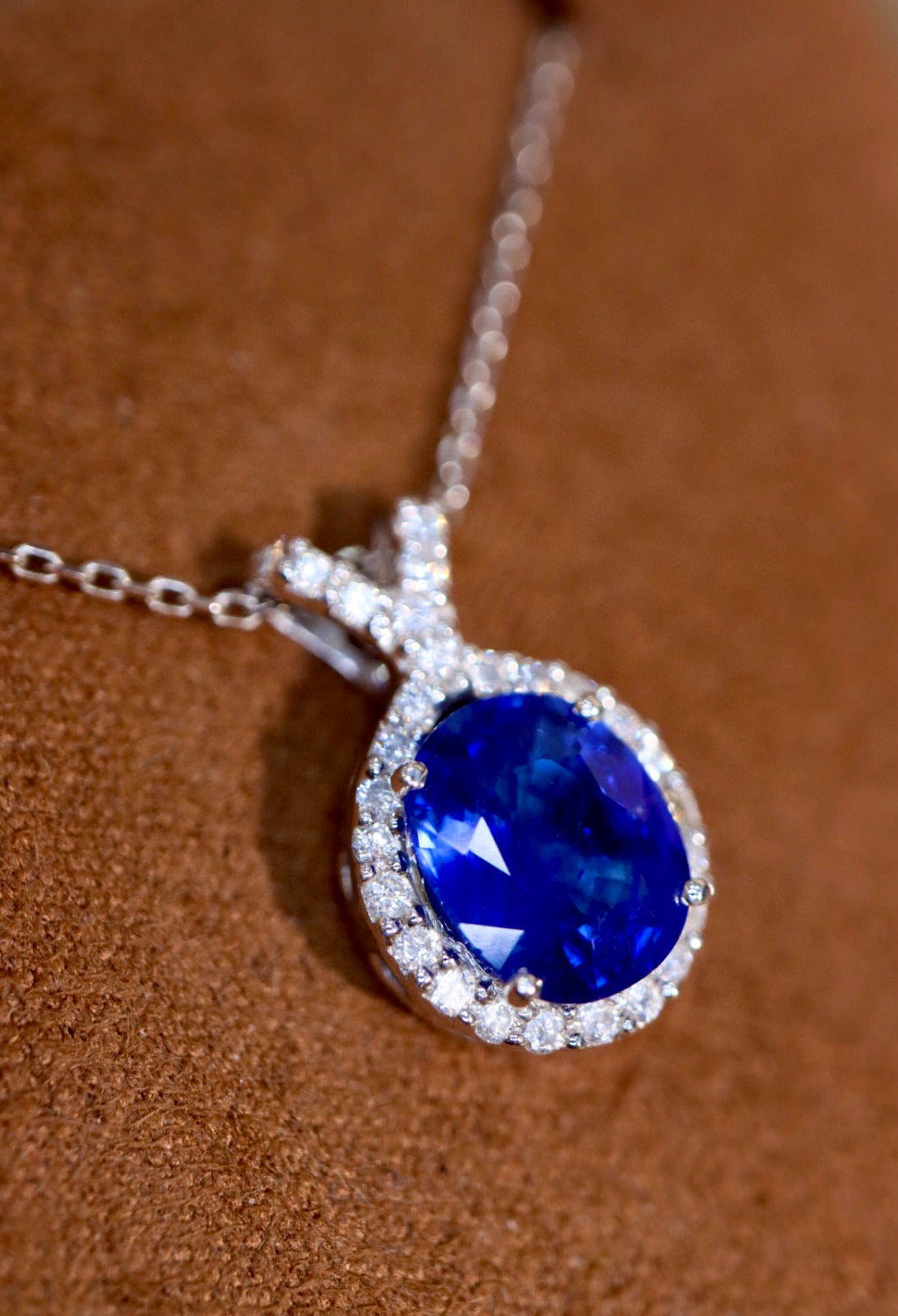 Ref:231019032 // Gold Content:14K Gold // Main Gemstone:Sapphire // Shape:Oval // Carat Weight:1.96ct // Color:Blue // Treatment:Natural // // Adjacent Gemstone 2 : Diamond // Shape:Round // Carat Weight:0.19ct // Clarity Grade:VS-SI // Color:H // Treatment:Natural // Cut Grade:G //