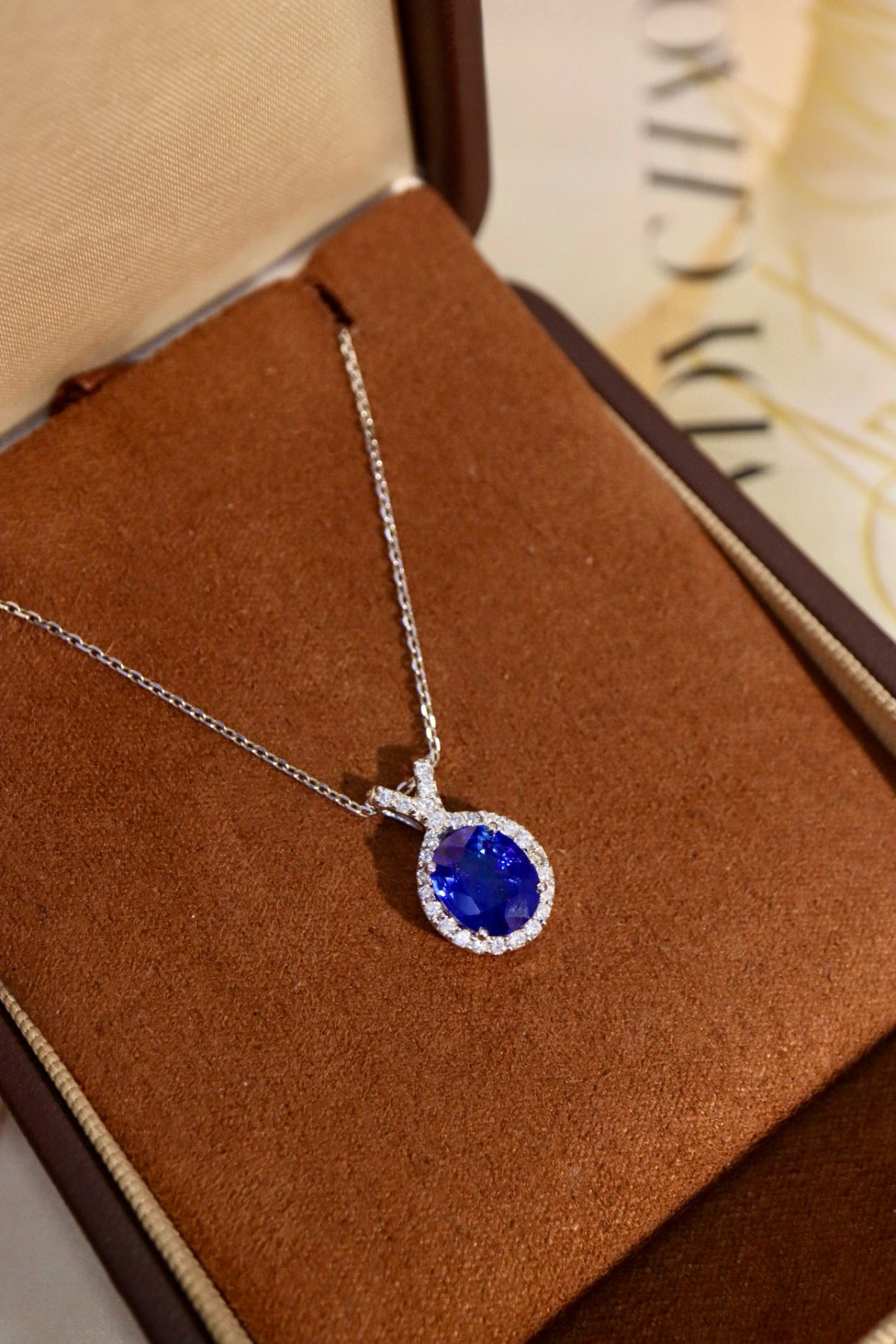 14K GOLD 2.15 CTW NATURAL SAPPHIRE & DIAMOND PENDANT( WITHOUT CHAIN )