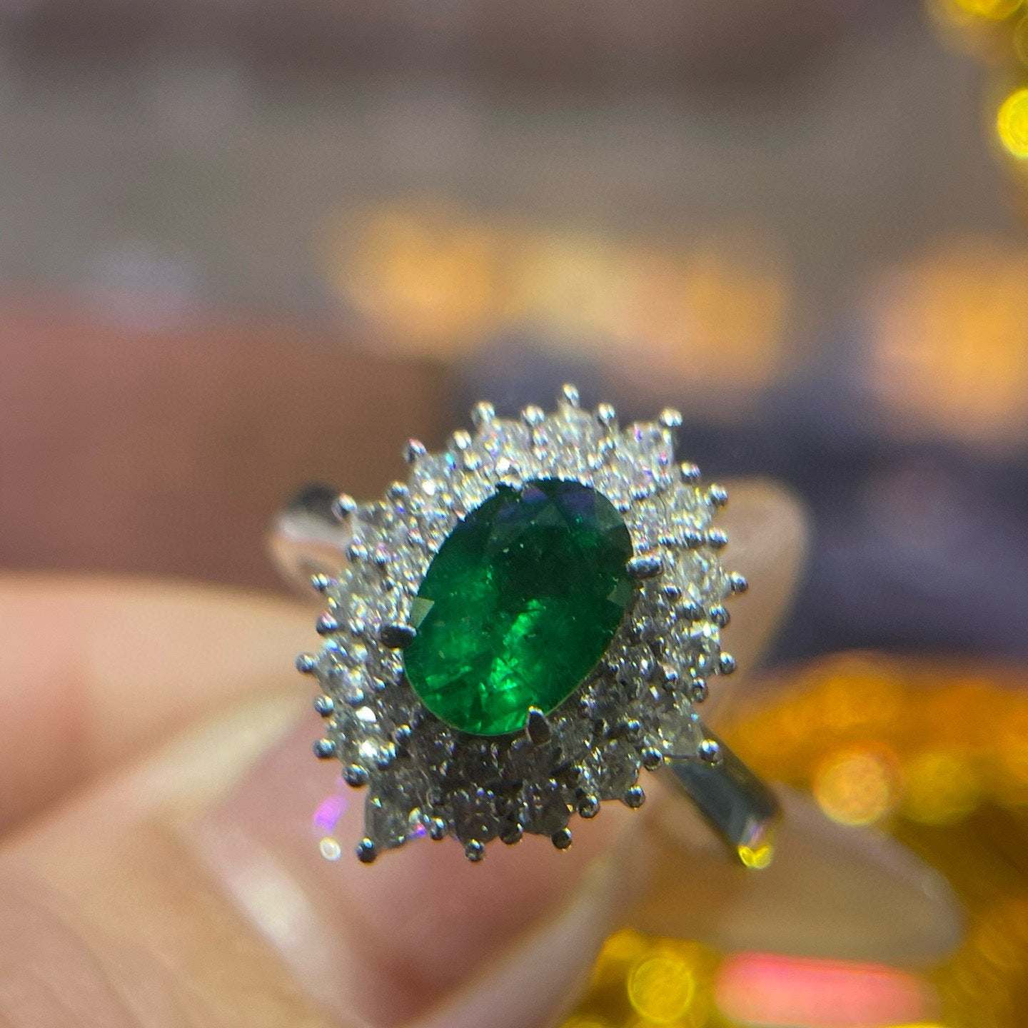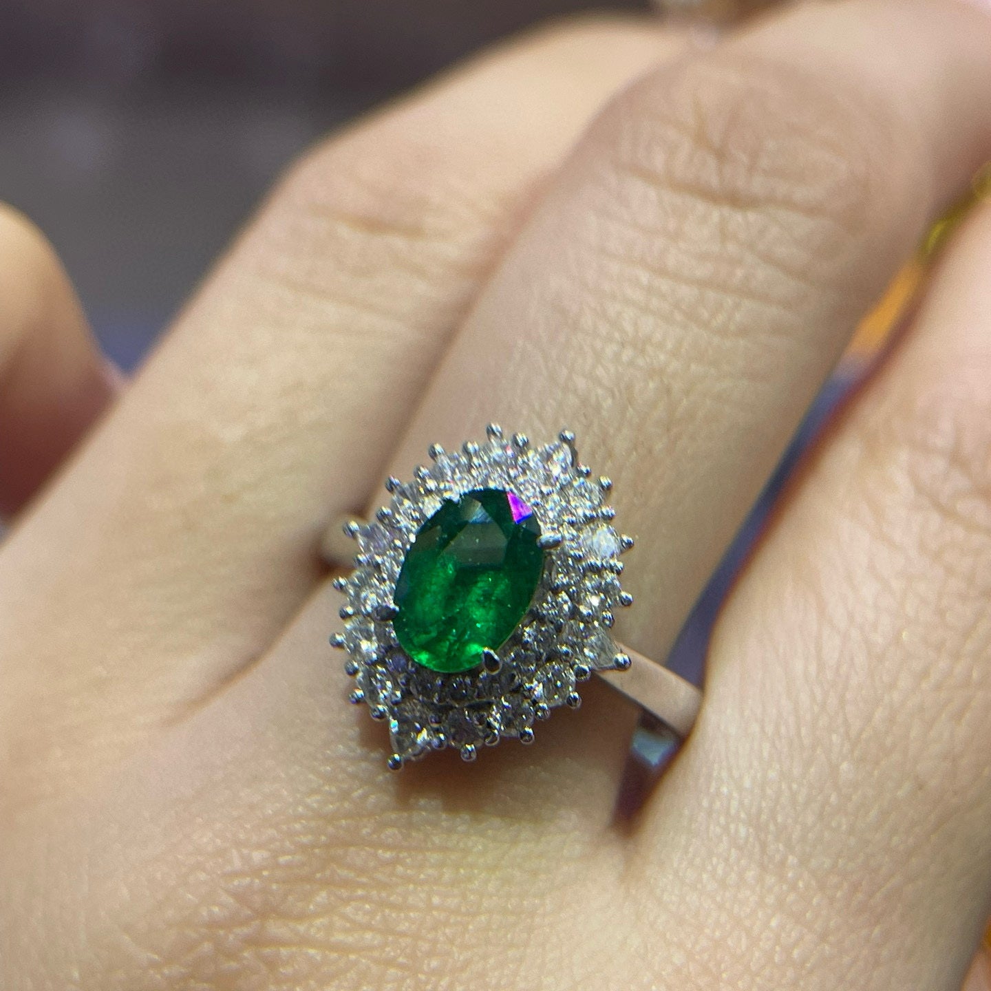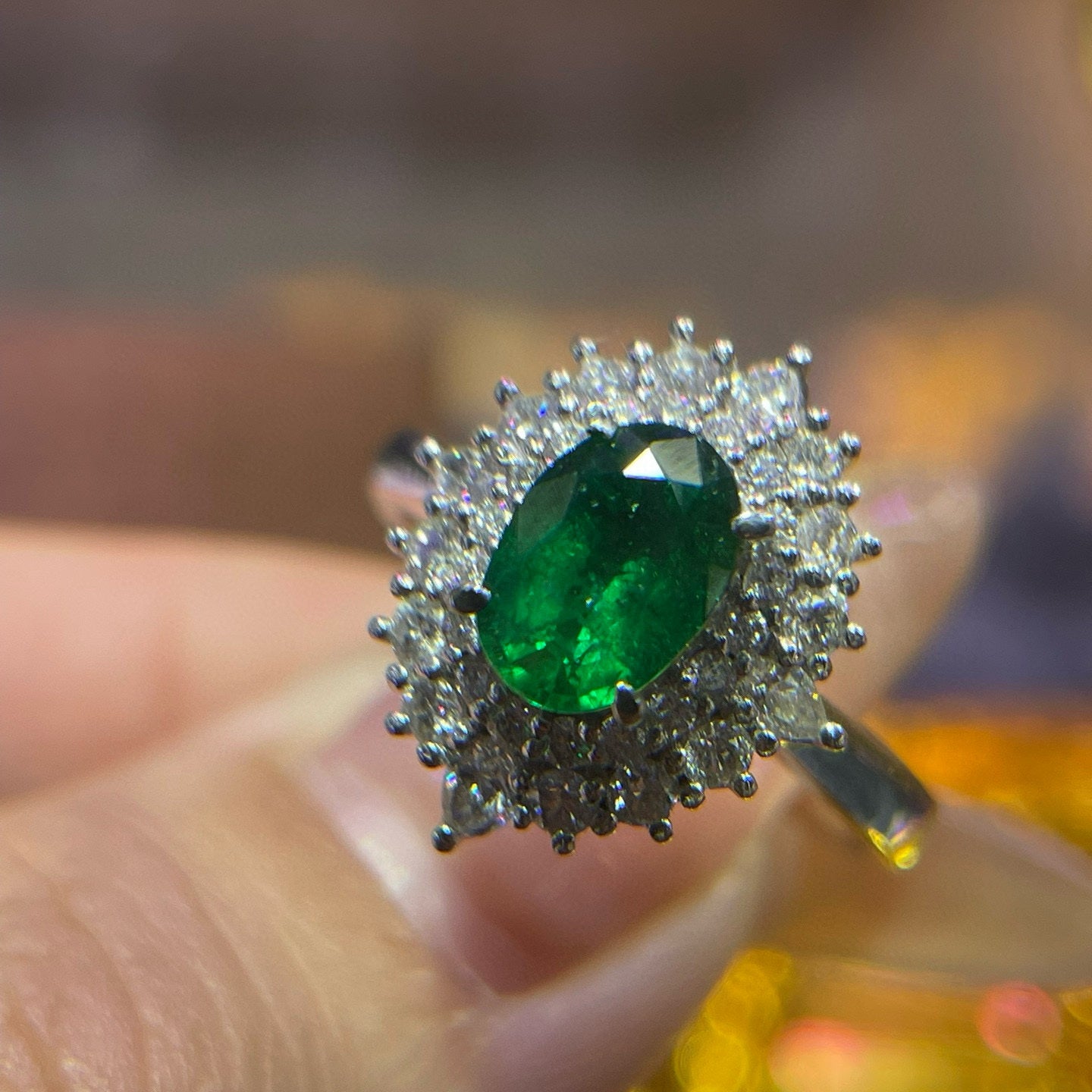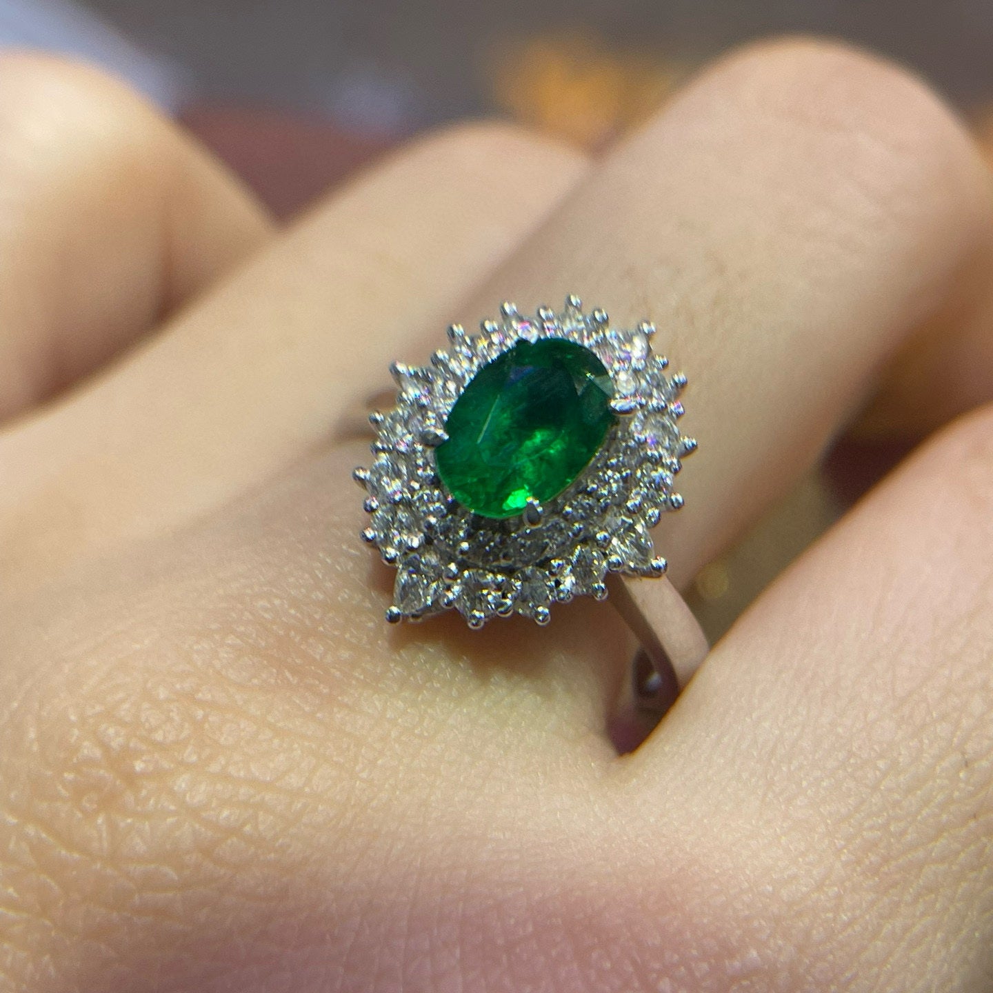 Ref:231023238 // Gold Content:14K Gold // Ring Size:7.25US // // Main Gemstone:Emerald // Shape:Oval // Carat Weight:1.34ct // Color:Green // Treatment:Natural // // Adjacent Gemstone 2 : Diamond // Shape:Round // Carat Weight:0.82ct // Clarity Grade:VS-SI // Color:H // Treatment:Natural // Cut Grade:G //