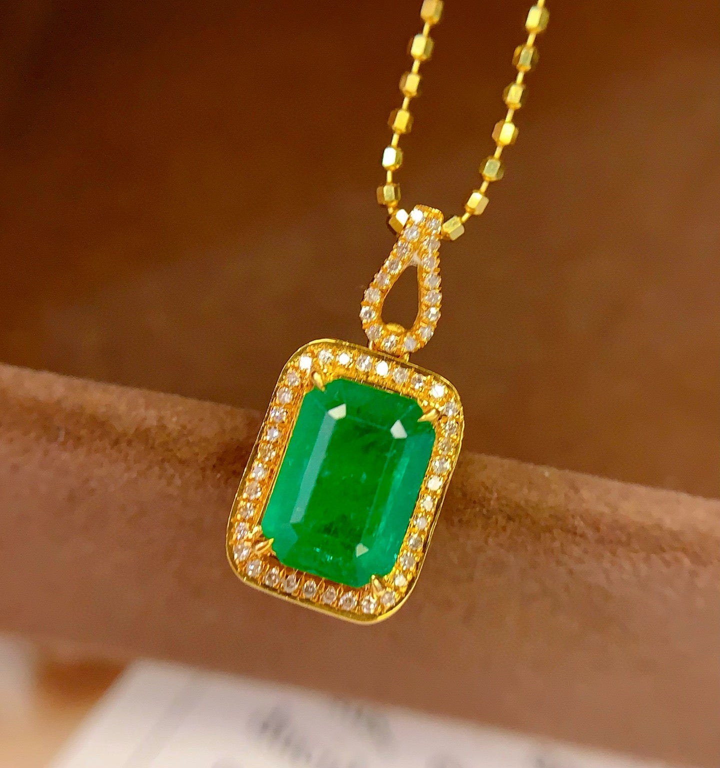 Ref:231025183 // Gold Content:14K Gold // Main Gemstone:Emerald // Shape:Octagonal // Carat Weight:2.2ct // Color:Vivid Green // Treatment:Natural // // Adjacent Gemstone 2 : Diamond // Number of stones:53 // Shape:Round // Clarity Grade:VS-SI // Color:H // Treatment:Natural // Cut Grade:G //