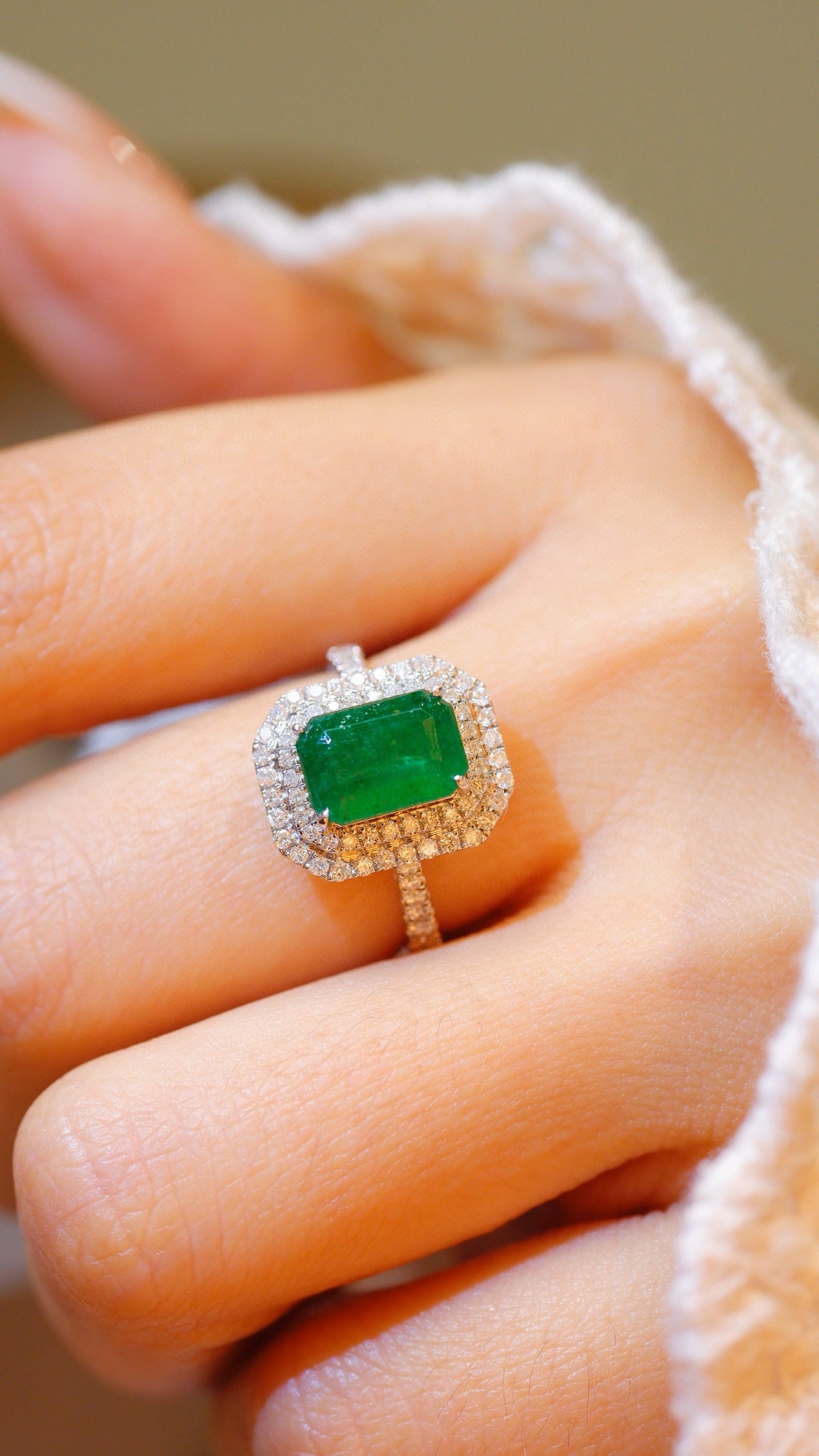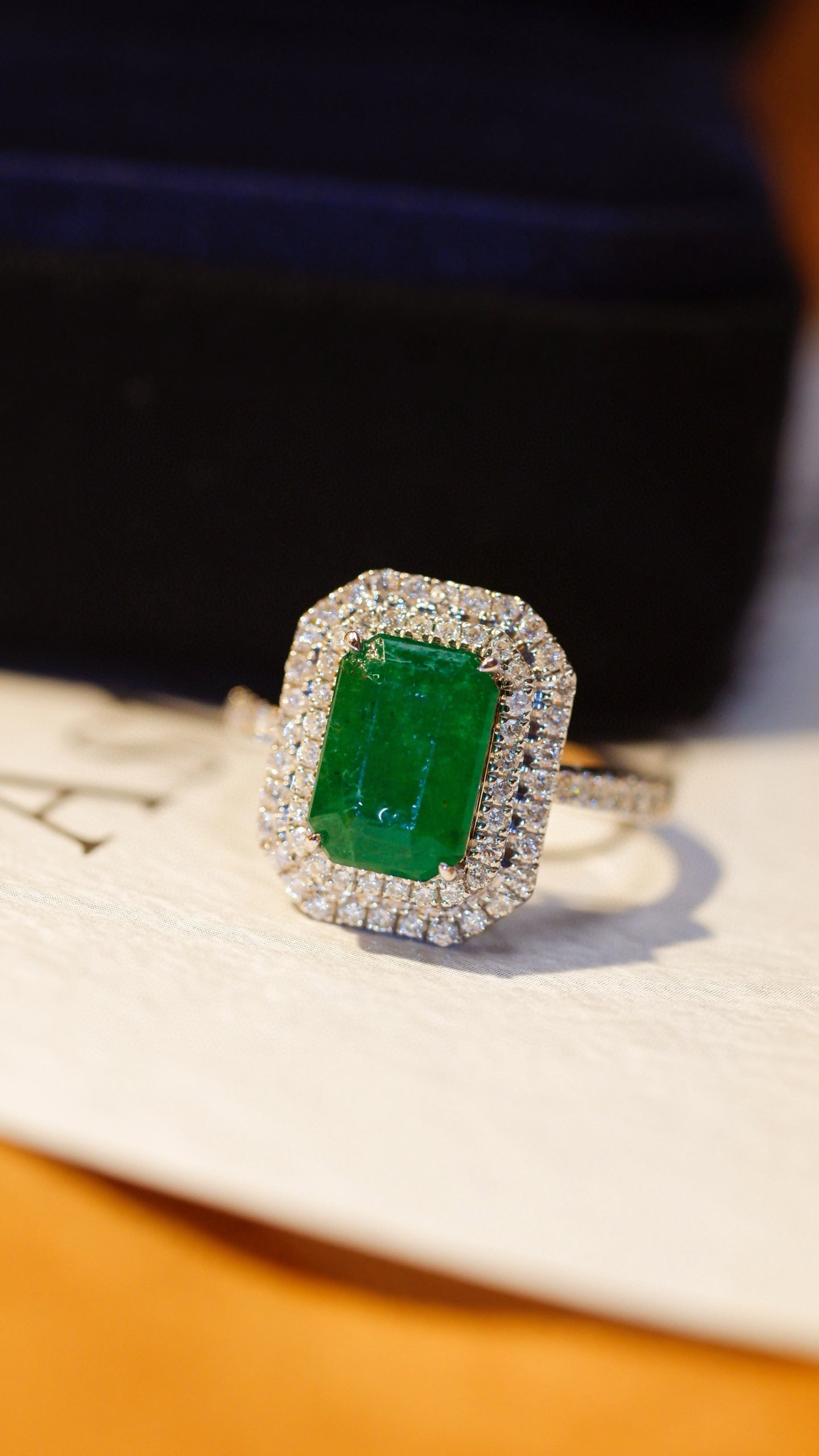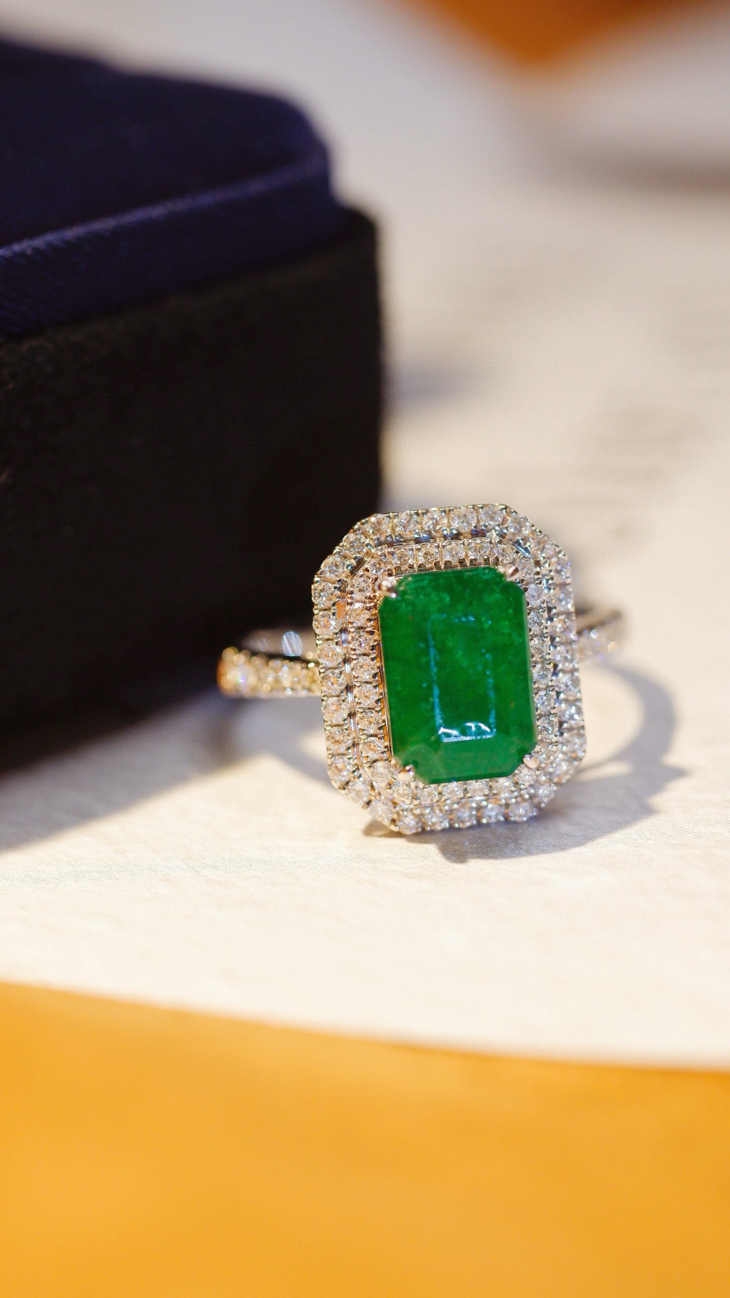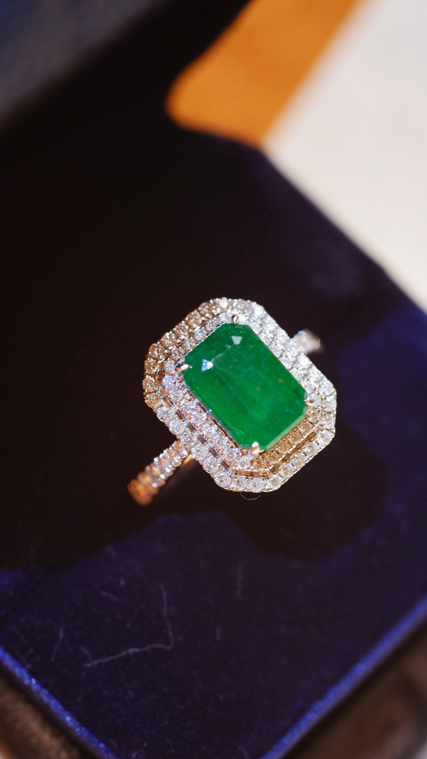 Ref:231025240 // Gold Content:14K Gold // Ring Size:7.25US // // Main Gemstone:Emerald // Shape:Octagonal // Carat Weight:1.83ct // Color:Vivid Green // Treatment:Natural // // Adjacent Gemstone 2 : Diamond // Shape:Round // Carat Weight:0.43ct // Clarity Grade:VS-SI // Color:H // Treatment:Natural // Cut Grade:G //