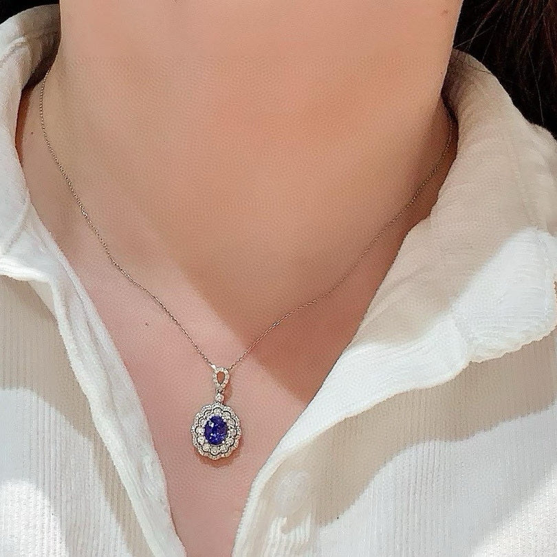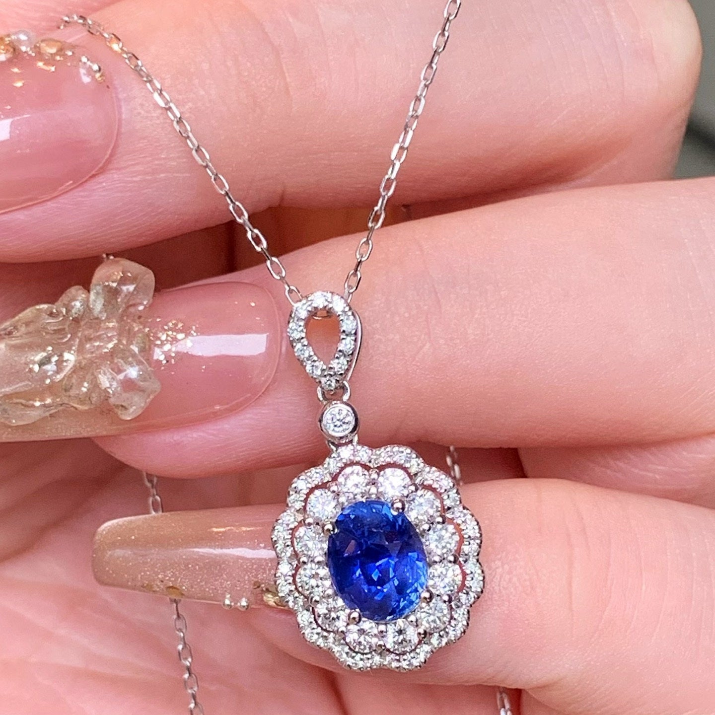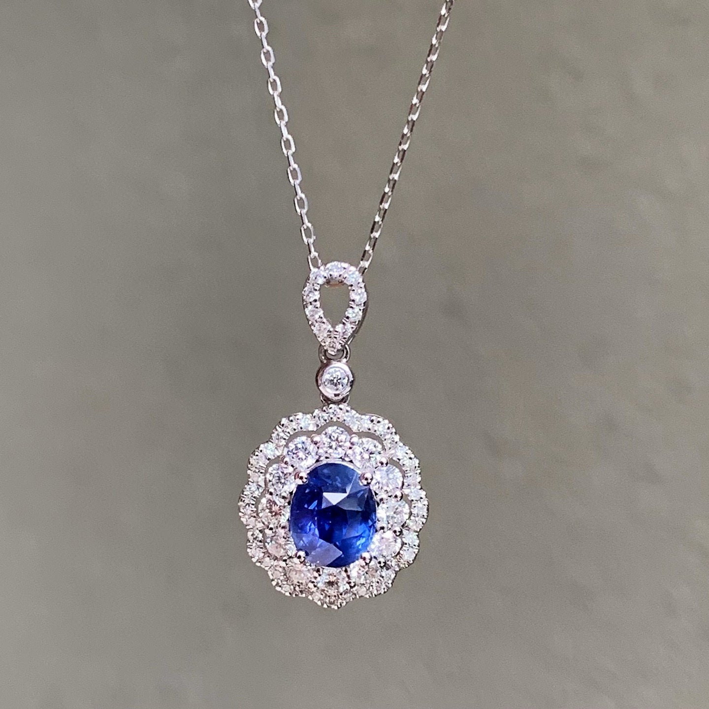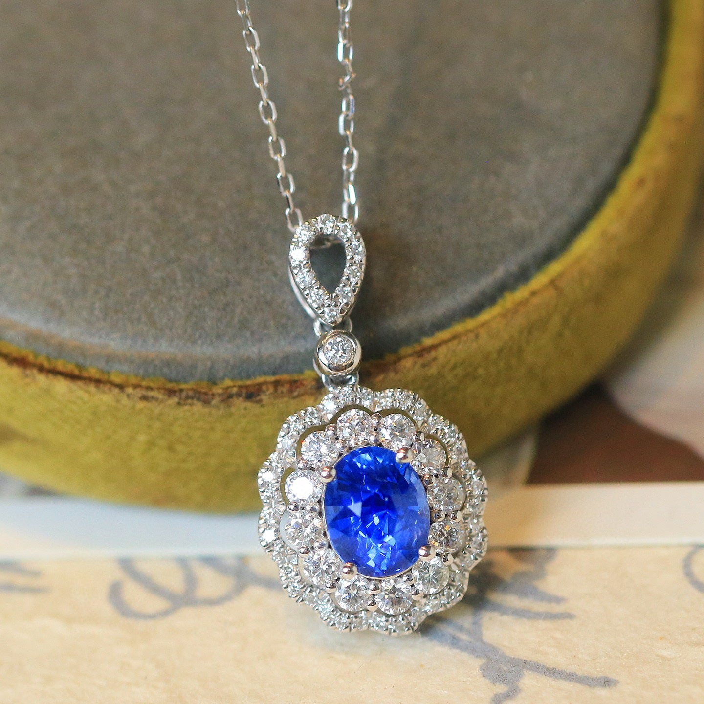 Ref:231021164 // Gold Content:14K Gold // Main Gemstone:Sapphire // Shape:Oval // Carat Weight:1.60ct // Color:Cornflower Blue // Treatment:Natural // // Adjacent Gemstone 2 : Diamond // Shape:Round // Carat Weight:0.69ct // Clarity Grade:VS-SI // Color:H // Treatment:Natural // Cut Grade:G //
