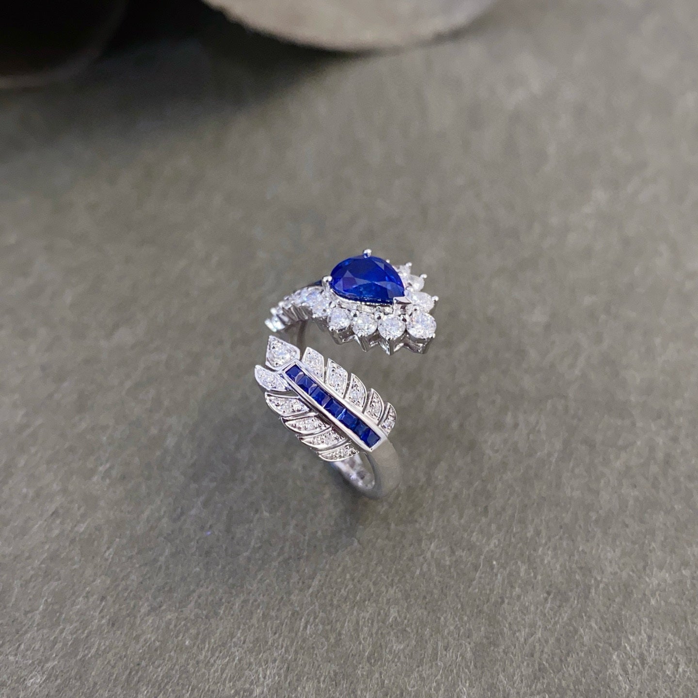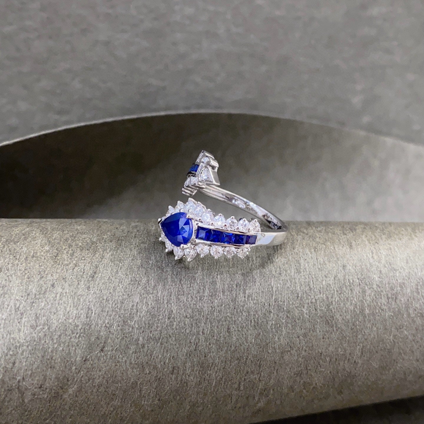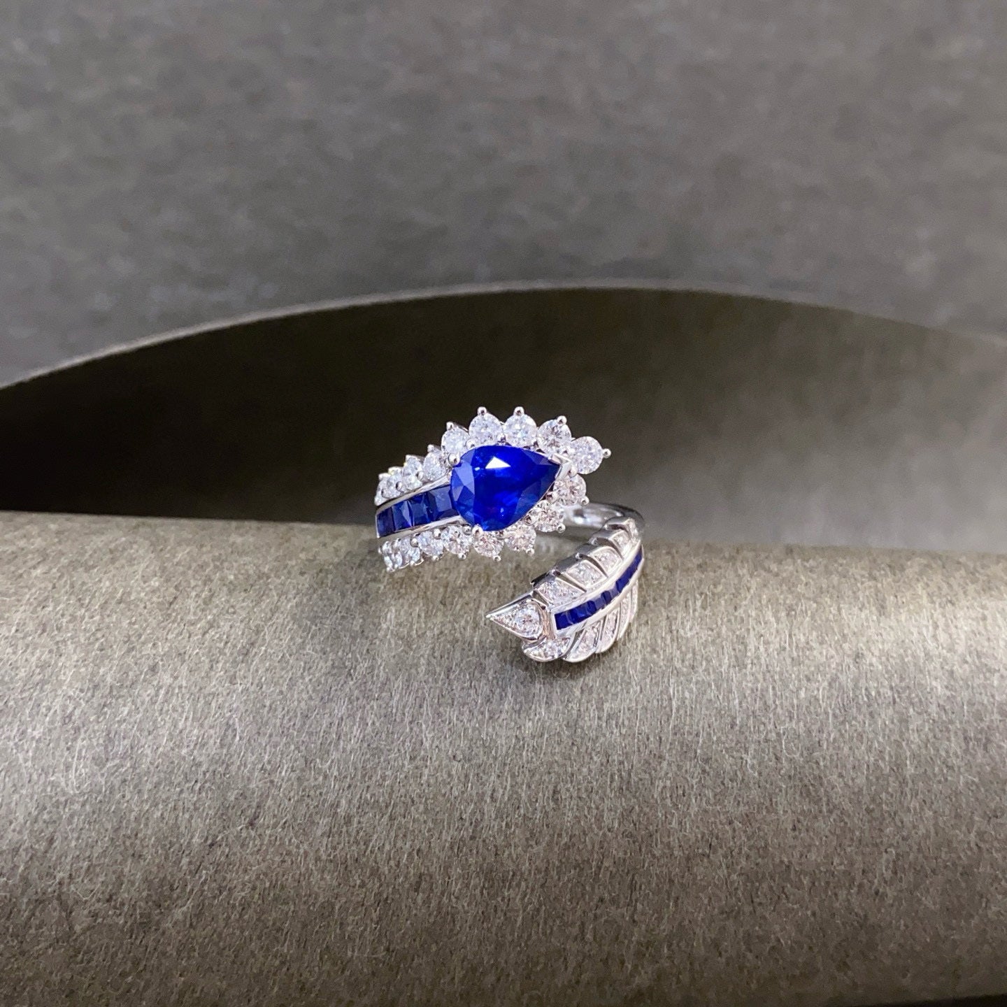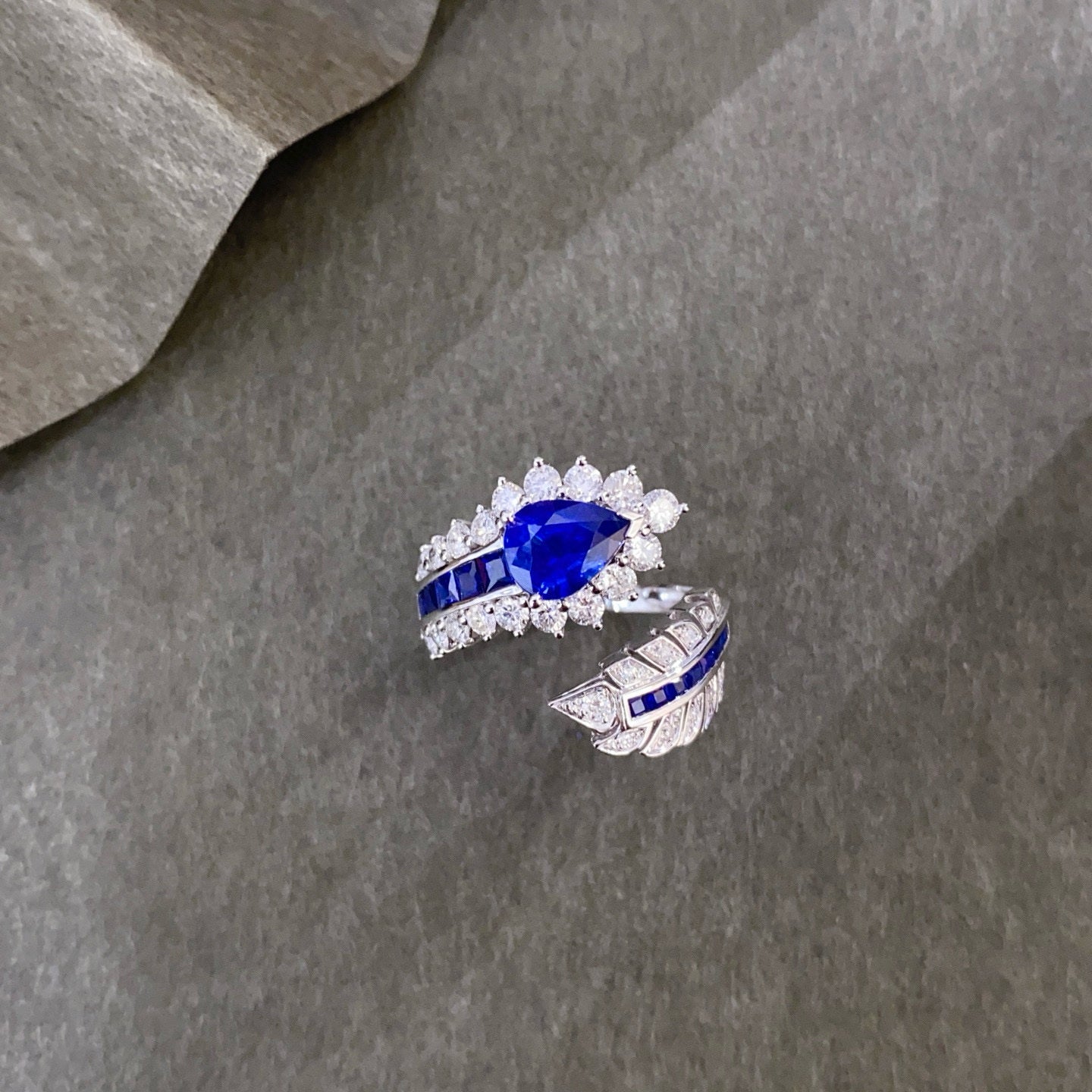 Ref:231023201 // Gold Content:14K Gold // Ring Size:7.25US // // Main Gemstone:Sapphire // Shape:Pear // Carat Weight:1.44ct // Color:Blue // Treatment:Natural // // Adjacent Gemstone 2 : Diamond // Shape:Round // Carat Weight:0.86ct // Clarity Grade:VS-SI // Color:H // Treatment:Natural // Cut Grade:G // // Adjacent Gemstone 3 : Sapphire // Shape:Princess // Carat Weight:0.59ct // Color:Blue // Treatment:Natural //