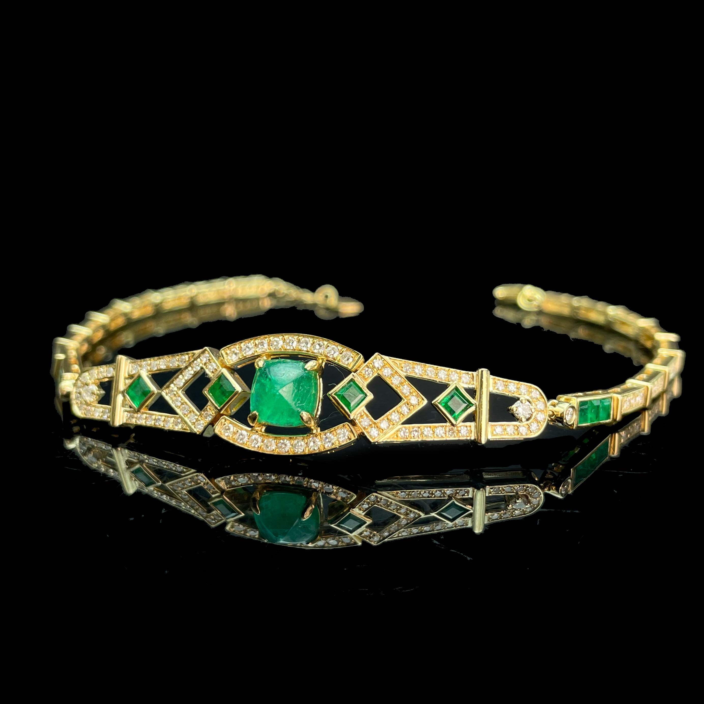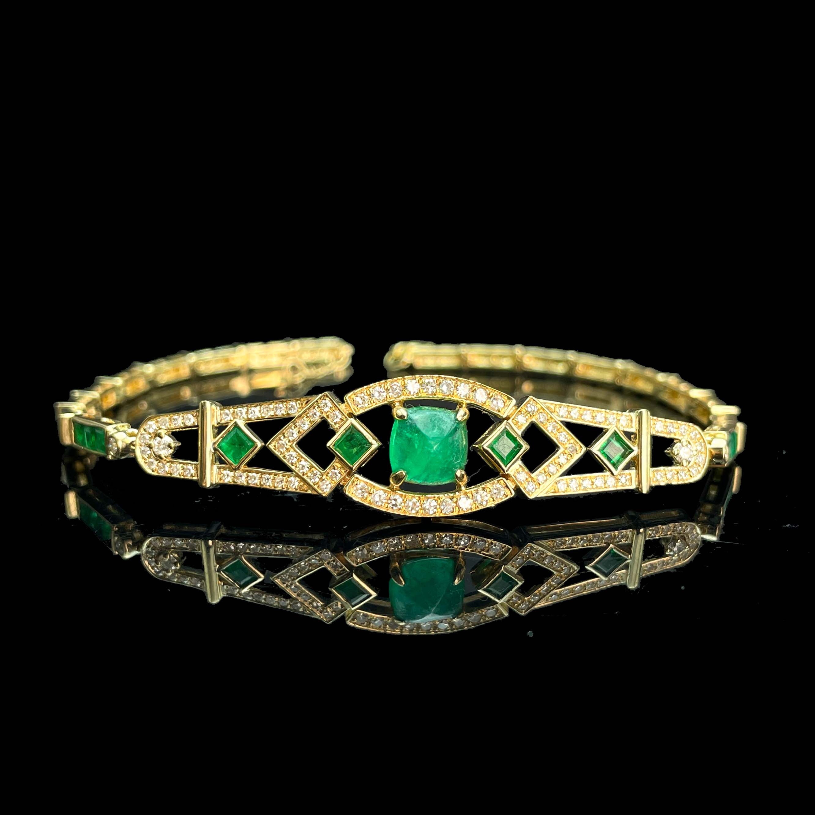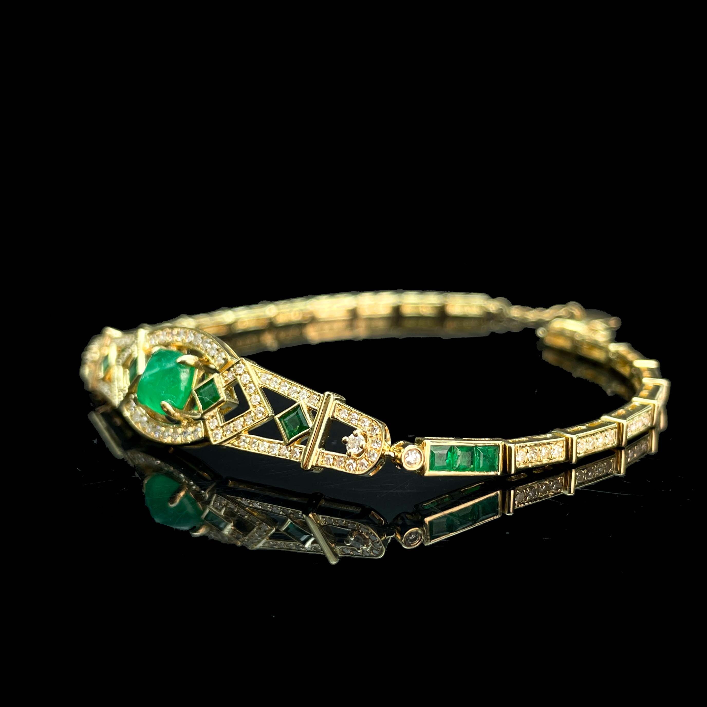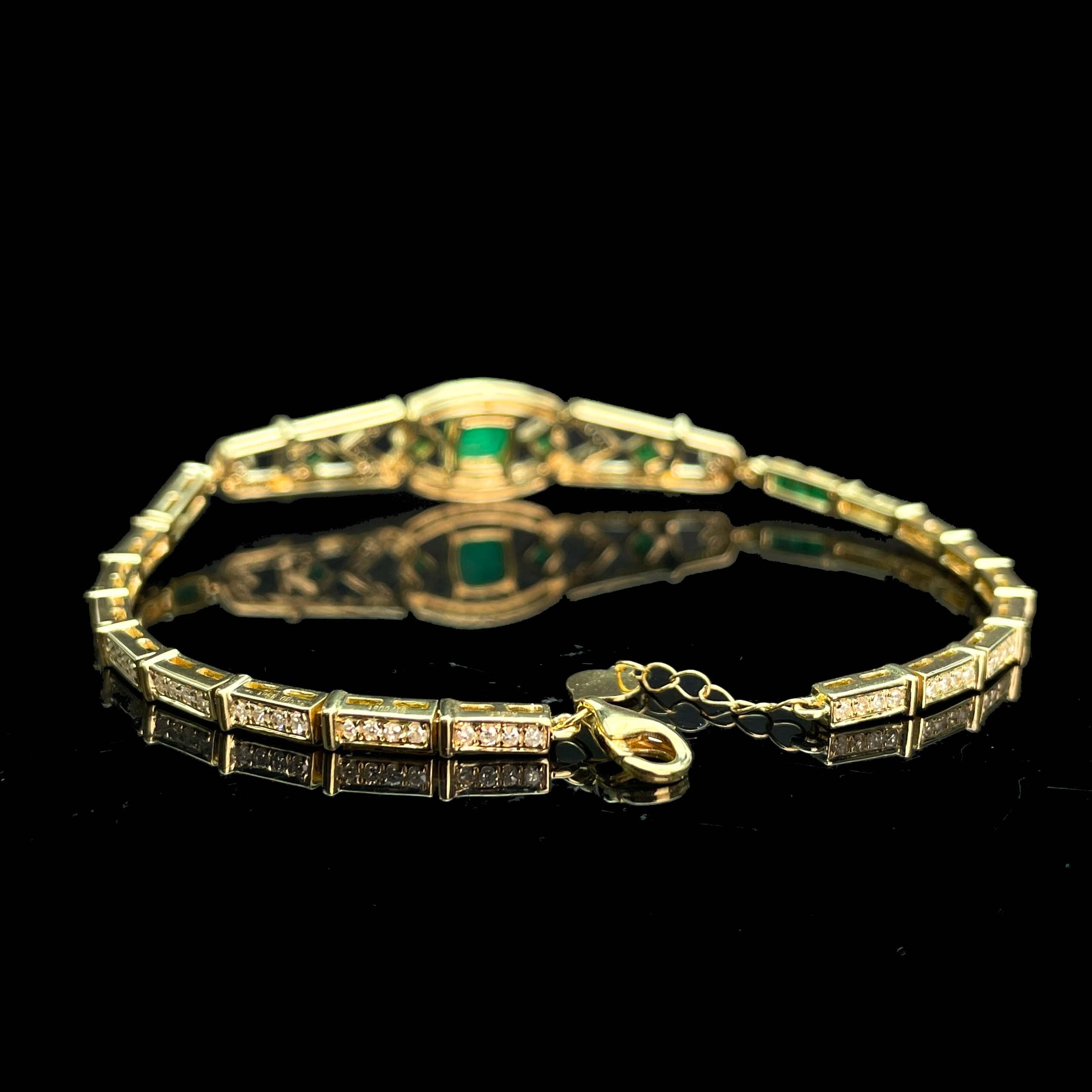 14K GOLD 2.35 CTW NATURAL EMERALD & DIAMOND BRACELET
