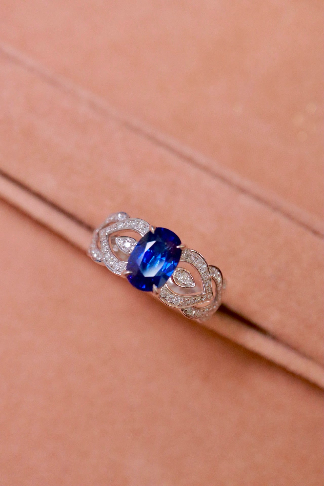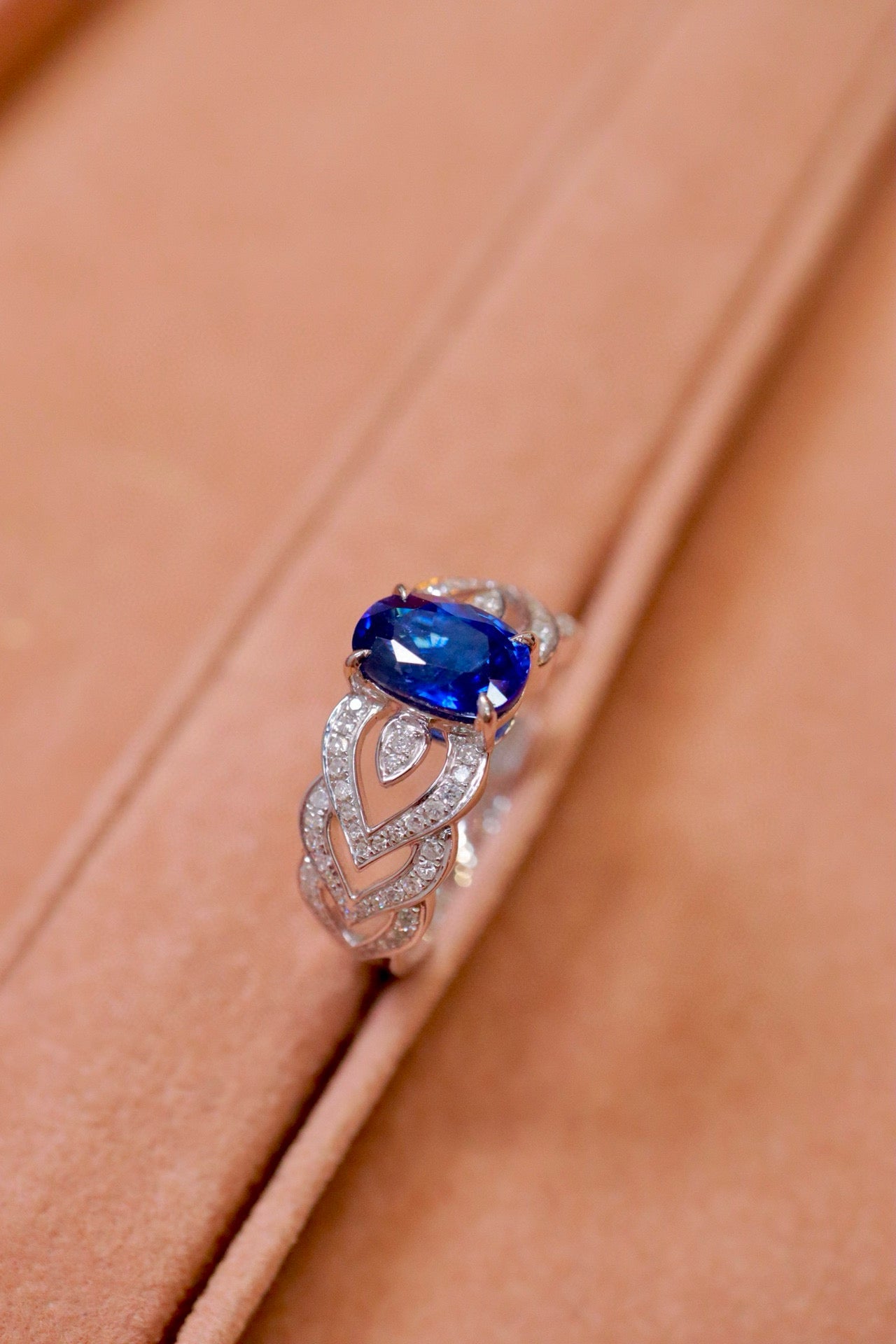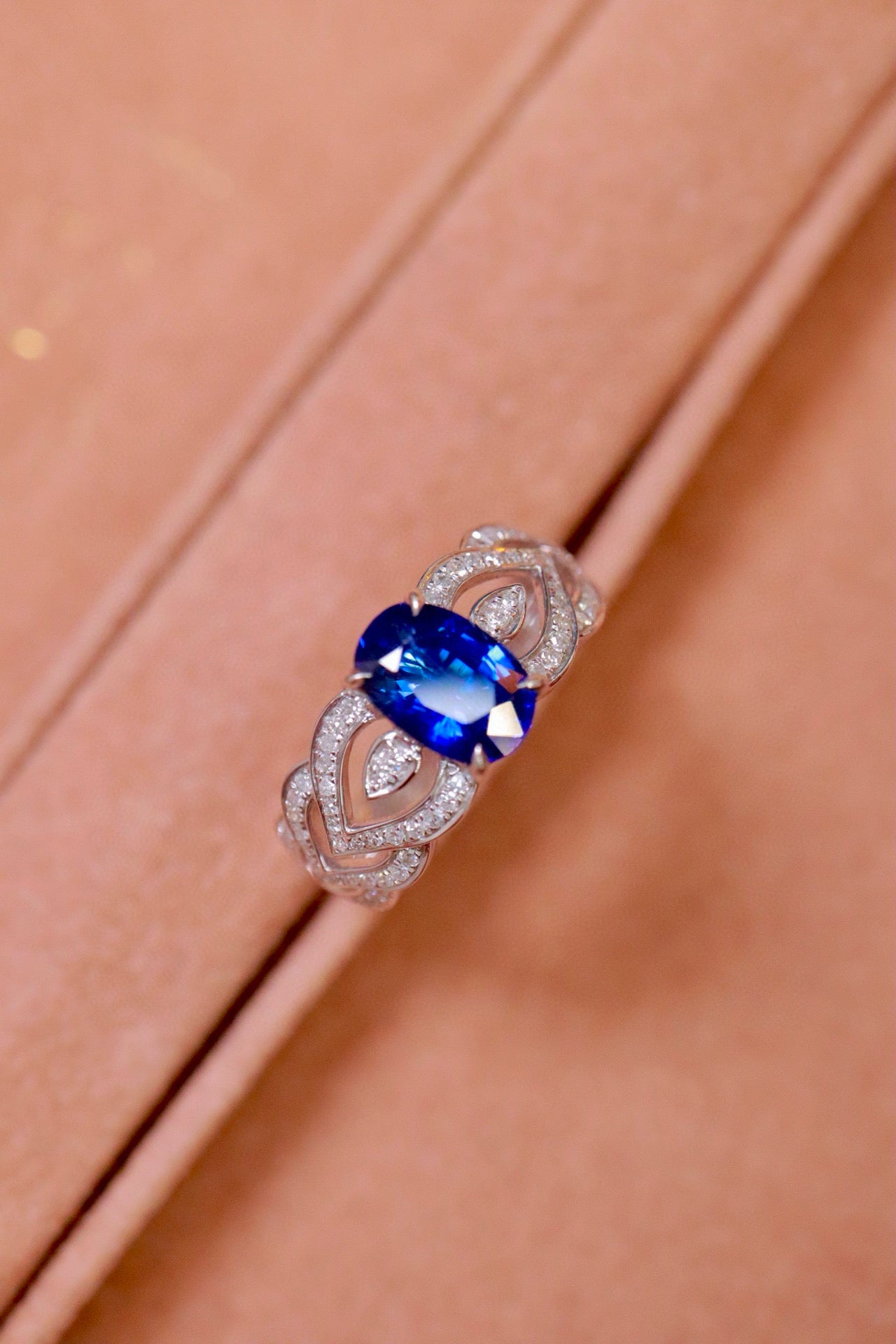 Ref:231027255 // Gold Content:14K Gold // Ring Size:7.25US // // Main Gemstone:Sapphire // Shape:Oval // Carat Weight:2.07ct // Color:Royal blue // Treatment:Natural // // Adjacent Gemstone 2 : Diamond // Shape:Round // Carat Weight:0.31ct // Clarity Grade:VS-SI // Color:H // Treatment:Natural // Cut Grade:G //